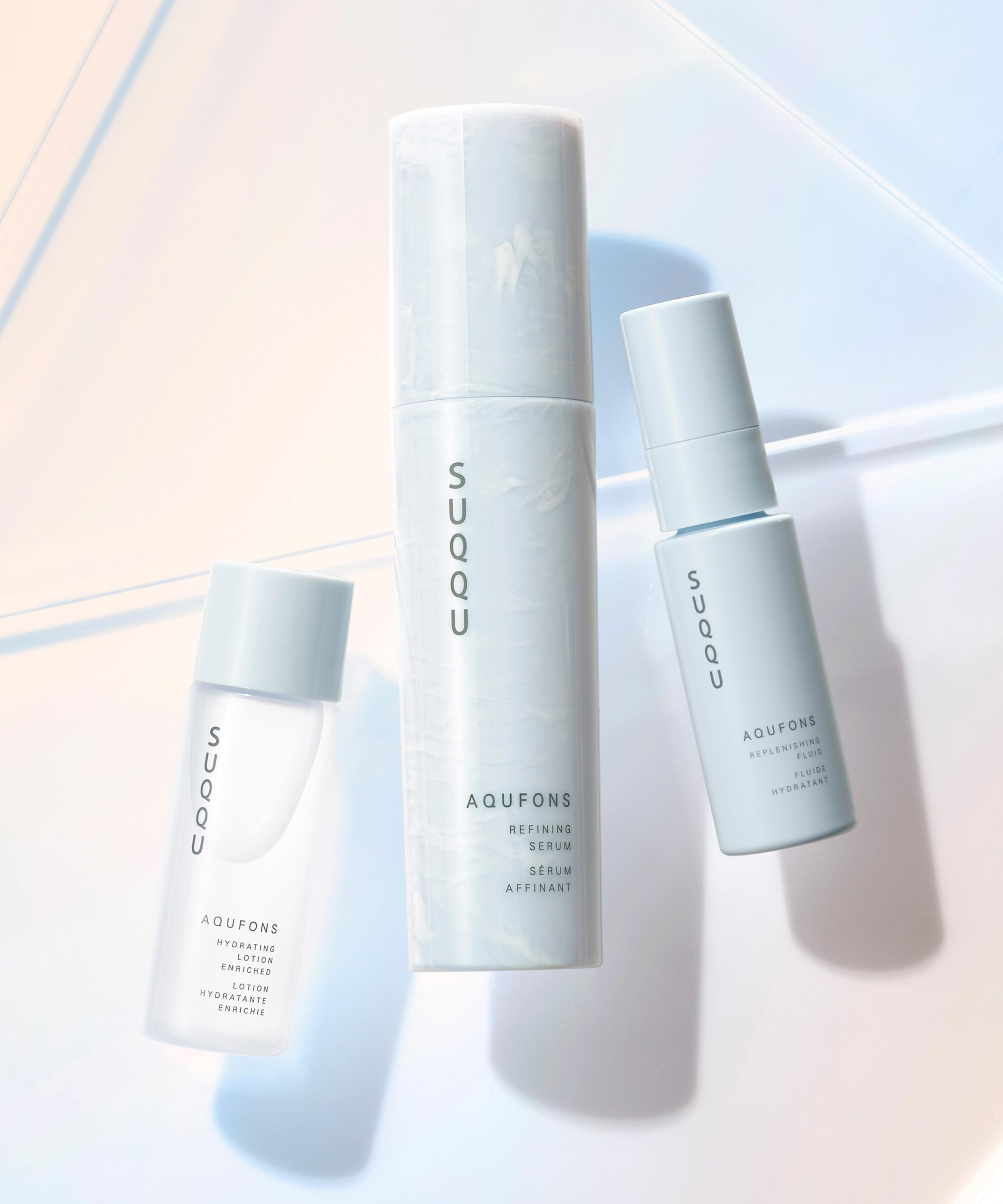 The AQUFONS kit from Japanese skin care experts SUQQU is a three-step hydrating solution formulated to achieve a naturally luminous, rejuvenated and glowing complexion.