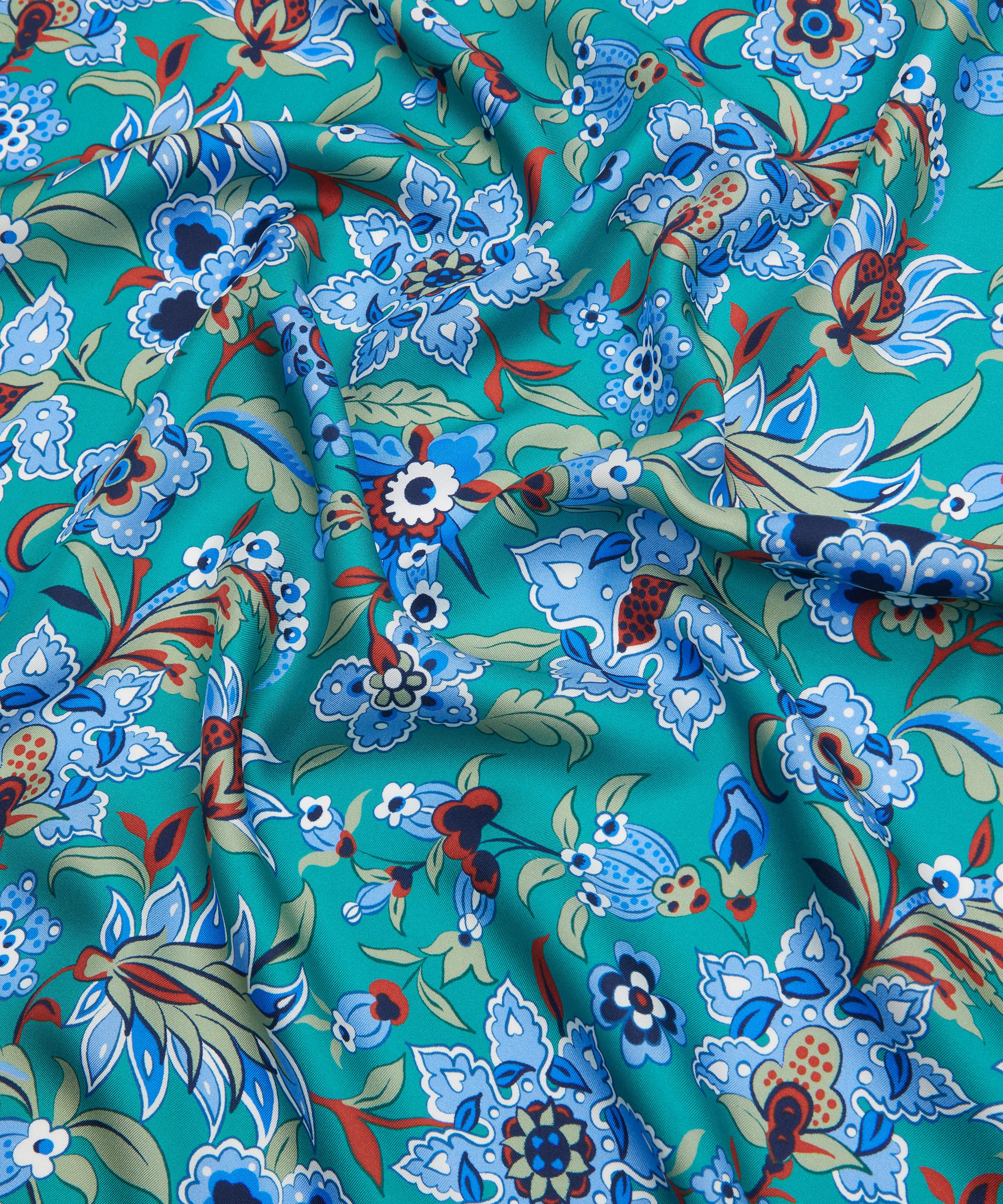 Expertly woven from ultra-soft silk, it showcases our iconic Arabella print – featuring a stylised design that seamlessly fuses traditional Asian floral motifs with the bold spirit of 1960s pop aesthetic. Striking decorative blooms adorn trailing leafy sprigs, creating a vibrant botanical composition. Bursting with colour and vitality, this versatile and timeless accessory staple will bring a refreshing lift to your wardrobe. Drape it loosely over breezy tailoring or knot it close to the neck for a pop of colour – the styling possibilities are endless.