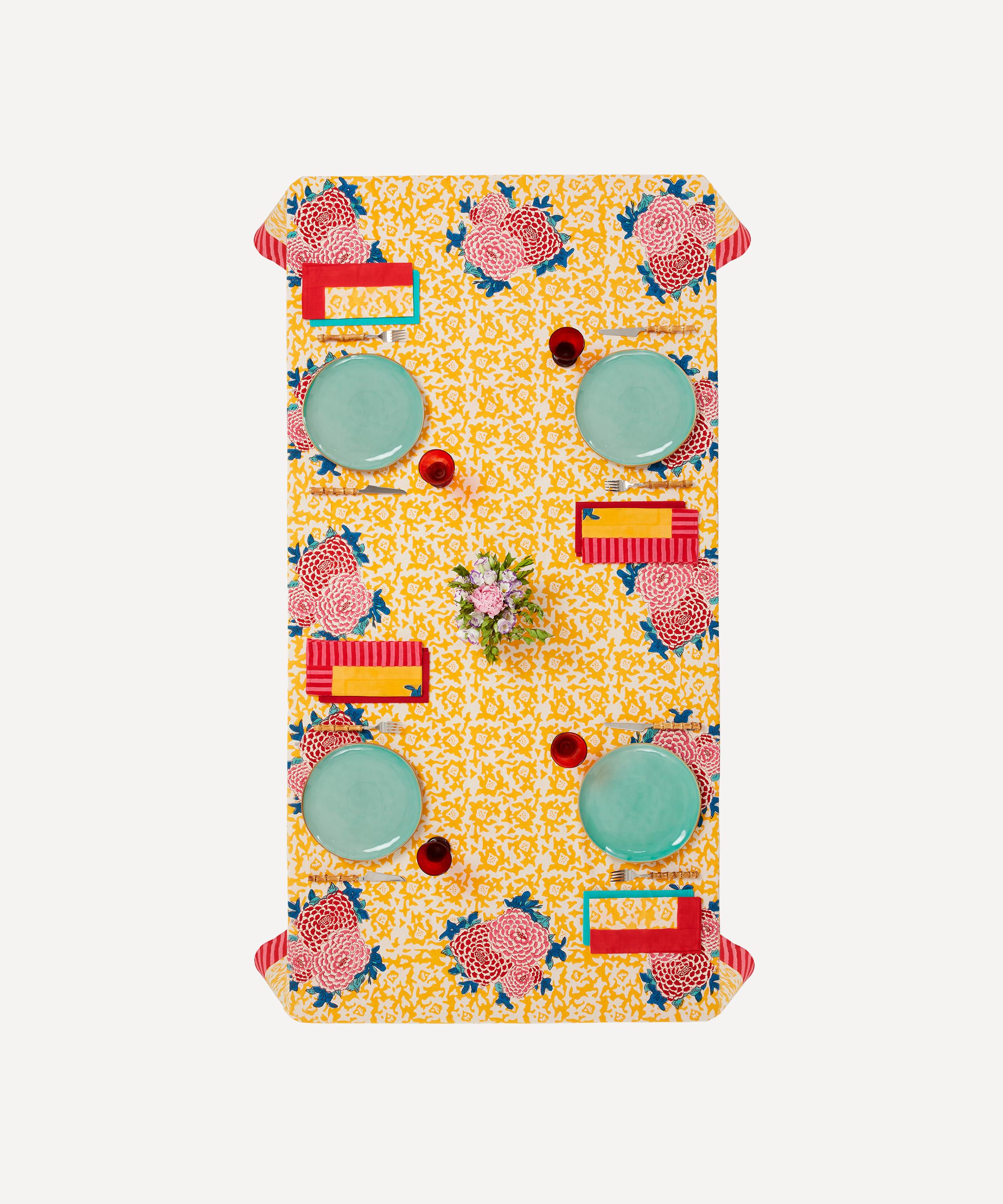 Marrying venerable textile traditions with contemporary living styles, Lisa Corti’s dynamic homeware collection exudes artisanal flavour and global inspiration. Beautifully blockprinted by hand, this tablecloth stylishly counterbalances classic design with a vibrant use of colour and exuberant floral motifs. Designed in Italy and produced by skilled artisans in India, this resplendent mezzeri will bring a dash of eccentricity into your home.