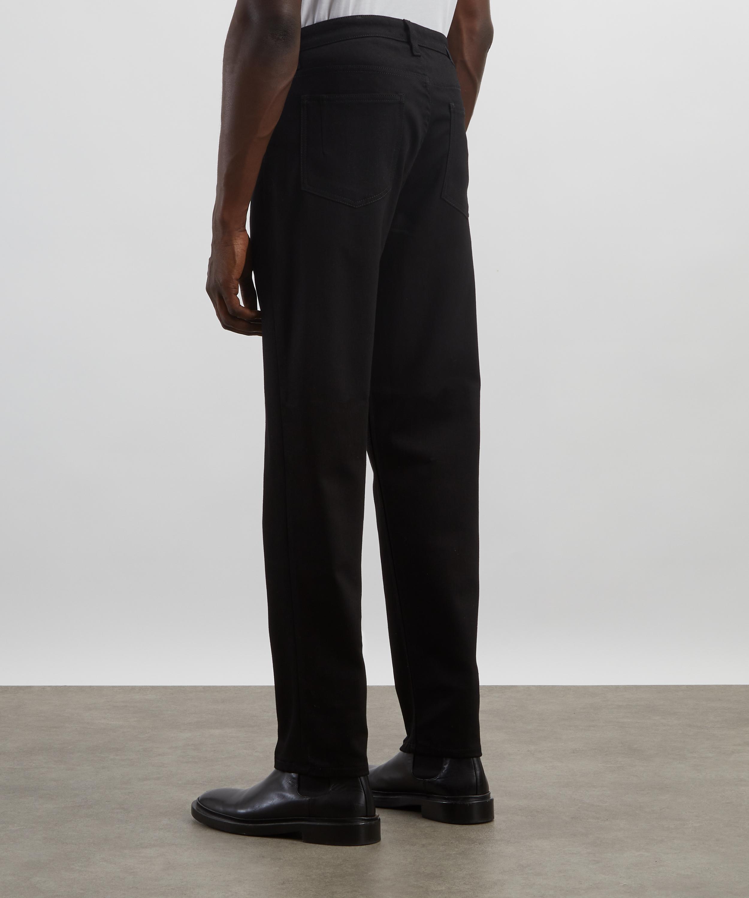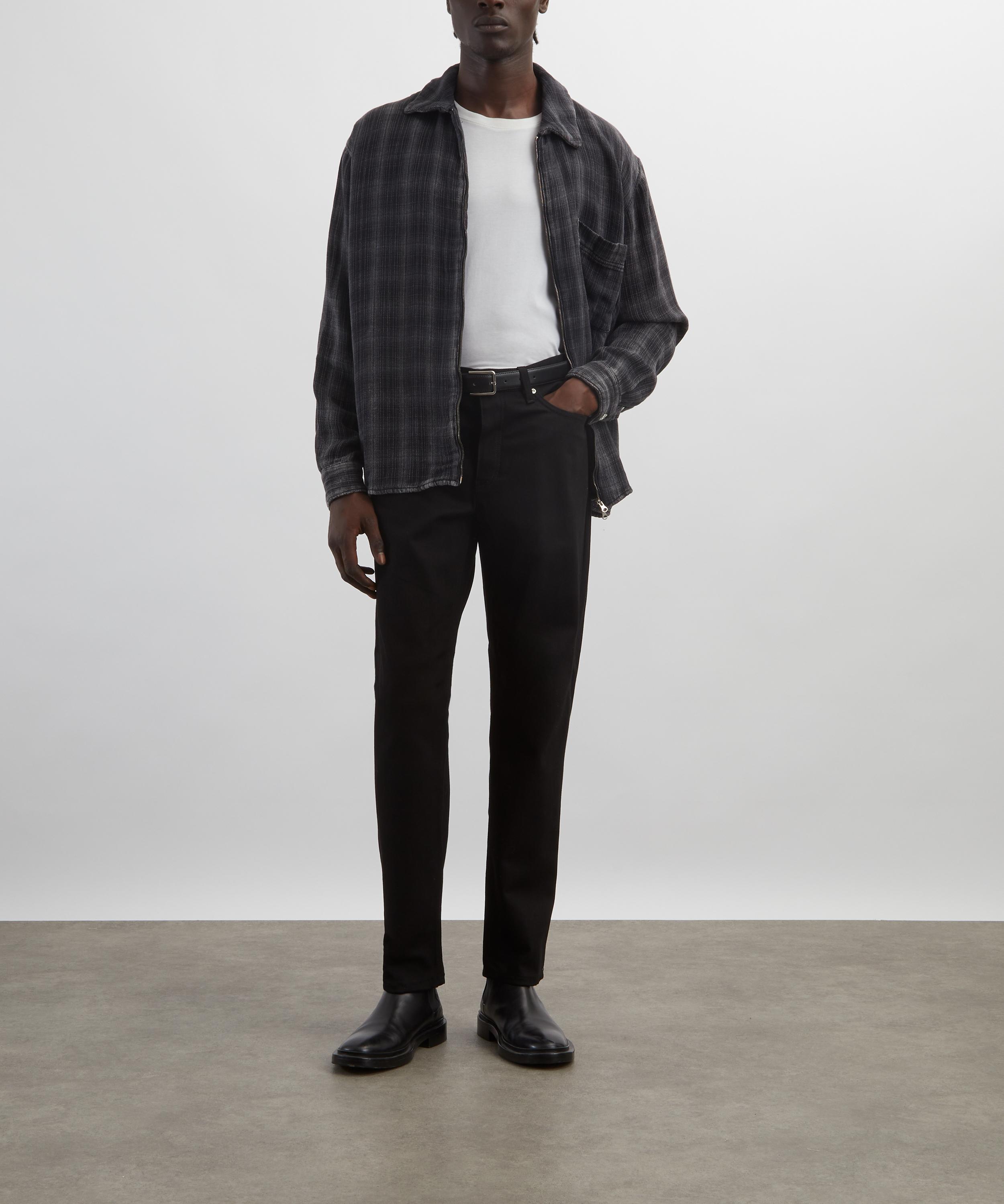 Crafted from stretch cotton denim in a deep black wash, the Archer features a relaxed, straight fit with a mid-rise waist and tapered leg. Branded logo buttons and a leather jacron patch at the back add a signature finish.