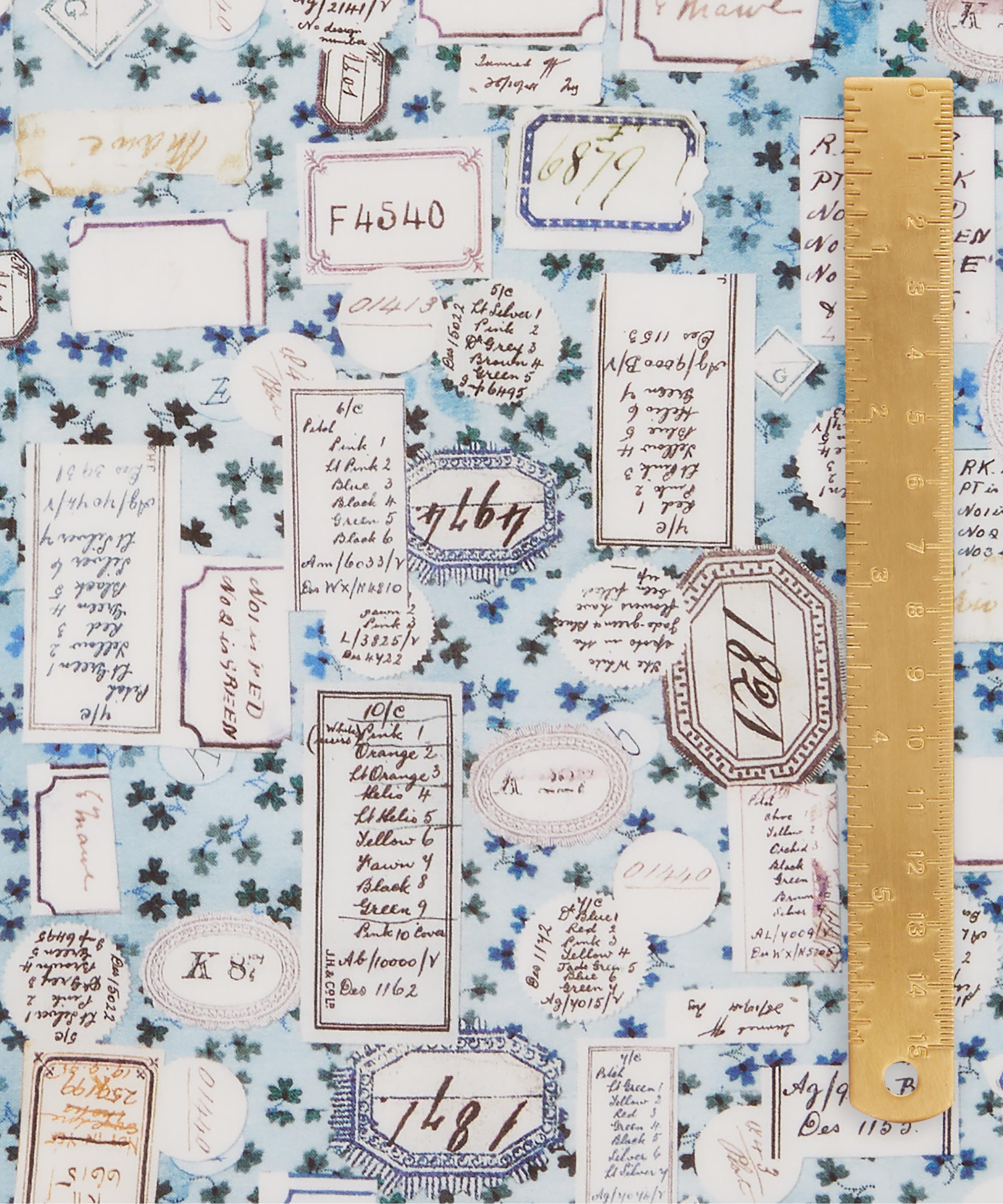 Archive Allsorts celebrates Liberty’s large archival collection of books with fabric swatches. The design takes a small leaf design from one book as its ground, as well as hand-written labels from many others – all combined into a beautiful new pattern.