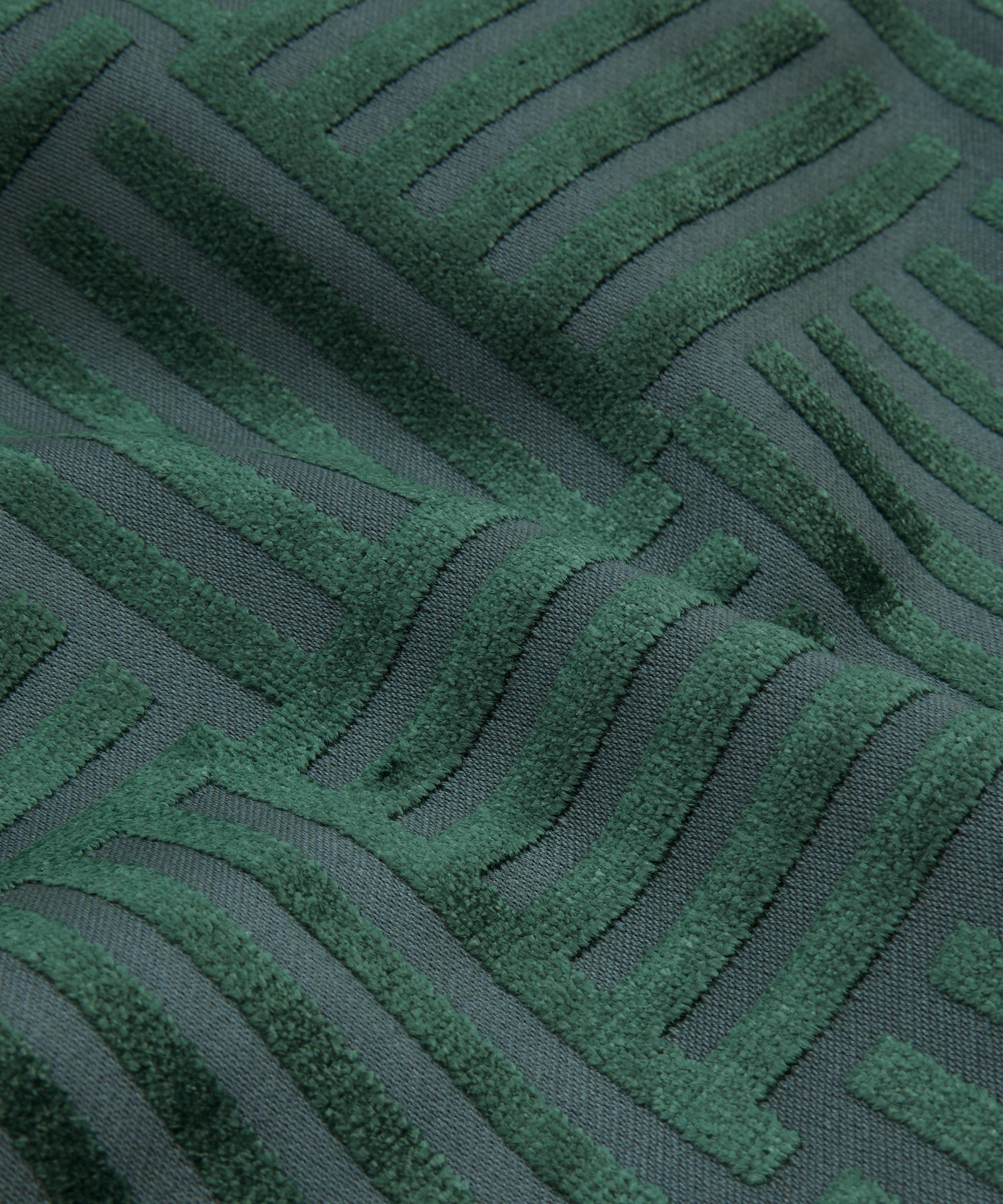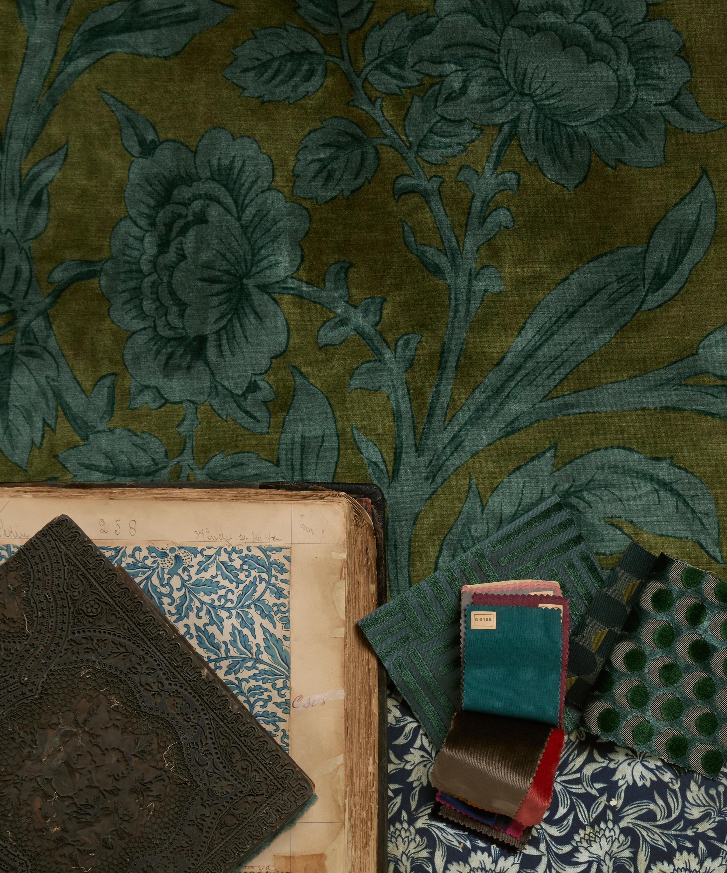 The Botanical Atlas fabric collection celebrates our historic lineage of craftsmanship and design through a cross-pollination of styles and visual narratives. Richly layered embroideries, opulent textured weaves, and contemporary printed velvets and linens are juxtaposed with a selection of elegant stripes and mesmerising geometrics - expertly crafted using traditional and cutting-edge techniques in Italy, Belgium, and India. A bold, dramatic geometric found in the Liberty archive has been developed into this richly textured matte and sheen velvet.
