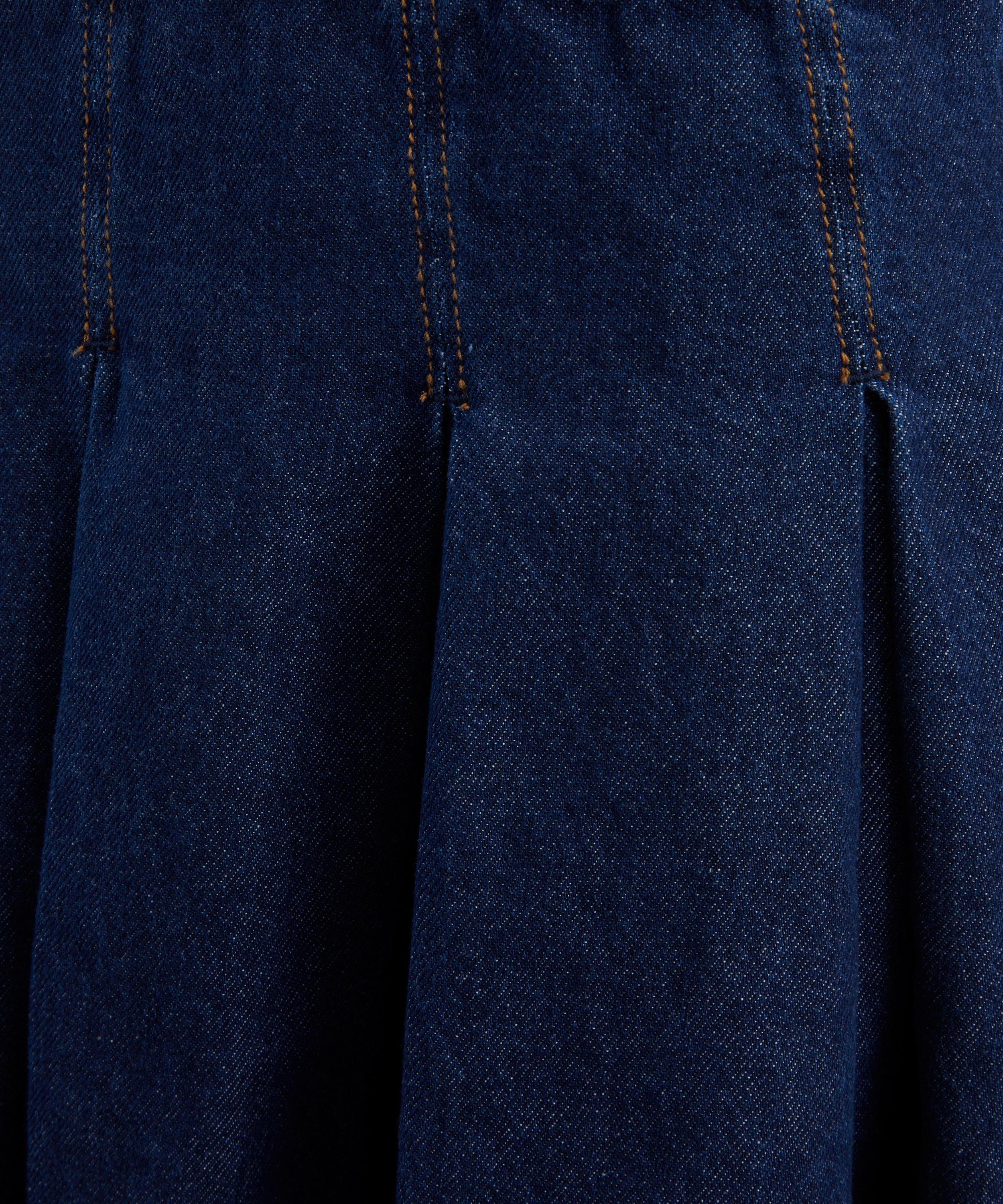 Crafted from non-stretch denim twill, the Arella dress exudes effortless elegance. Designed with a collared neckline and buttoned placket, its fitted waist falls into a pleated A-line skirt for a playful, feminine silhouette.