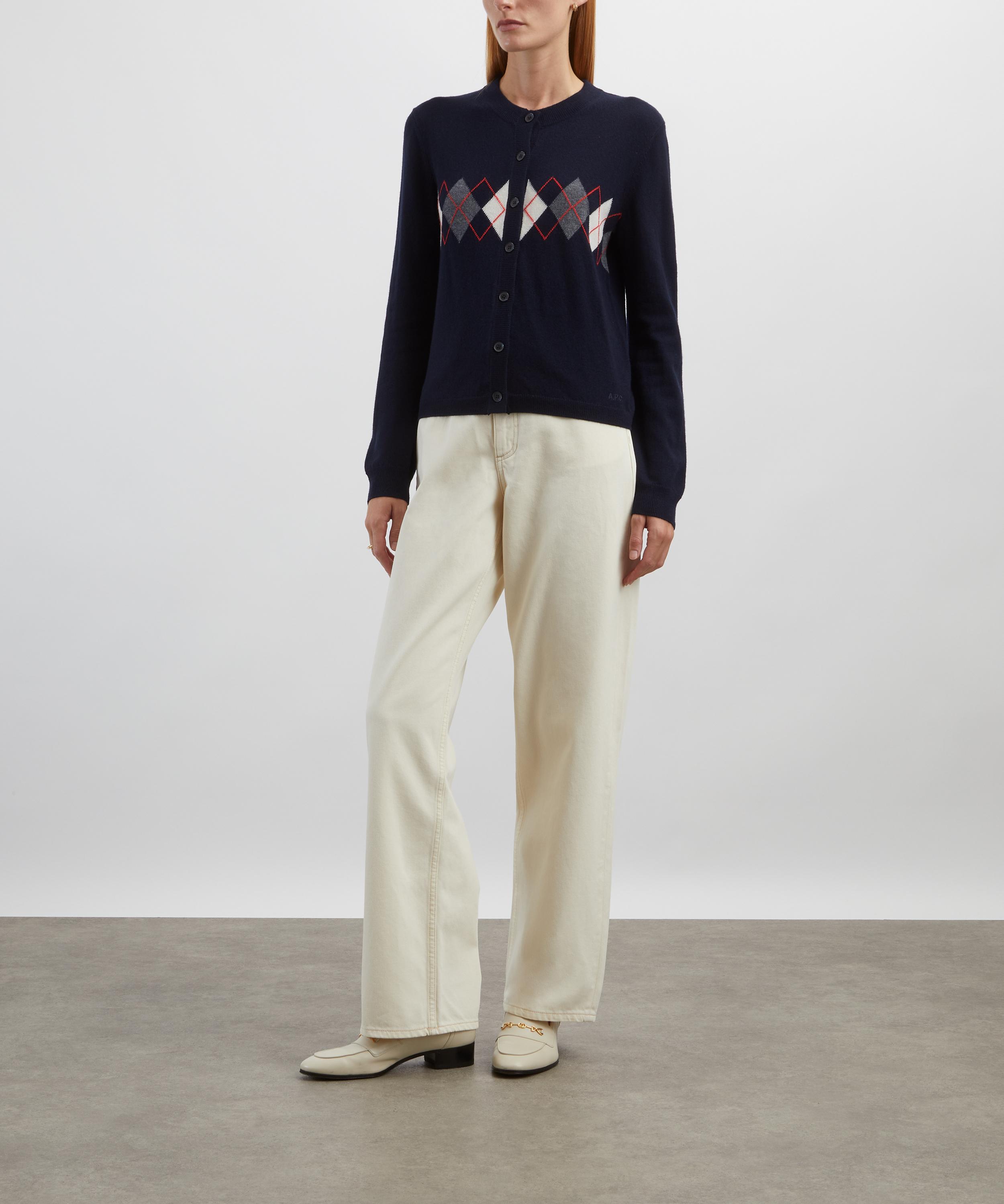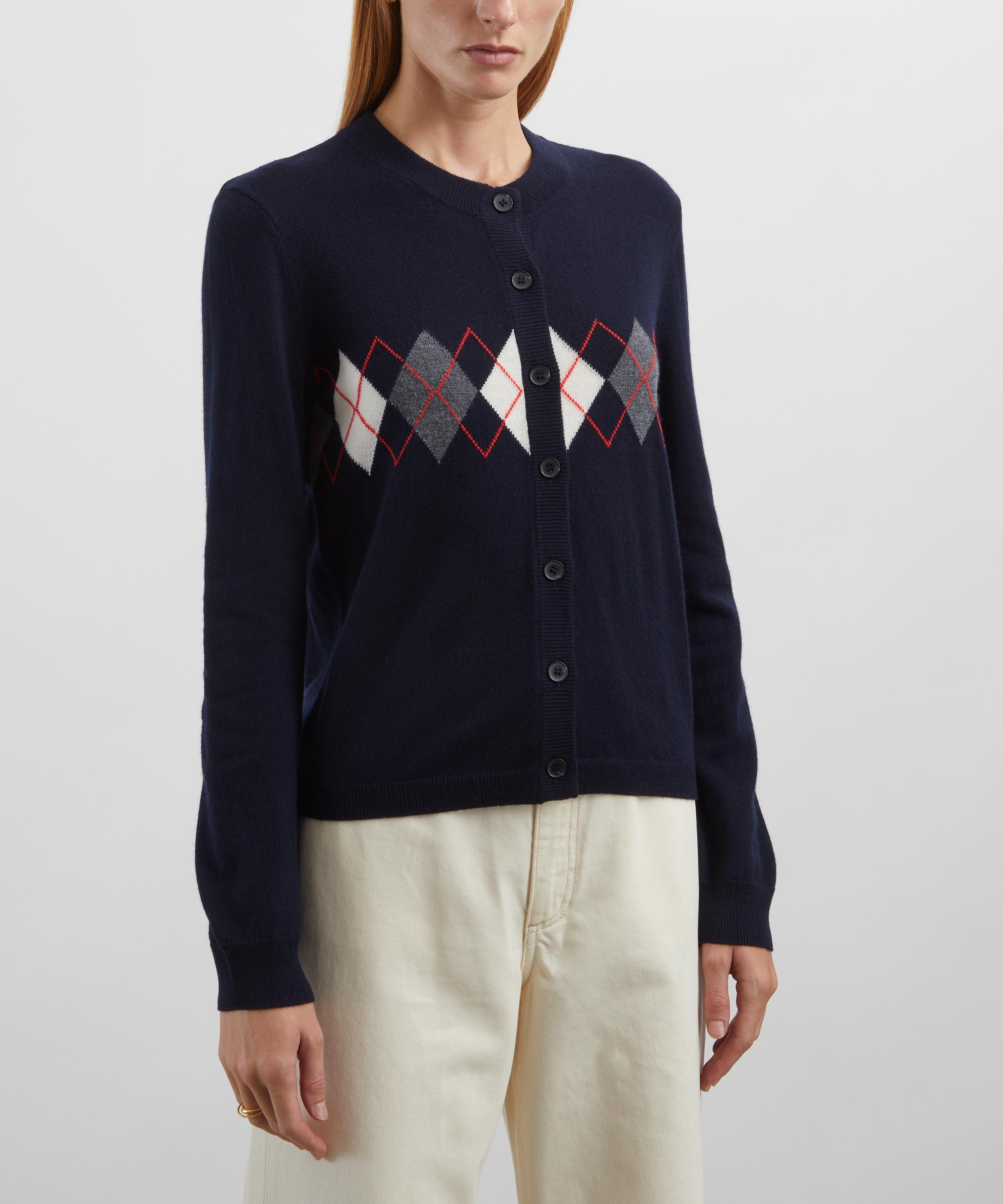 Evoking the label’s take on workwear influences inflected with a dose of Parisian cool, A.P.C. crafts the Aria Dark Navy Argyle Cardigan.