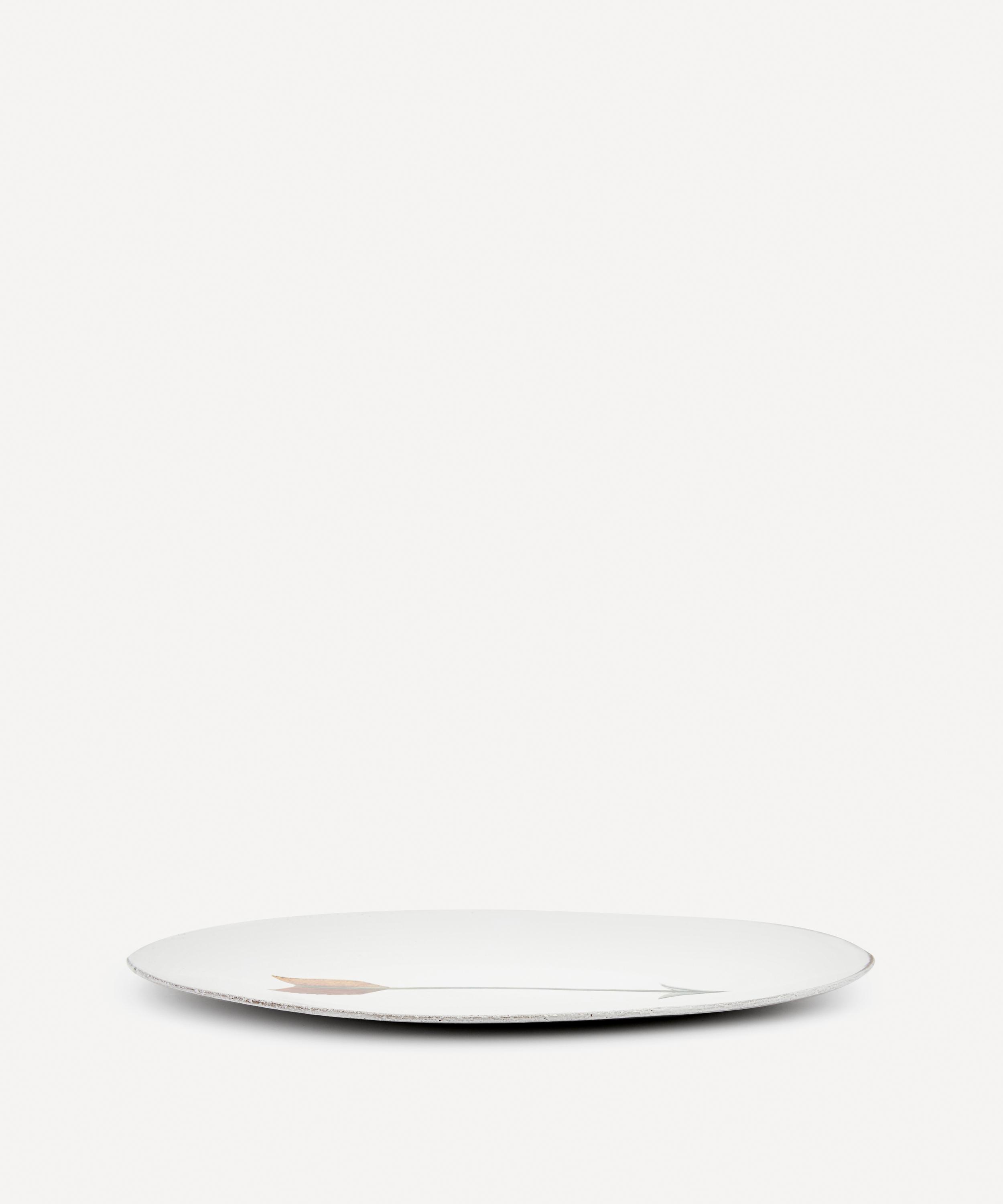 Votary of pre-industrial fabrication, Astier de Villatte is celebrated for being the one and only studio in Paris to hold and harbour the traditions of artisanal ceramic production. Restoring the ancestral systems of moulding and stamping, the Arrow platter is made using techniques from the Middle Ages which involve moulding a sheet of handmade clay, double firing the ‘biscuit’ piece and glazing the product in white enamel – a lengthy process that requires a drying time of up to one month. Characterised by vintage découpage, the Arrow platter is engraved with the brand’s signature crest - depicting an interlacing A & V - alongside John Derian's name in block capitals. Each handmade piece tells a beautiful story, it romances and imparts a sense of nostalgia into its owner. Pair it with other ornate platters from the collection for a coordinated decorative approach.