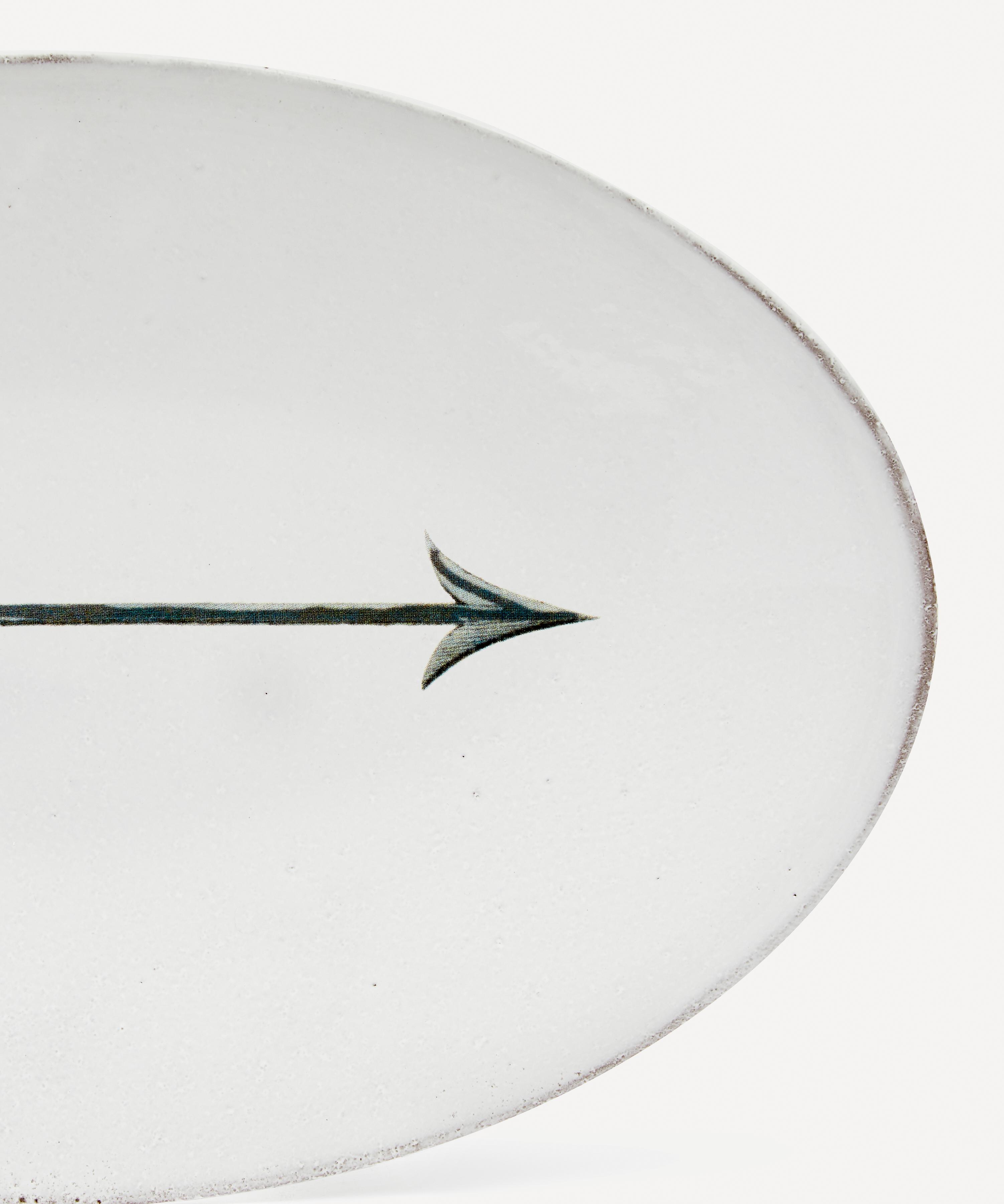 Part of the John Derian collection, the oval Arrow platter from Astier de Villatte is a testament to the Parisian brand’s spiritual ethos and John Derian's iconic découpage.
