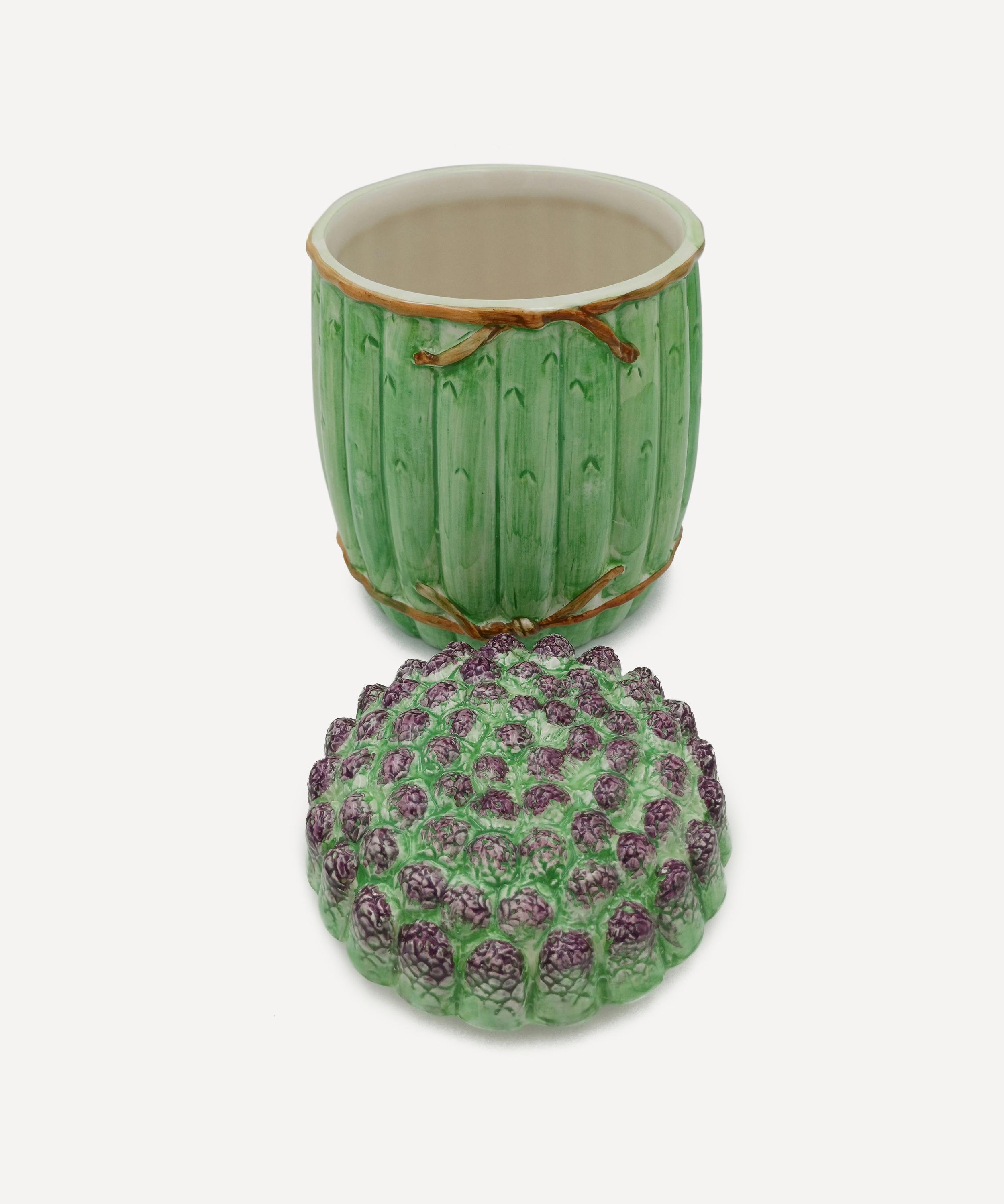 Practice the art of tablescaping with the Asparagus jar - a high-fired earthenware piece, bursting with vibrancy and fine craftsmanship.
