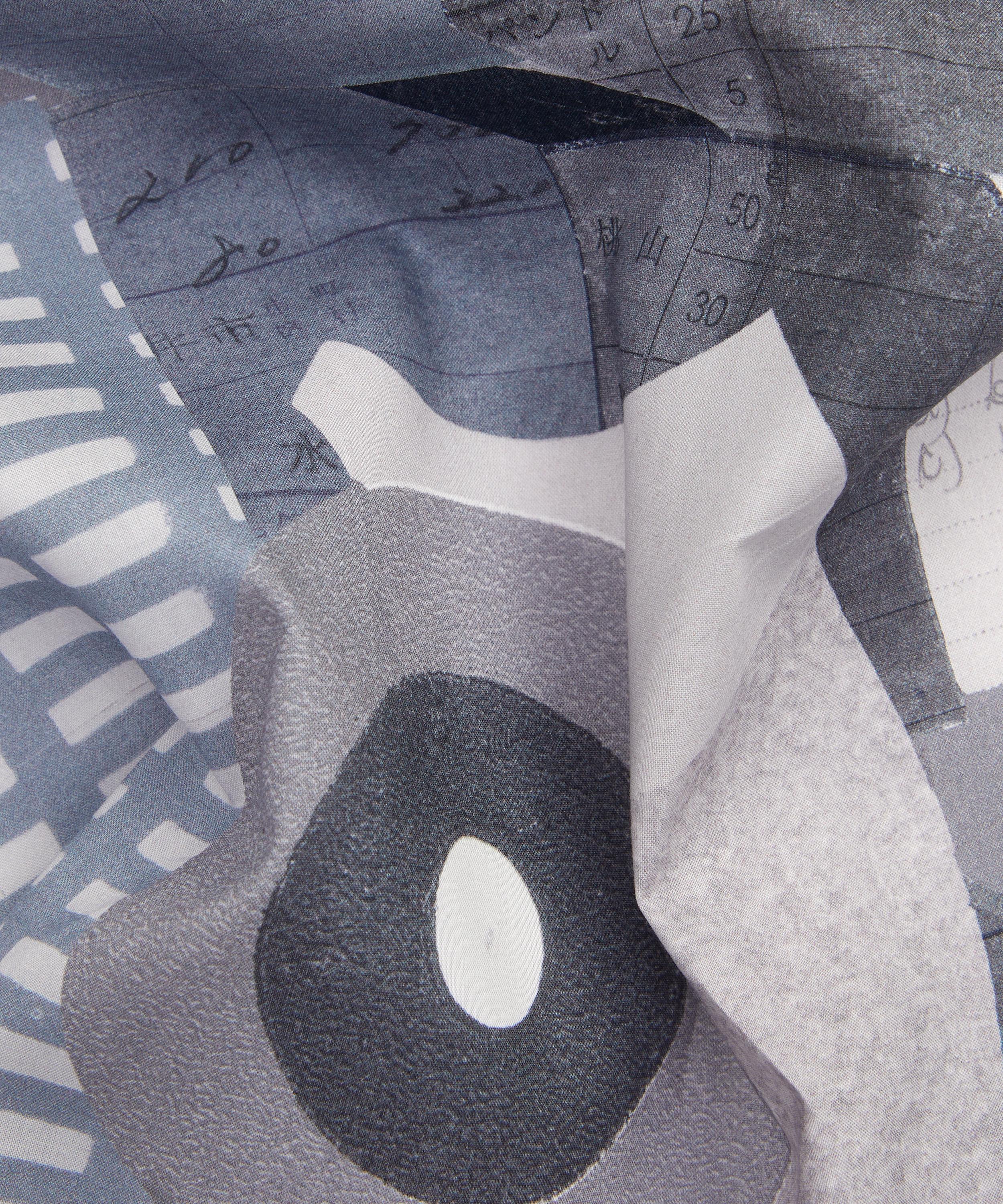 Impactful geometric shapes interact with encrypted typographic fragments in this captivating large-scale collage. Blurring the lines between accidental and carefully planned constructions, the graphic elements in this design are suggestive of machine age modernism- centrifugal rings, fastenings, repeating blocks and curiously engineered compartments.
