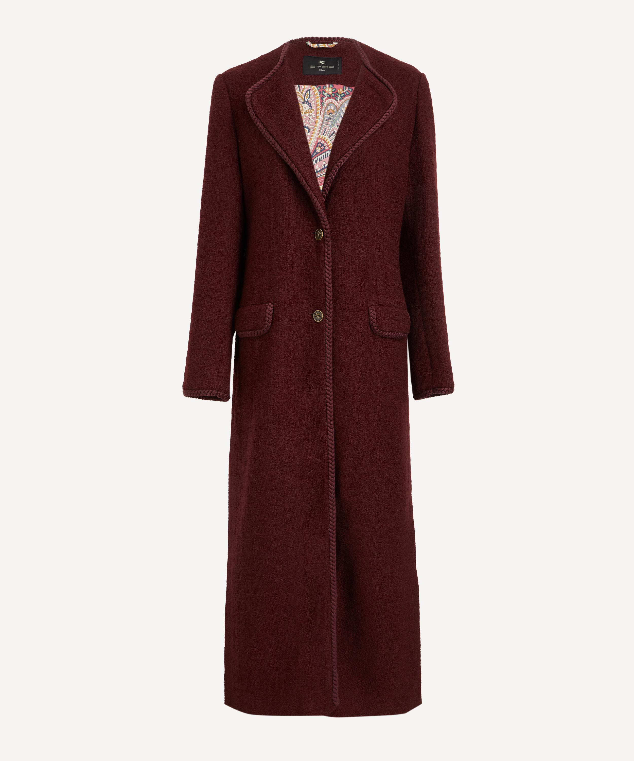 A showcase of Etro’s Italian craftsmanship, the Aubergine Wool-Mohair Long Coat captures the brand’s flair for luxurious fabrics and vibrant, Bohemian prints.