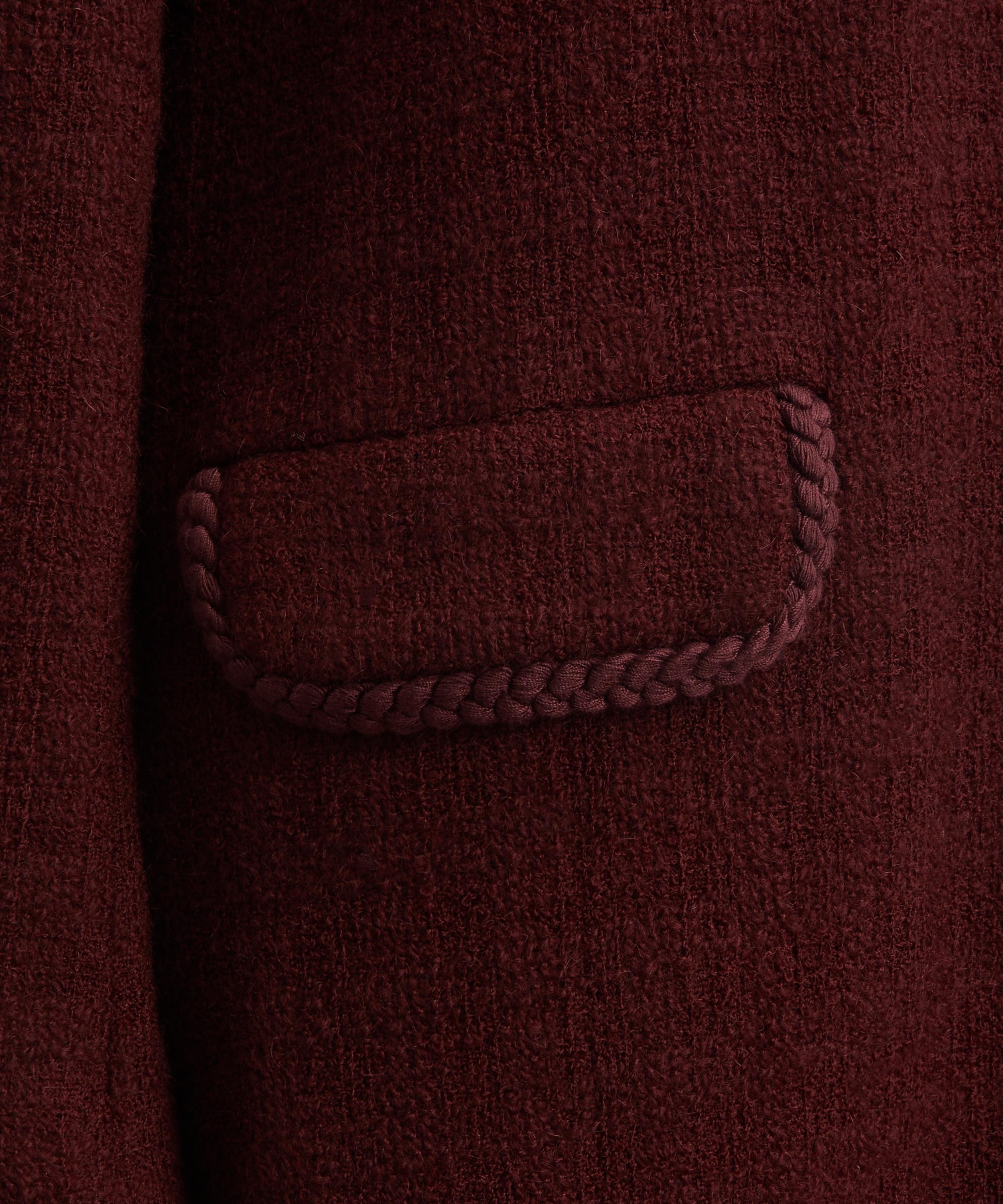 Expertly crafted in Italy from a luxurious wool and mohair blend, this single-breasted coat is tailored to a relaxed, long-line silhouette. Featuring a winged collar, structured shoulders, and braided trims throughout, two metal buttons at the front are embossed with a raised Pegaso - adding mythical flair to this refined piece.