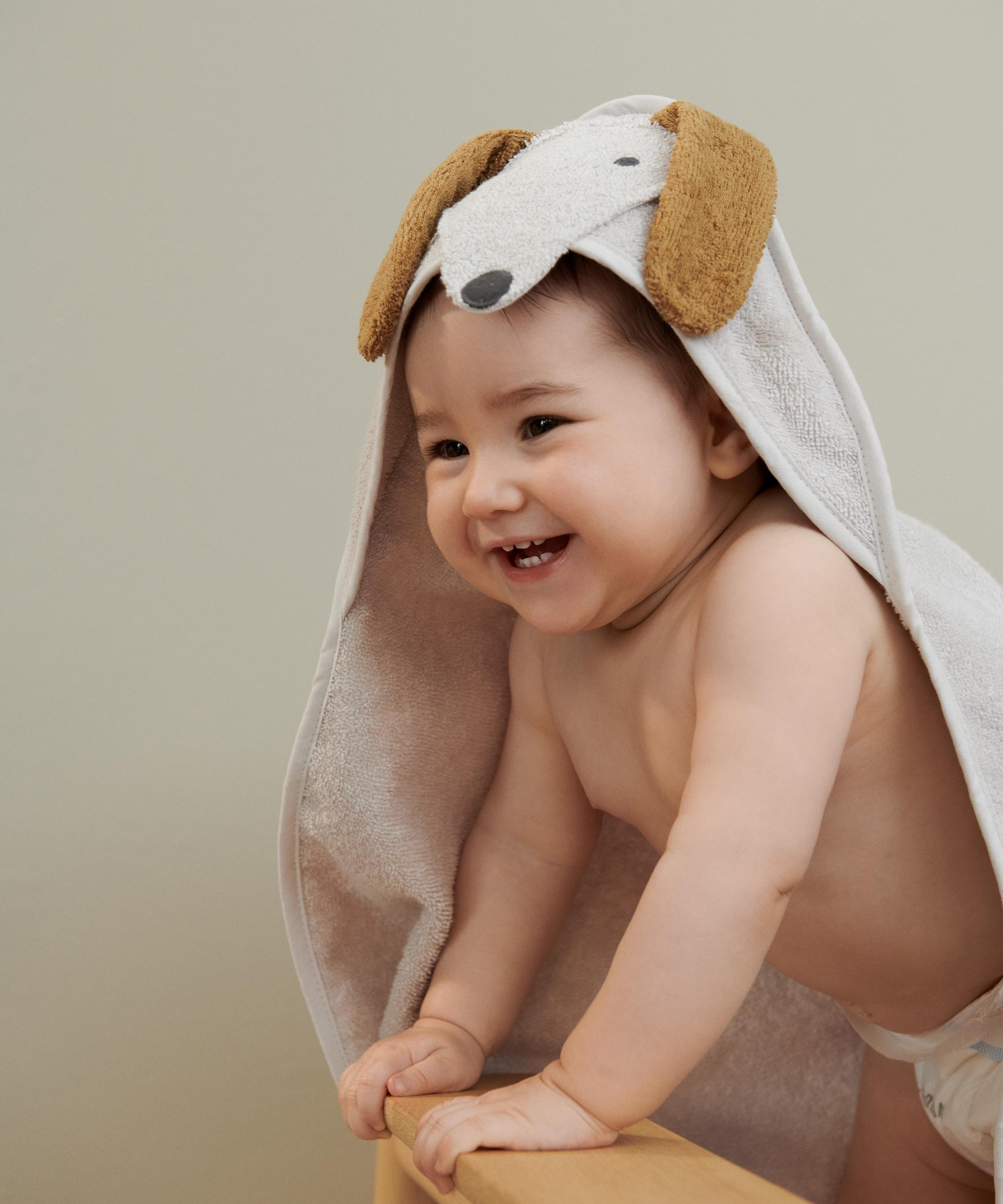 Crafted from soft organic cotton, this highly absorbent design is perfect for bath time or trips to the pool, with embroidered dog detailing and 3D ears adding the adorable finishing touches.