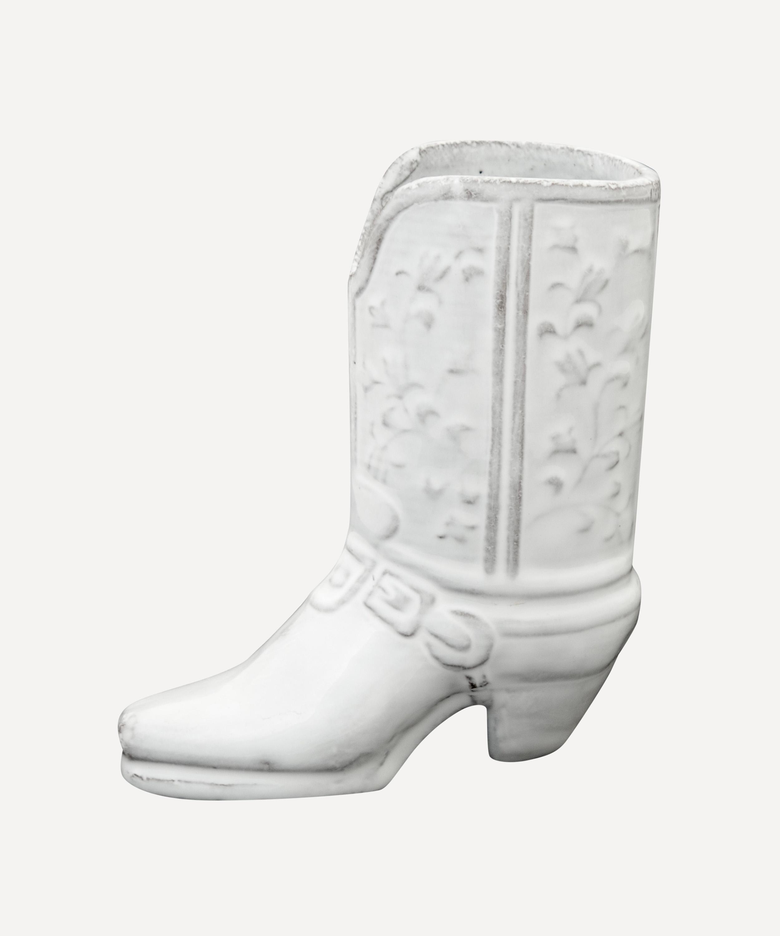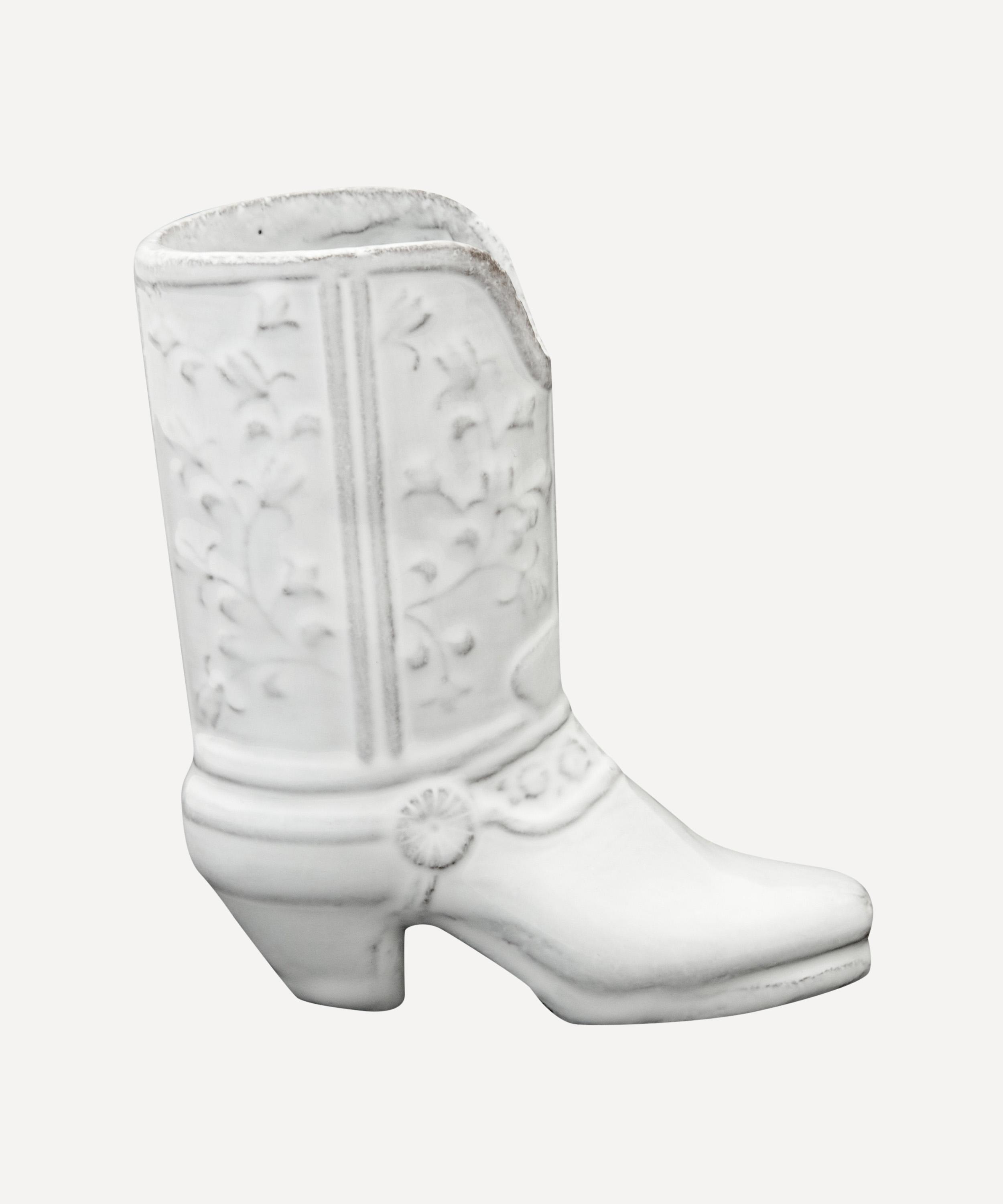 Votary of pre-industrial fabrication, Astier de Villatte is celebrated for being the one and only studio in Paris to hold and harbour the traditions of artisanal ceramic production. Restoring the ancestral systems of moulding and stamping, the Austin vase is made using handcrafting techniques from the Middle Ages which involve moulding a handmade sheet of clay, double firing the ‘biscuit’ piece and glazing the product in white enamel – a lengthy process that involves a drying time of up to one month. Characterised by a cowboy boot design, this vase is engraved with the brand’s signature crest - depicting an interlacing A & V - alongside the initials of one of the 40 master artisans who created it. Each handmade piece tells a beautiful story, it romances and imparts a sense of nostalgia into its owner. Arrange with other glazed bowls and plates in the collection to breathe an air of authenticity into your dining collection.