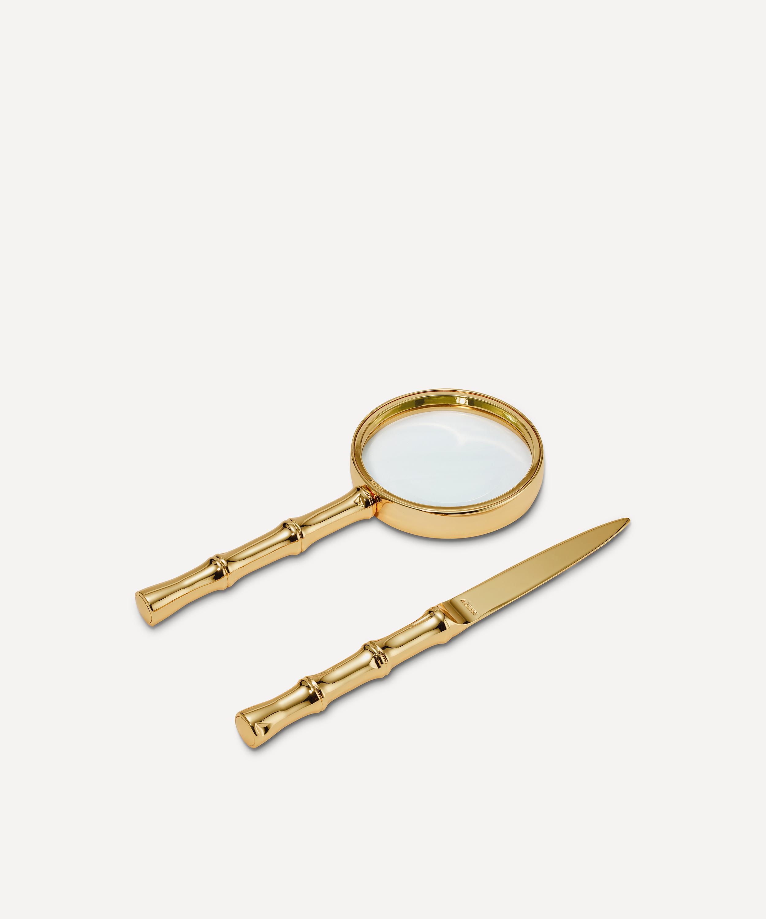 Introduce AERIN’s easy elegance to your living space with this Ava bamboo magnifying glass and letter opener set, which captures the brand’s signature blend of modern design and understated polish.