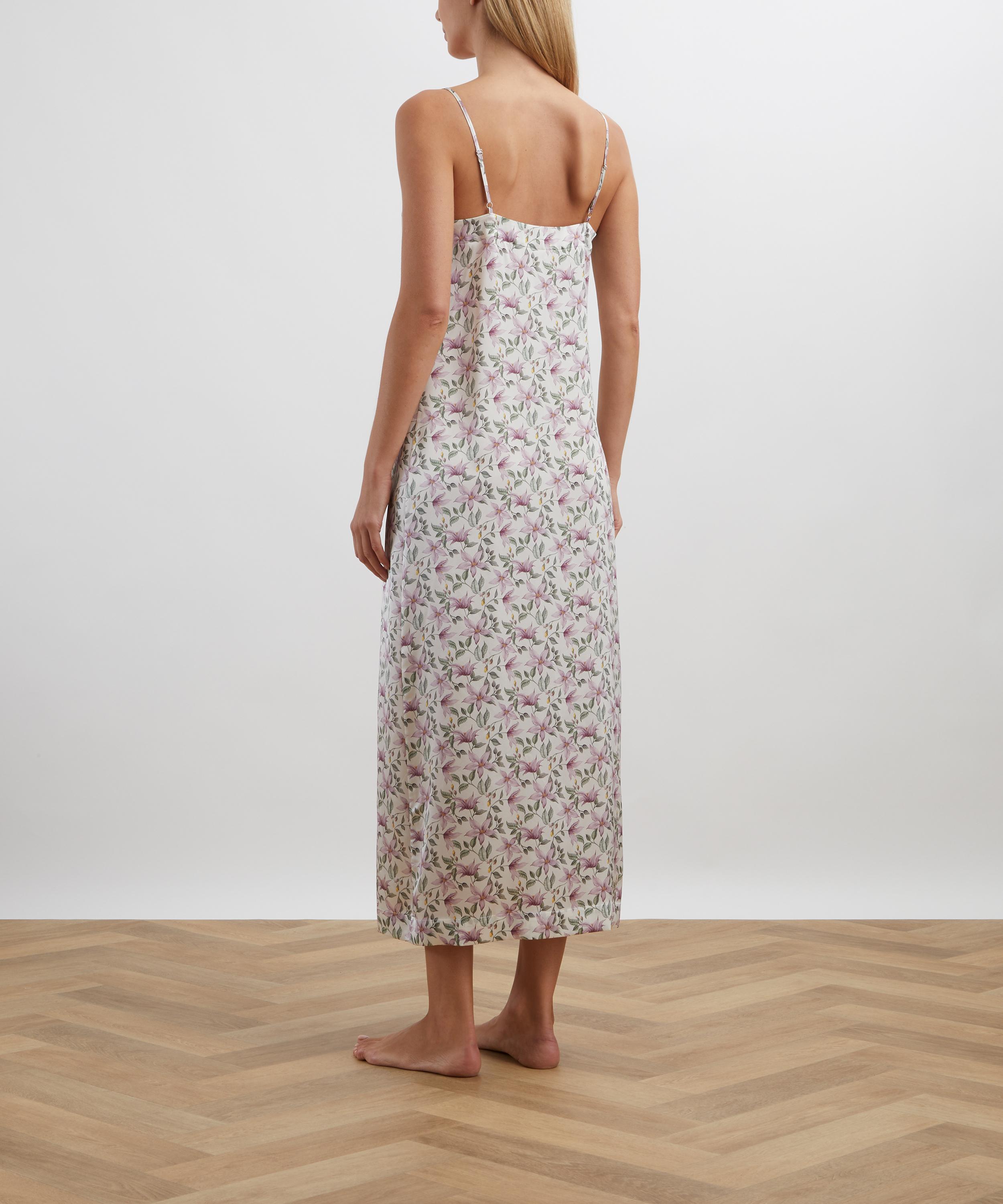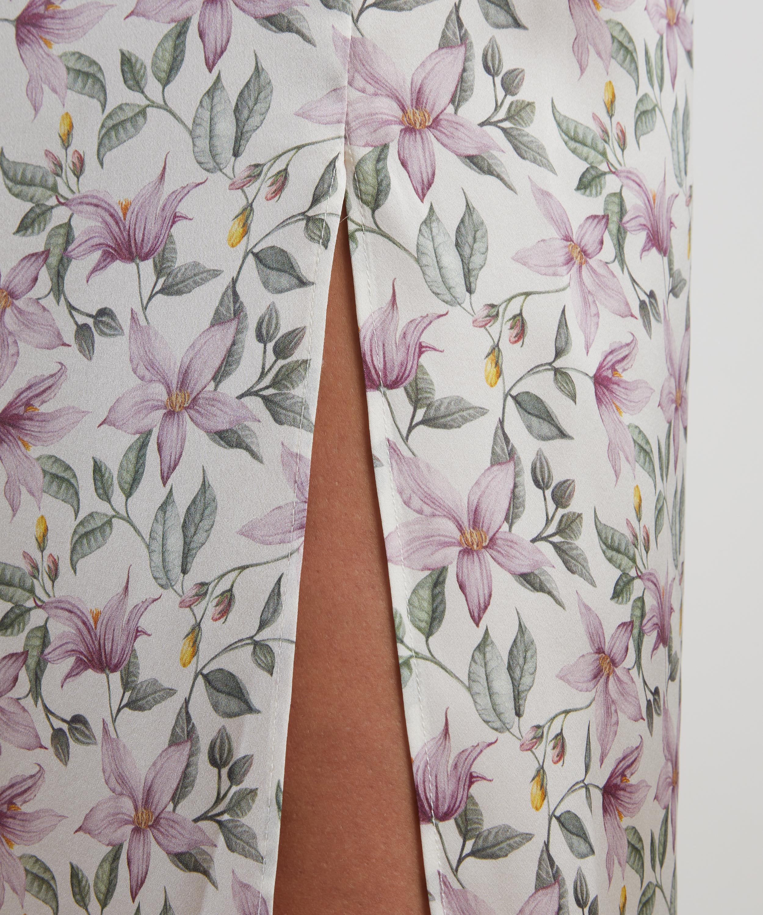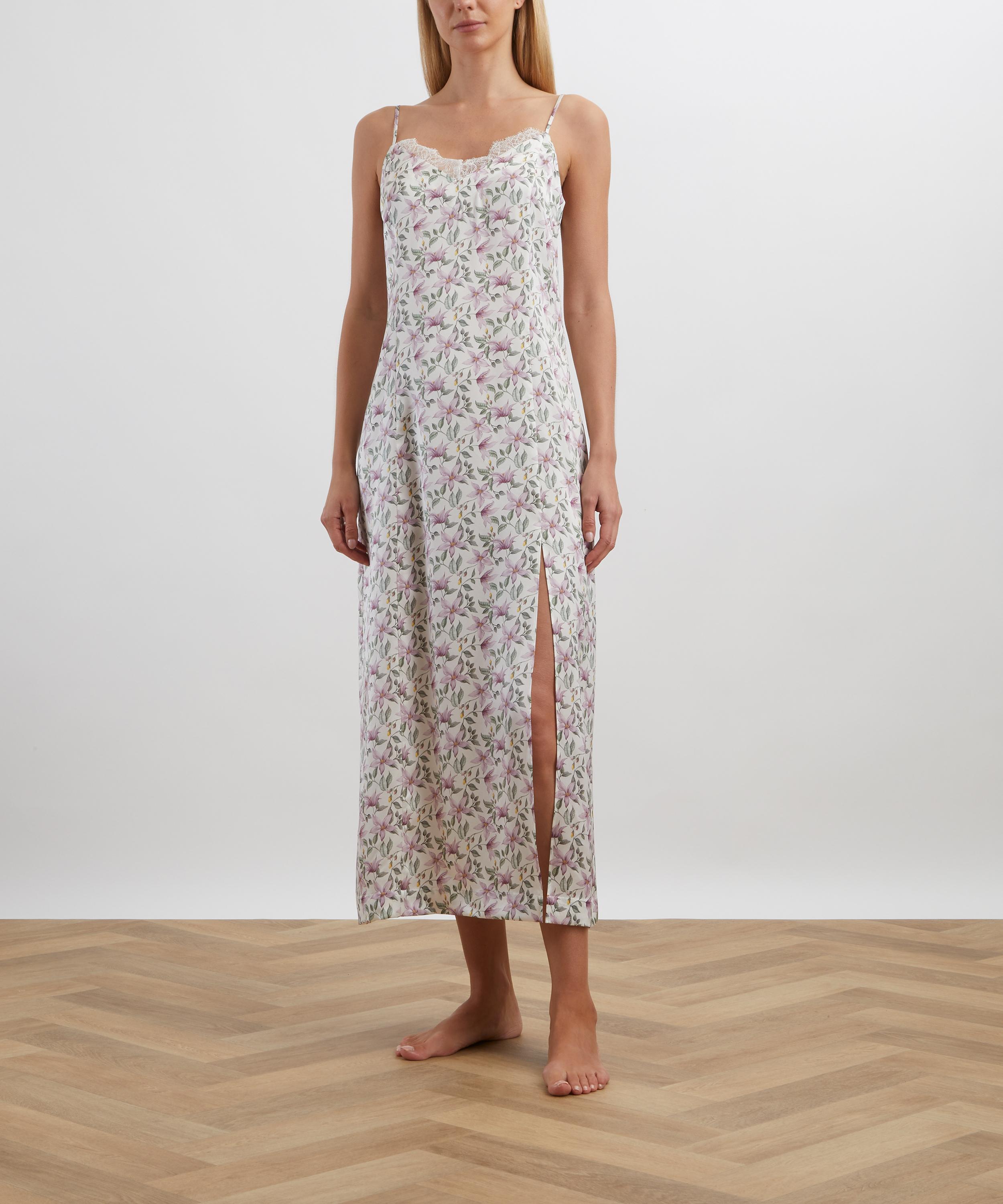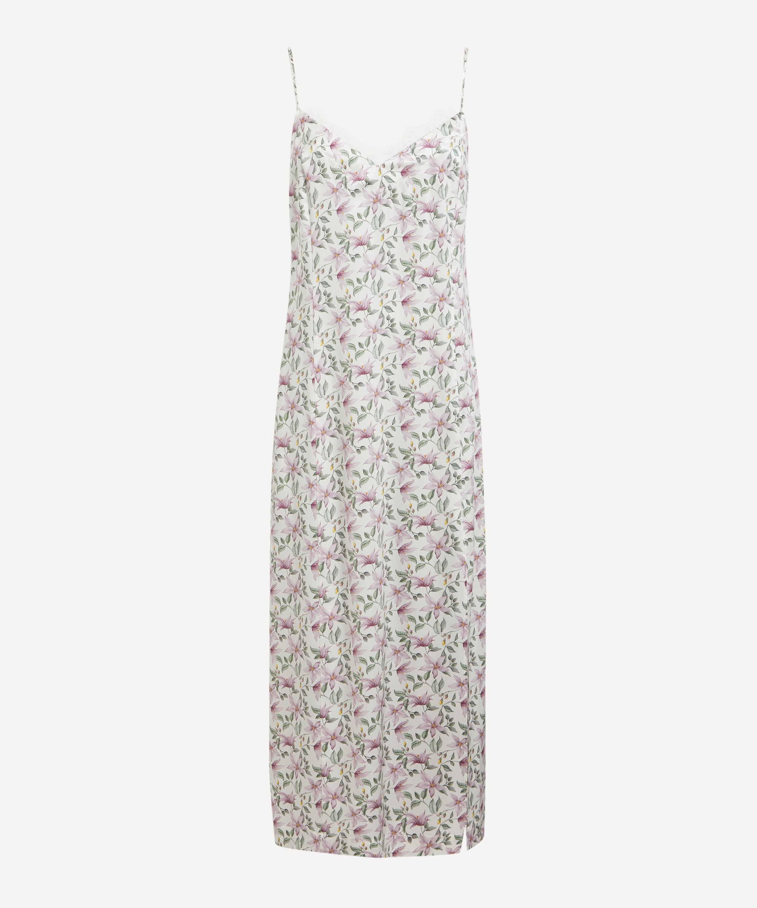 Gracefully tailored in silk-satin, Liberty’s lace-trimmed Ava Fleur Slip Dress redefines loungewear with timeless elegance.