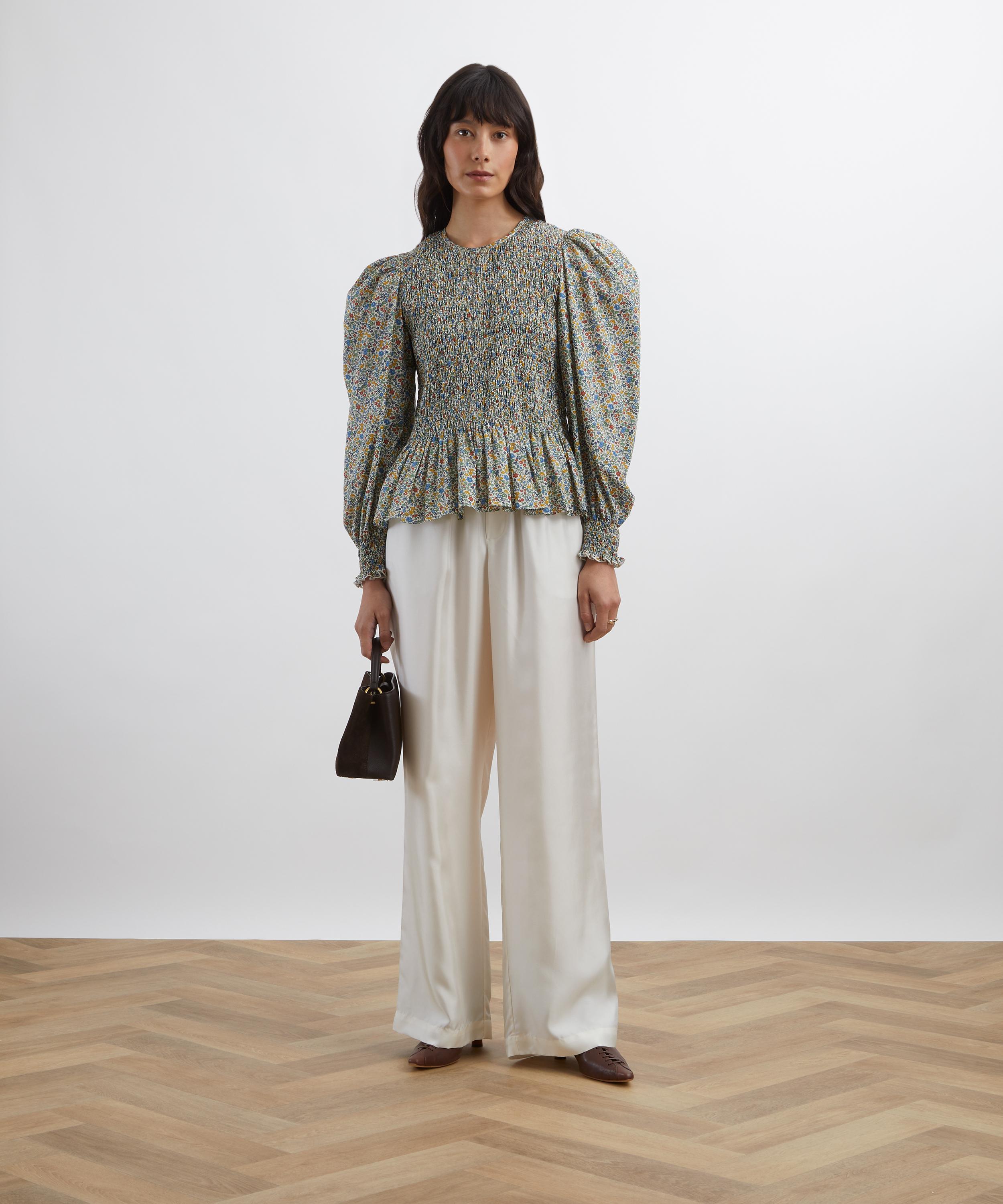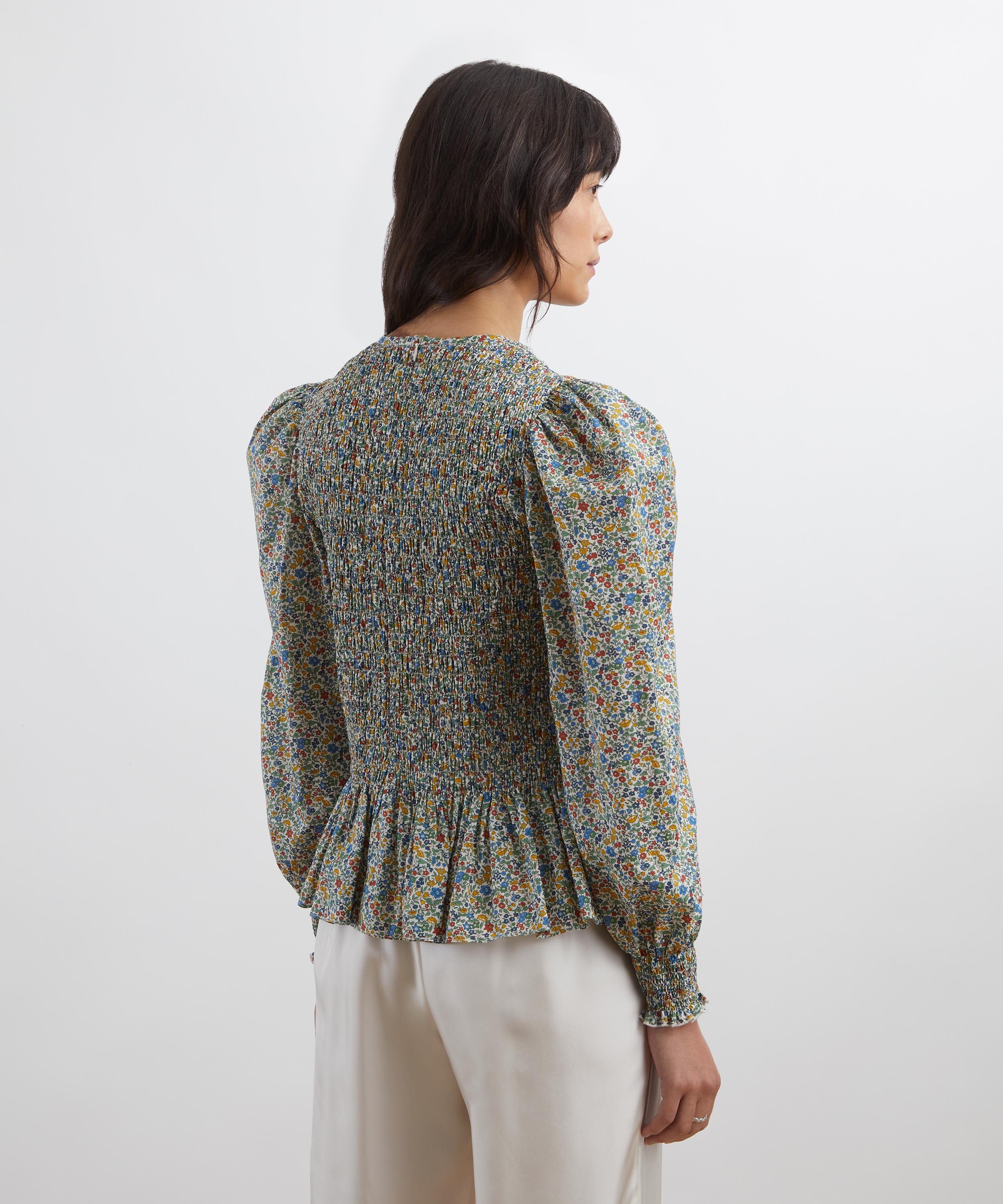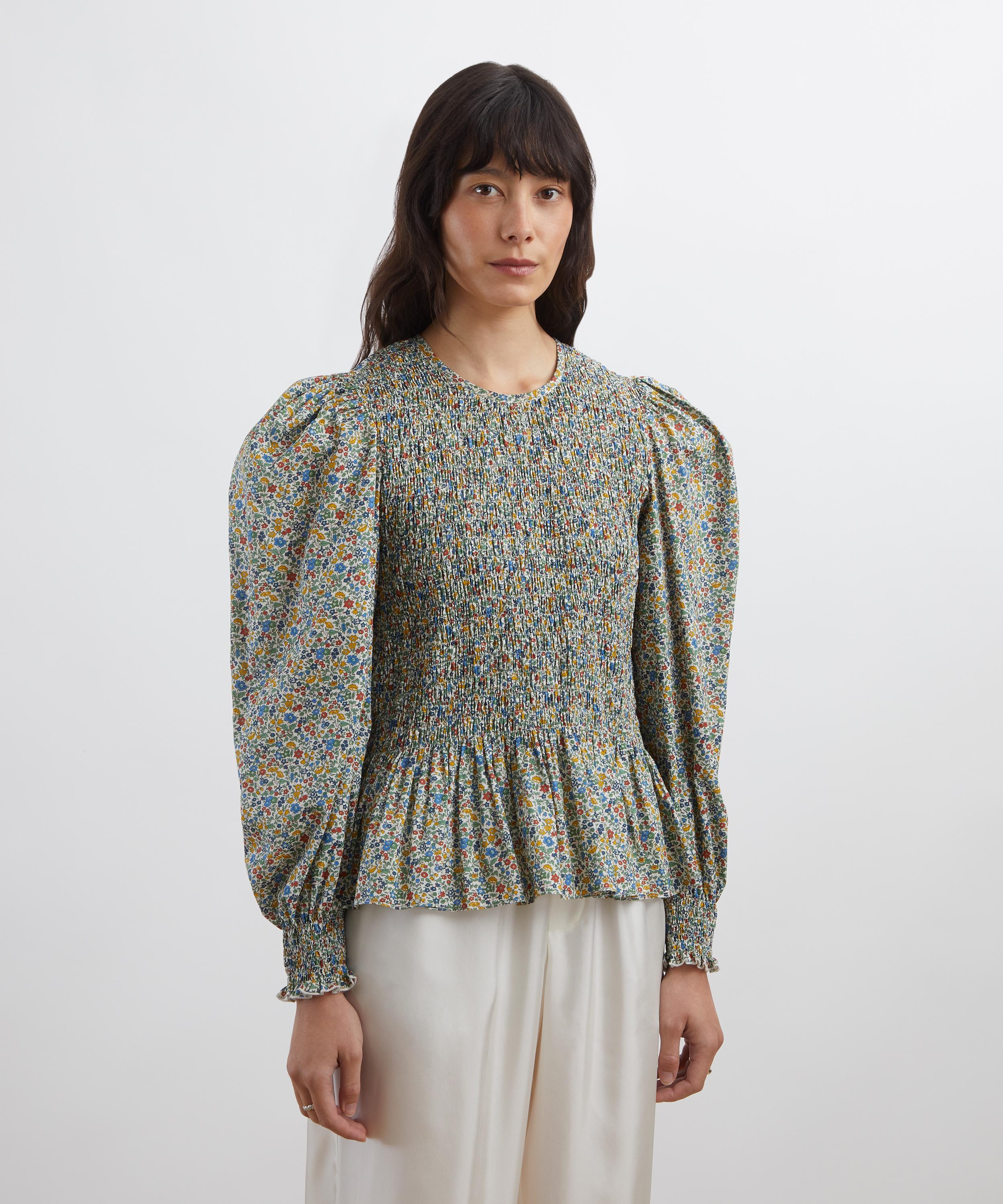 Featuring a fitted smock bodice, voluminous long sleeves, and a gathered peplum hem, this blouse is crafted from our signature Tana Lawn™ Cotton – celebrated for its vibrant print quality and smooth, silky feel.