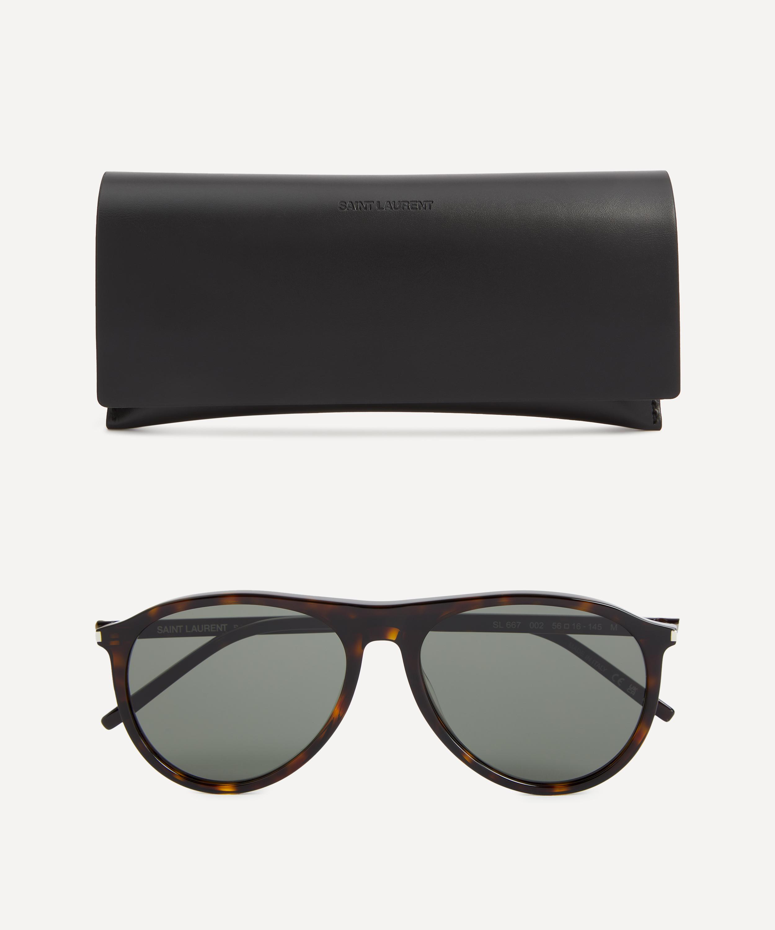 Confidently complete any curated look with these stylish aviator sunglasses from fashion-house Saint Laurent. A must-have pair in your repertoire, they’re crafted from Havana acetate and UV-protective, grey tinted lenses, adorned with a subtle brand logo to the inside temples - perfect for sunny city strolls, or days spent on the beach.