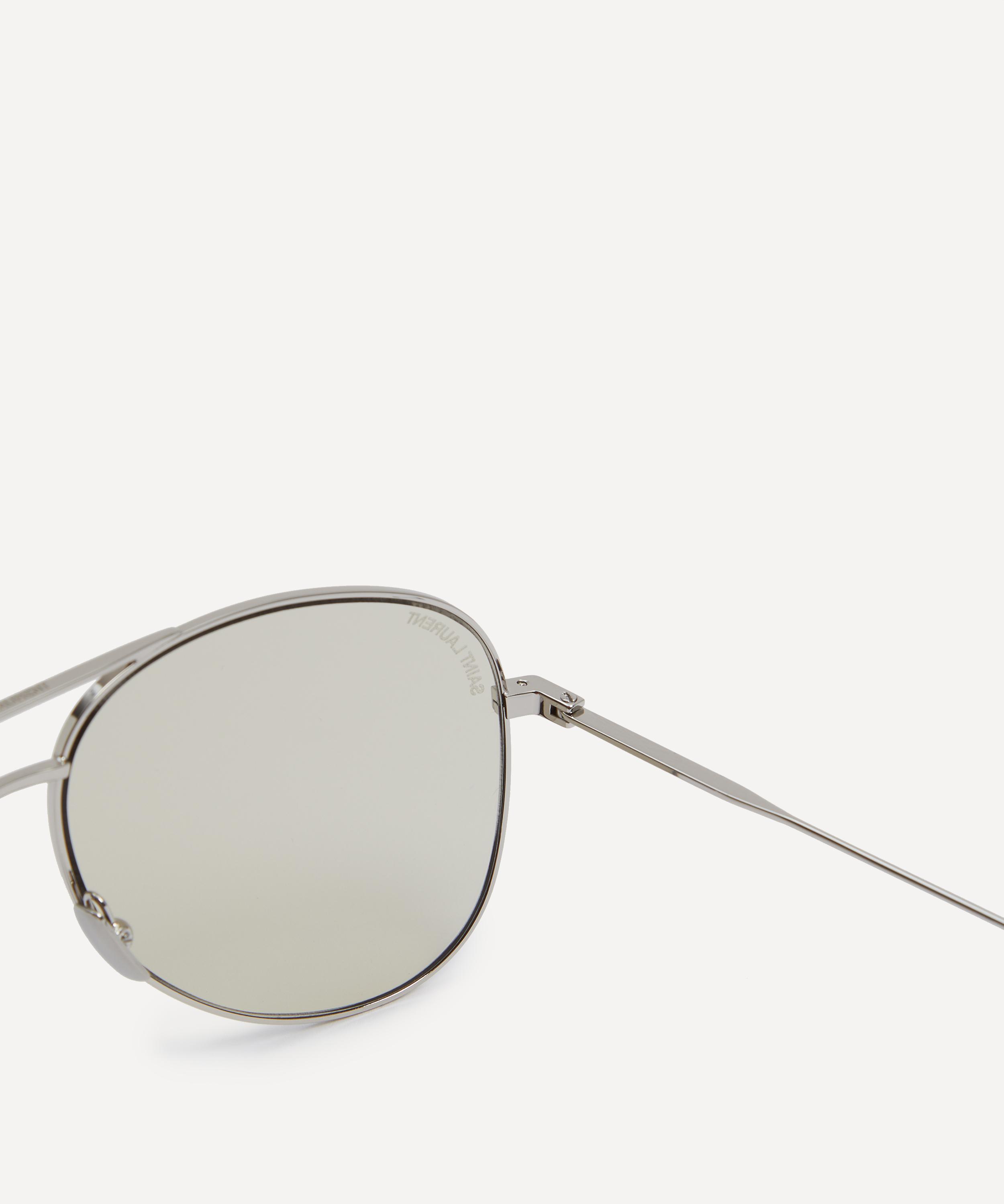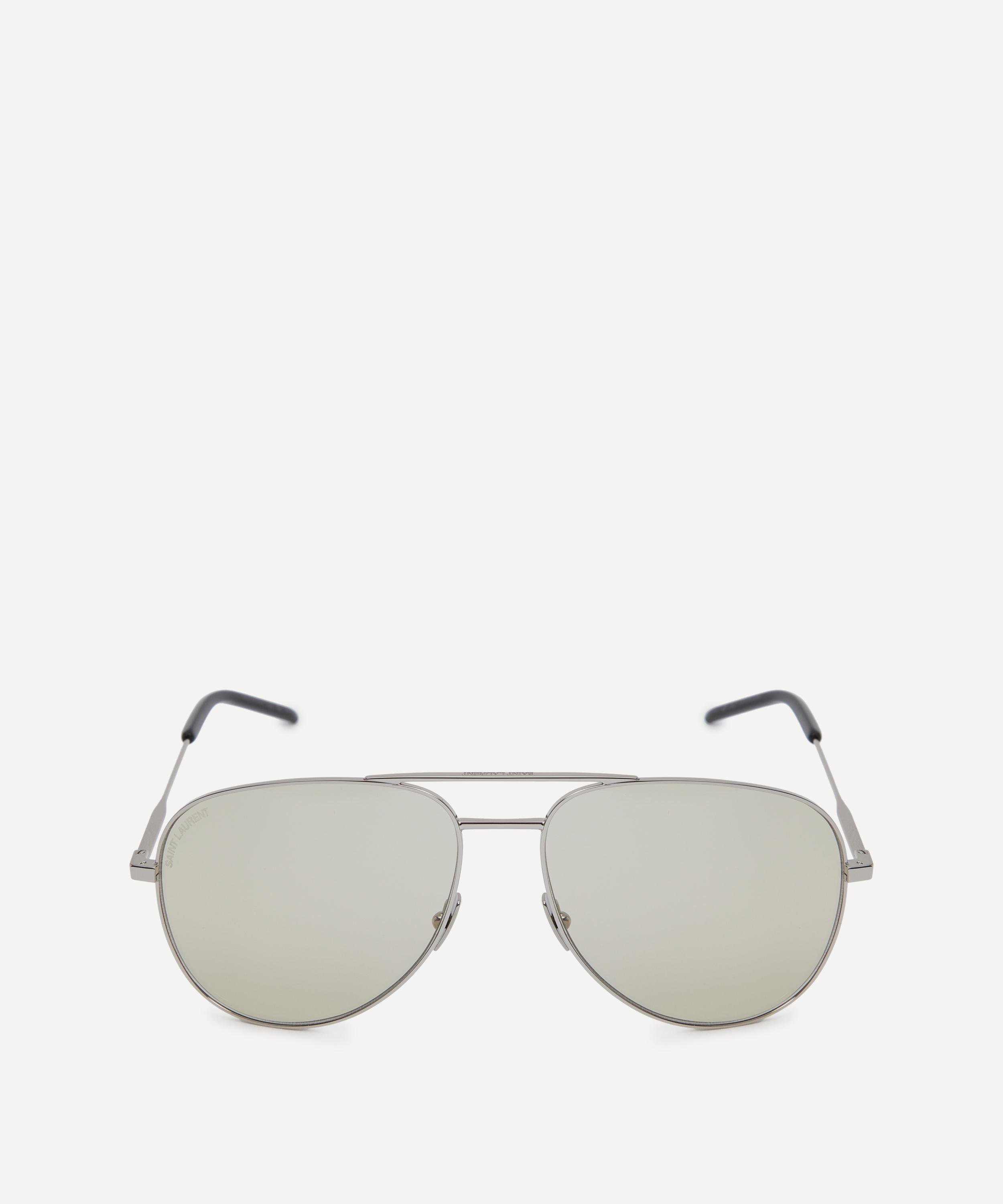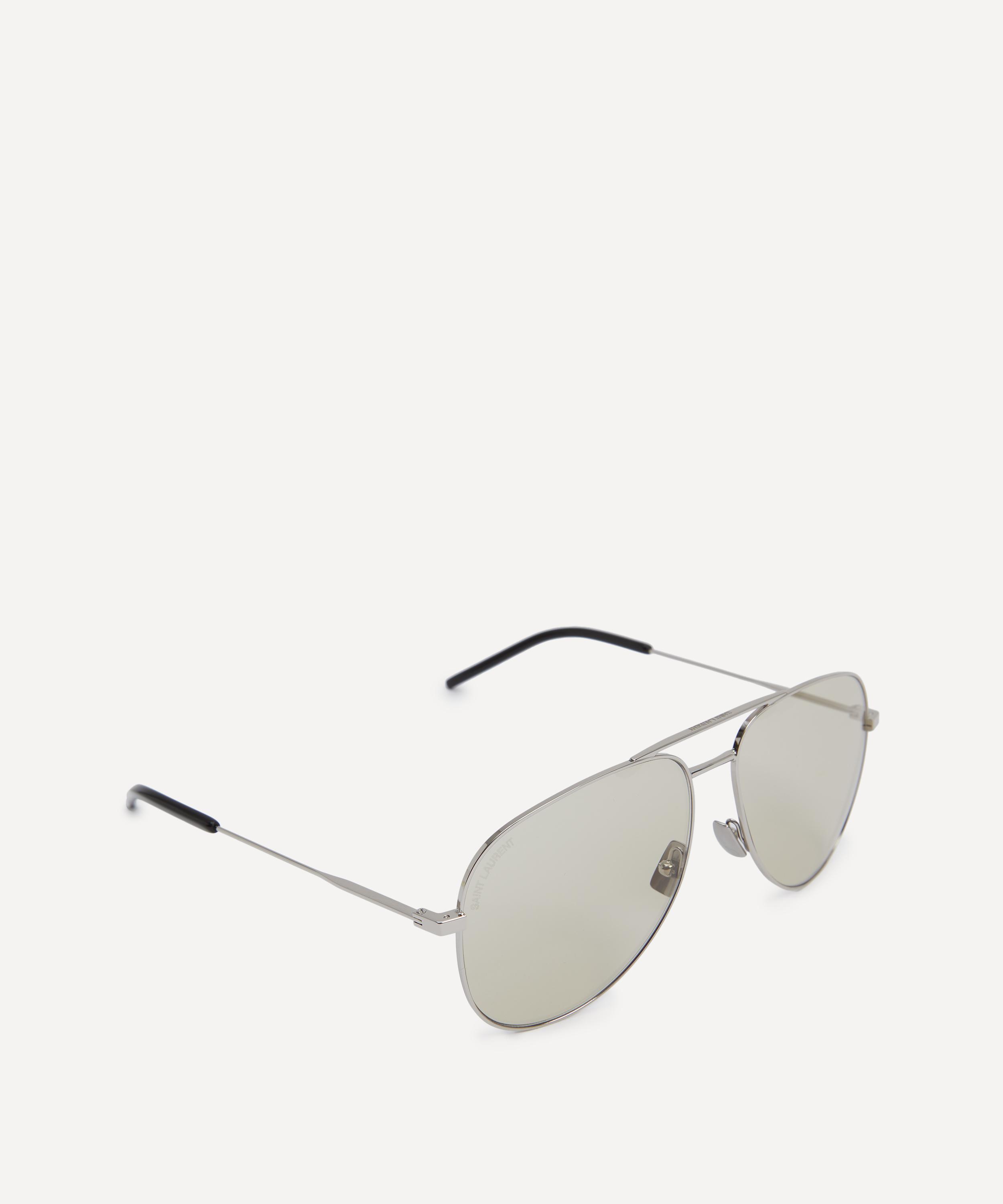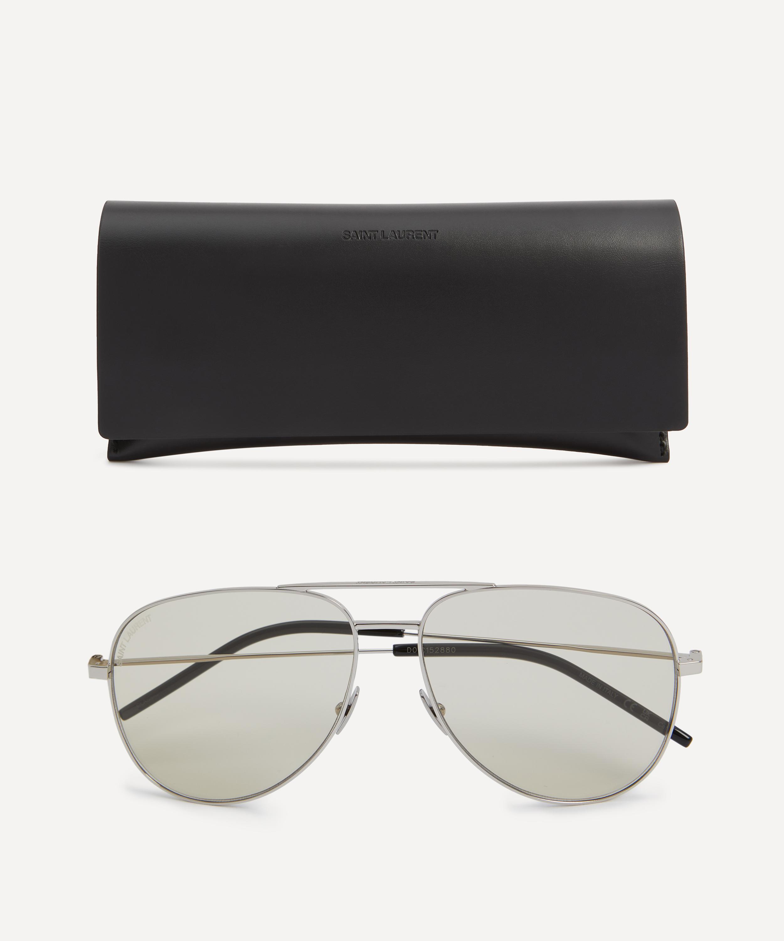 Confidently complete any curated look with these stylish aviator sunglasses from fashion-house Saint Laurent. A must-have pair in your repertoire, they’re crafted from silver-tone metal with UV-protective, grey tinted lenses, and adorned with a subtle brand logo to the temples - perfect for sunny city strolls, or days spent on the beach.