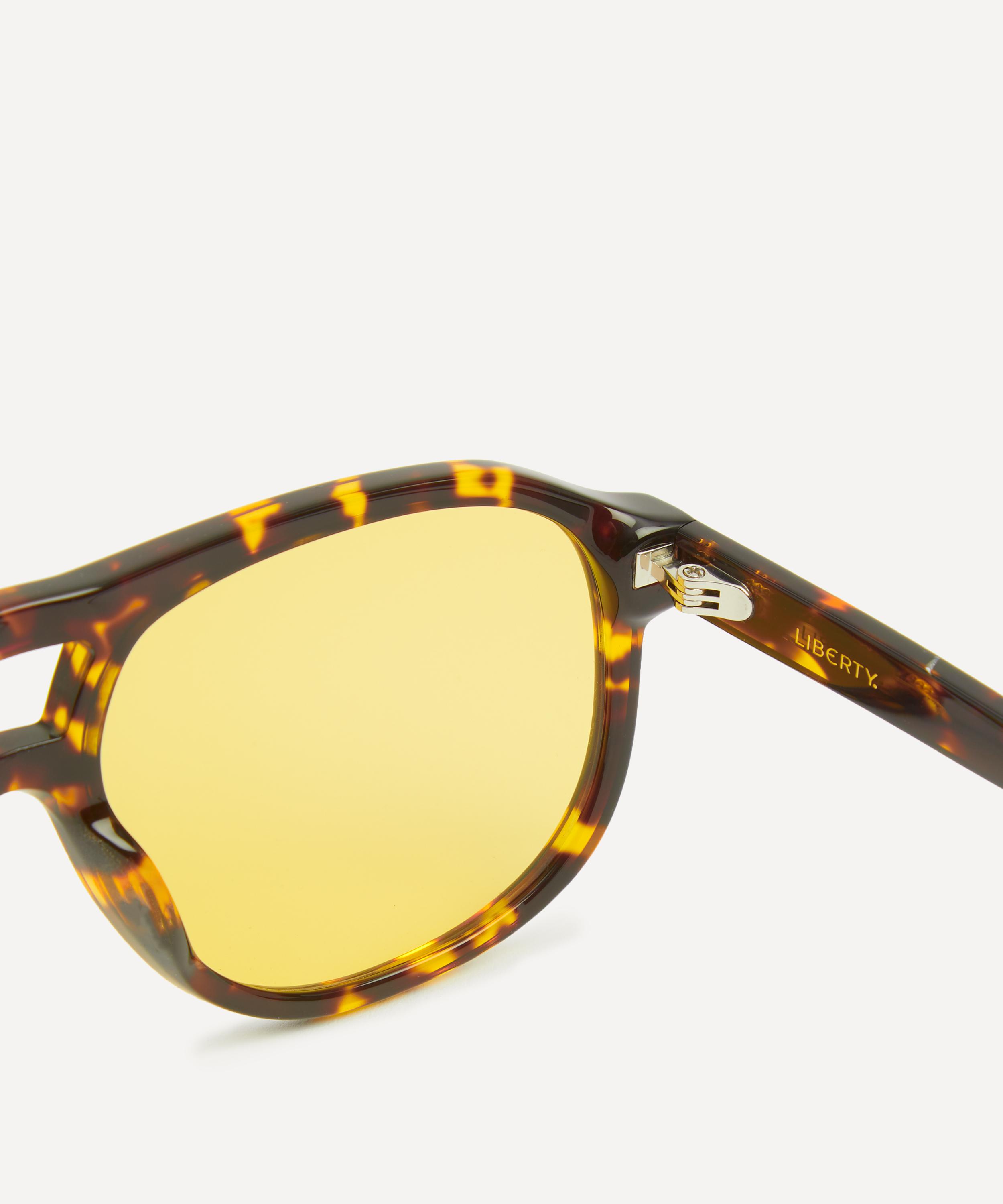 Expertly crafted from smooth and durable acetate, this flattering pair is characterised by its classic aviator shape, offering both a polished look and practicality. The elegant tortoise design is complimented by yellow-tinted lenses – to shade and protect your eyes from UV light. Finished with signature Liberty branding to the temple, they arrive housed in a bespoke Liberty print case – perfect for sun-drenched city strolls or weekend escapes to the coast.