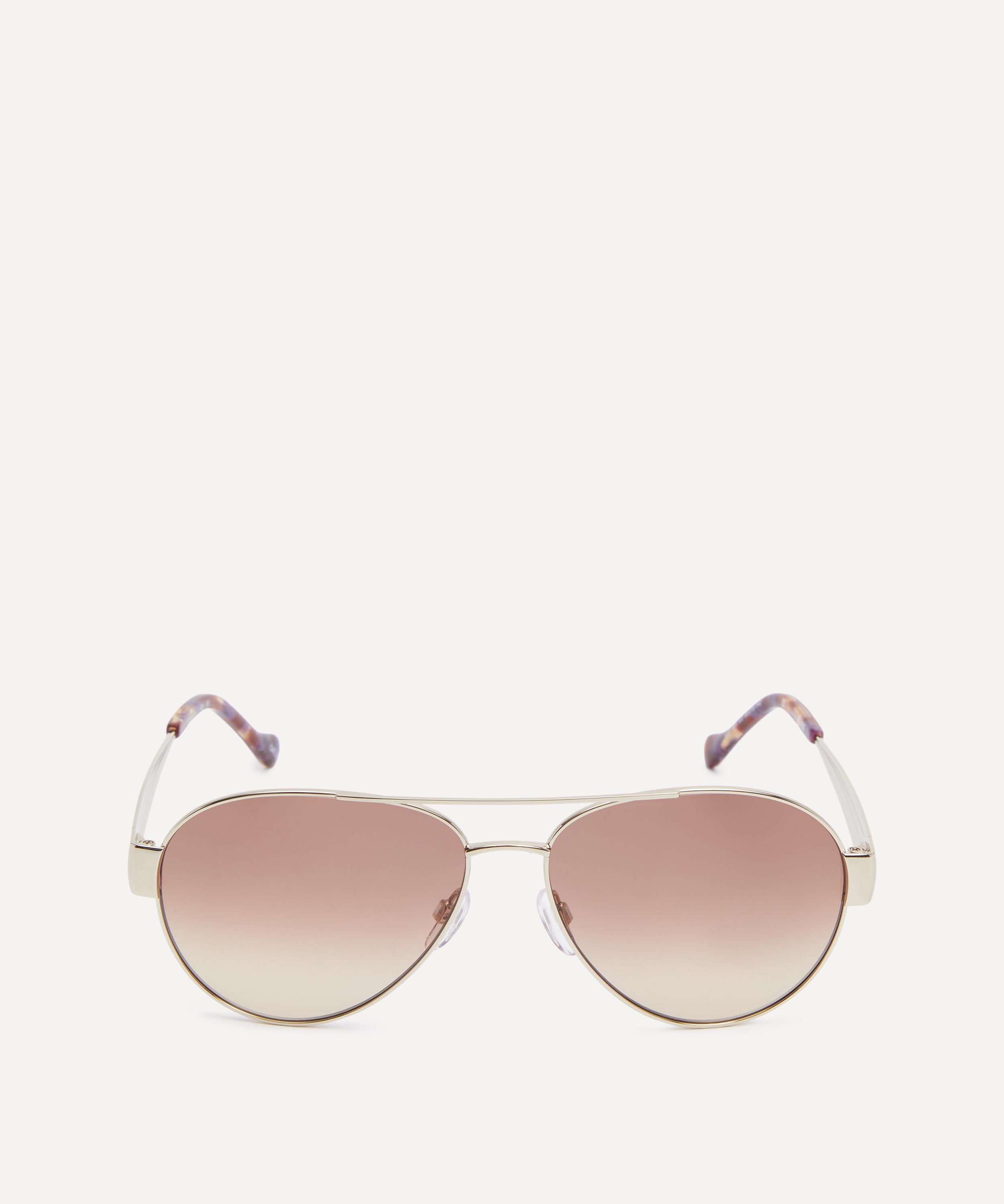 Expertly crafted from gold-tone metal, this flattering pair is characterised by its classic aviator shape, offering both a polished look and practicality. The shiny metallic finish is complimented by acetate temple tips and softly tinted lenses – to shade and protect your eyes from UV light. Finished with signature Liberty branding to the temple, they arrive housed in a bespoke Liberty print case – perfect for sun-drenched city strolls or weekend escapes to the coast.
