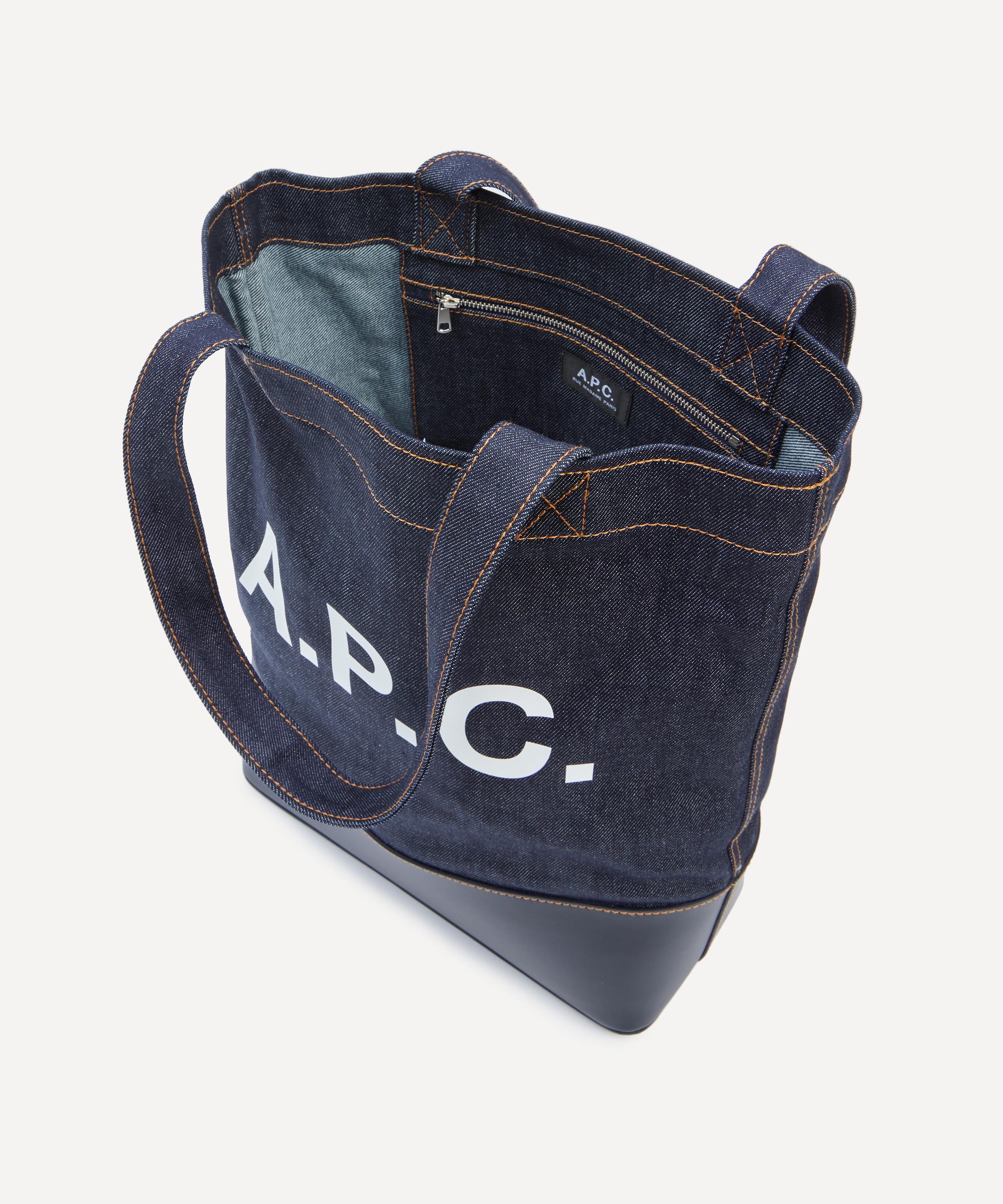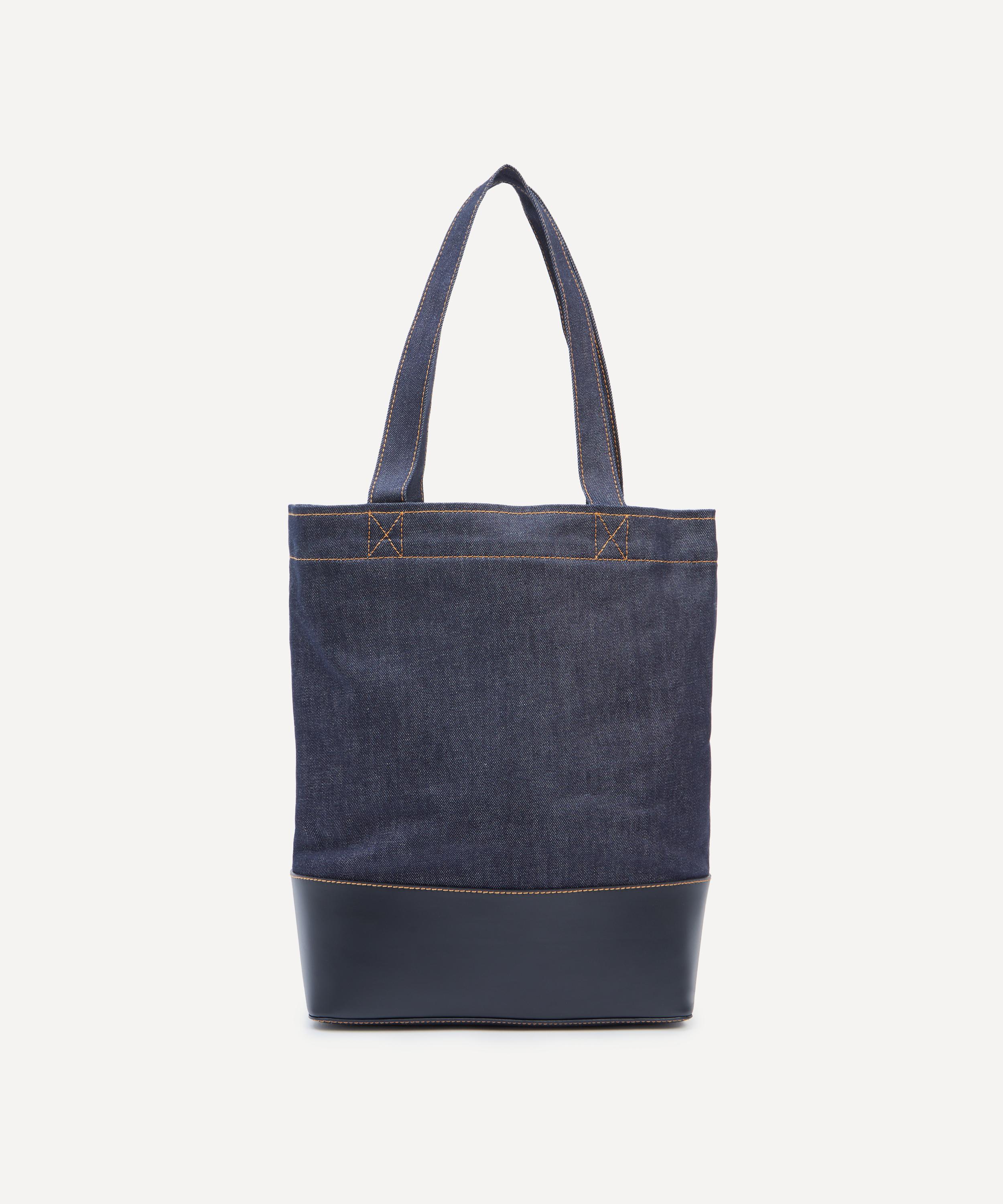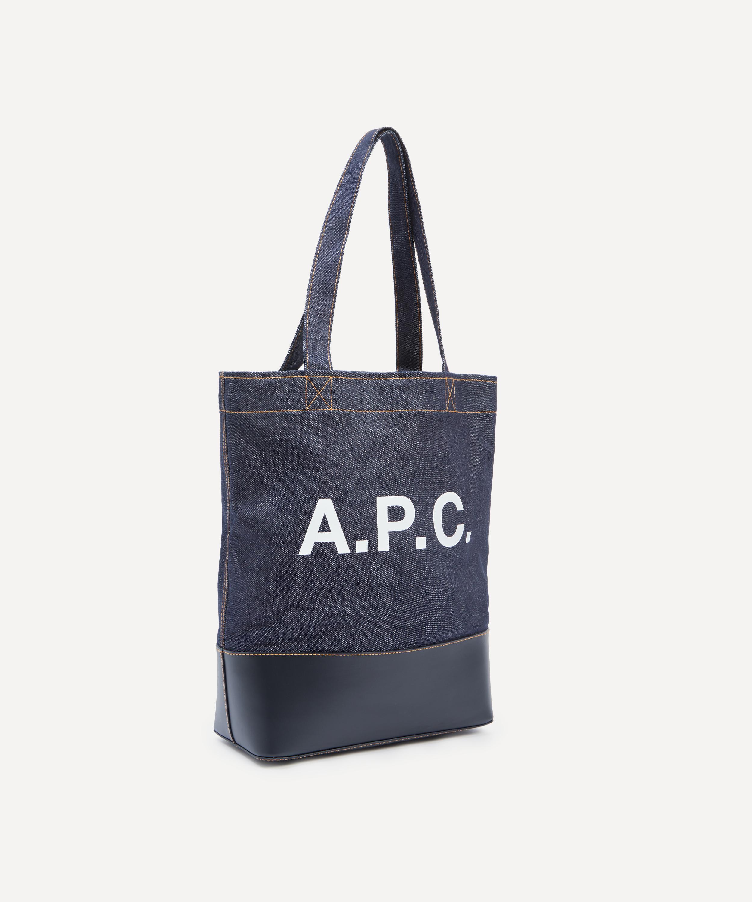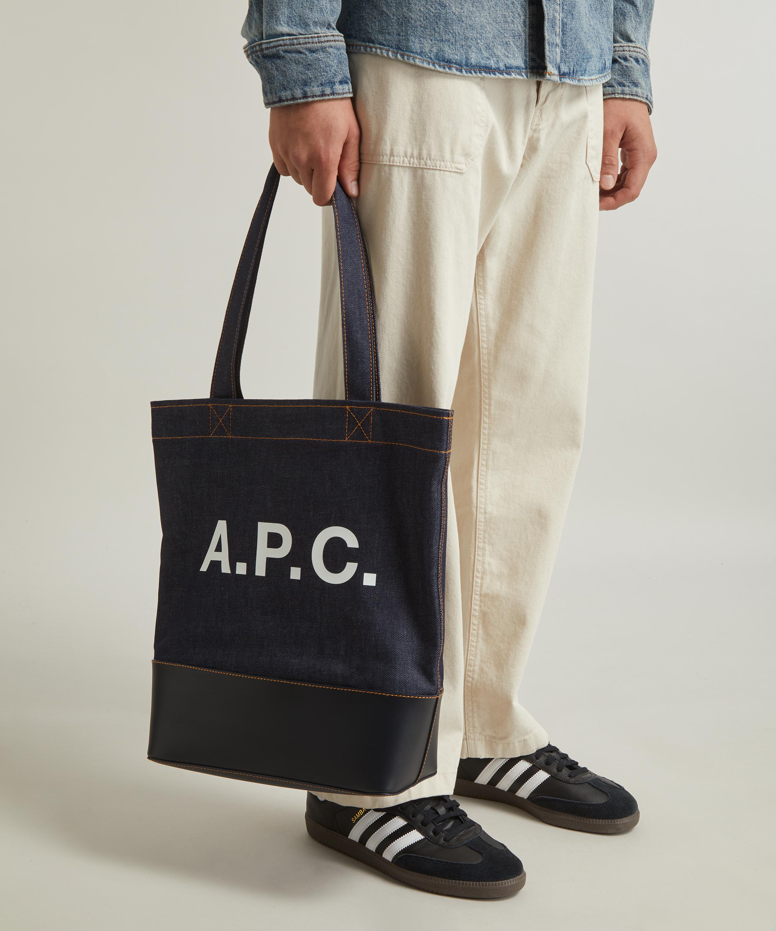 The Axelle tote bag perfectly demonstrates A.P.C.’s refined touch - cut from the label’s go-to dark-wash denim and trimmed with navy calfskin leather at its base, it is silkscreen printed with the brand’s signature logo. Complete with two carry handles, it’s the perfect grab-and-go bag for all your daily essentials.