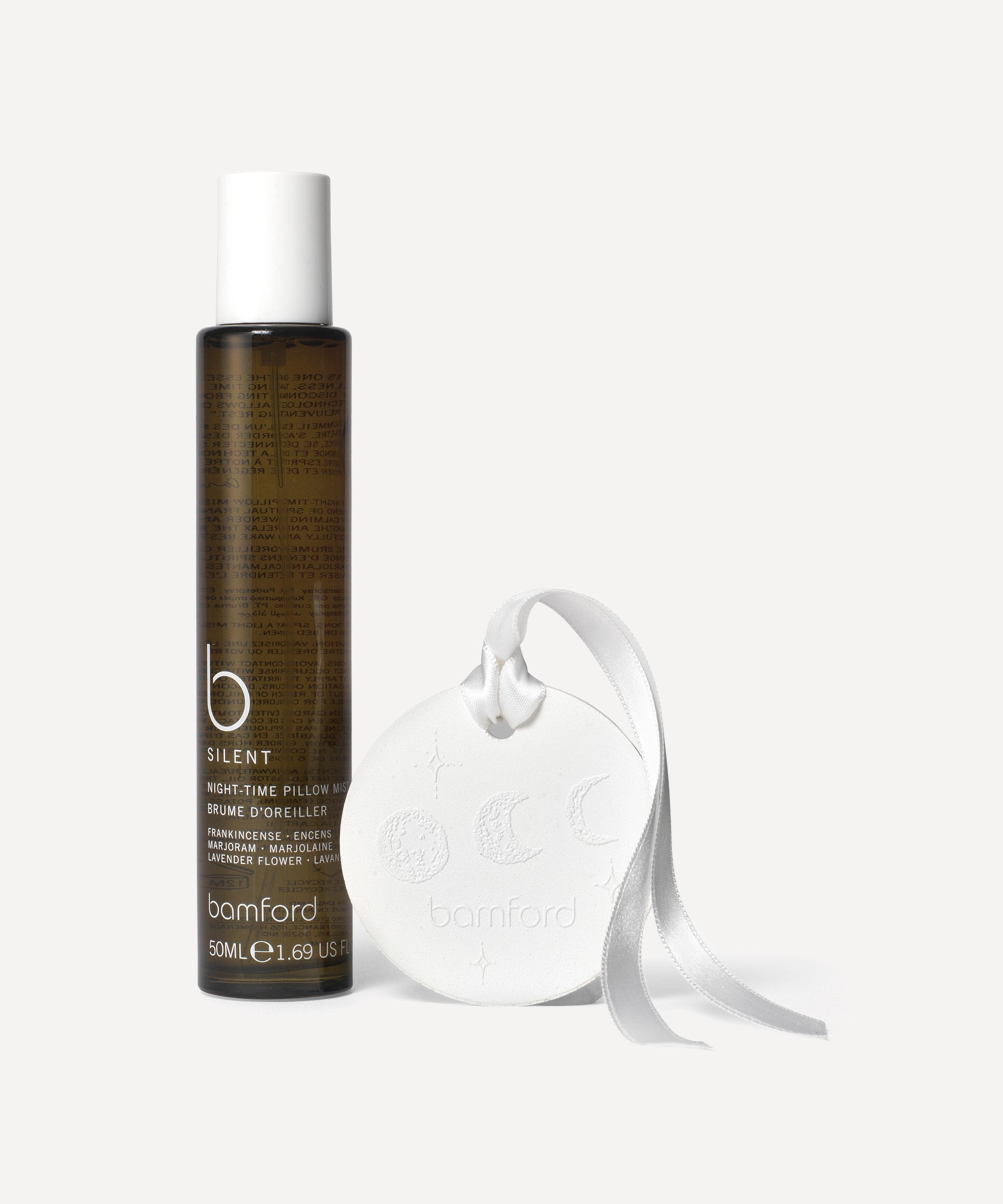 A dynamic duo for a restful night’s sleep, Bamford presents the B Silent Ceramic Gift – a gift set offering the best-selling B Silent Pillow Mist accompanied by a ceramic disc.