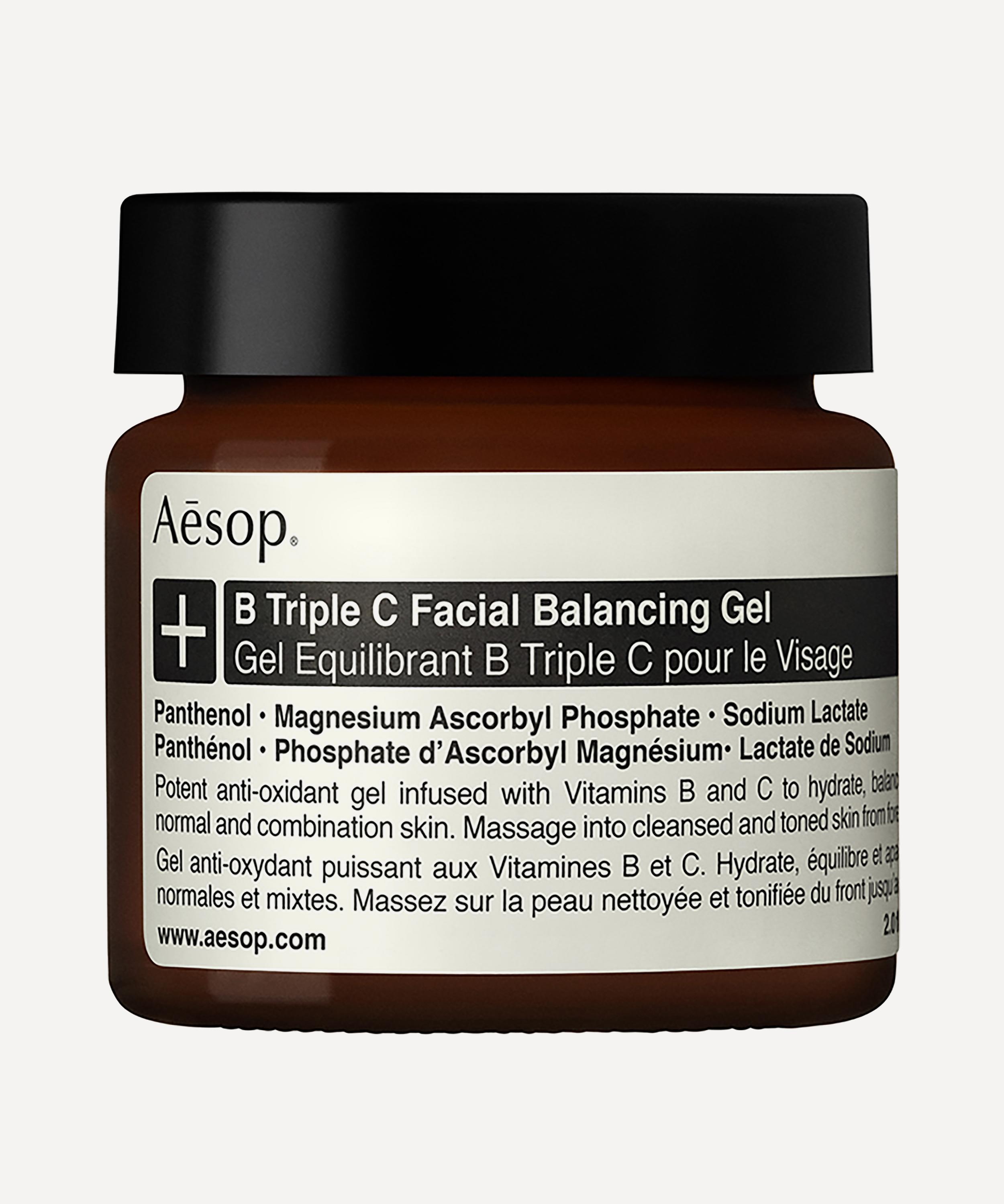 Aesop B Triple C Facial Balancing Gel is a lightly hydrating treatment, enriched with purifying, fragrant botanicals to balance and soften skin.