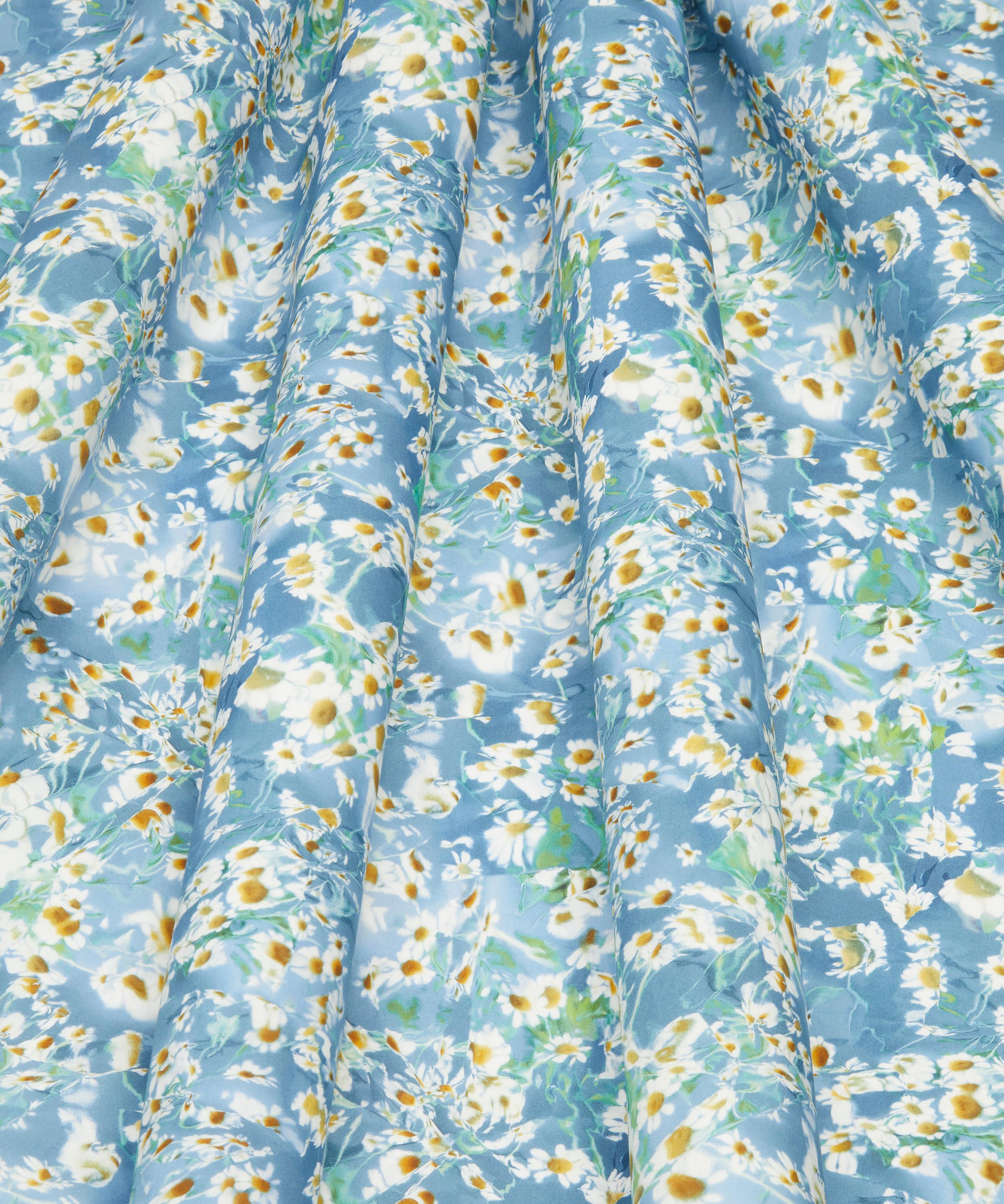 Fashion photographer Sir Cecil Beaton began his career as a ‘society’ photographer in the 1920s, capturing the lives of young Bohemian socialites known as the Bright Young Things. Inspired by Beaton’s pursuit of light and sparkle, Baba was created by photographing distorted reflections of daisy bouquets using a series of curved mirrors. Further enhanced by digital manipulation, the pattern transforms into an ethereal, otherworldly design.