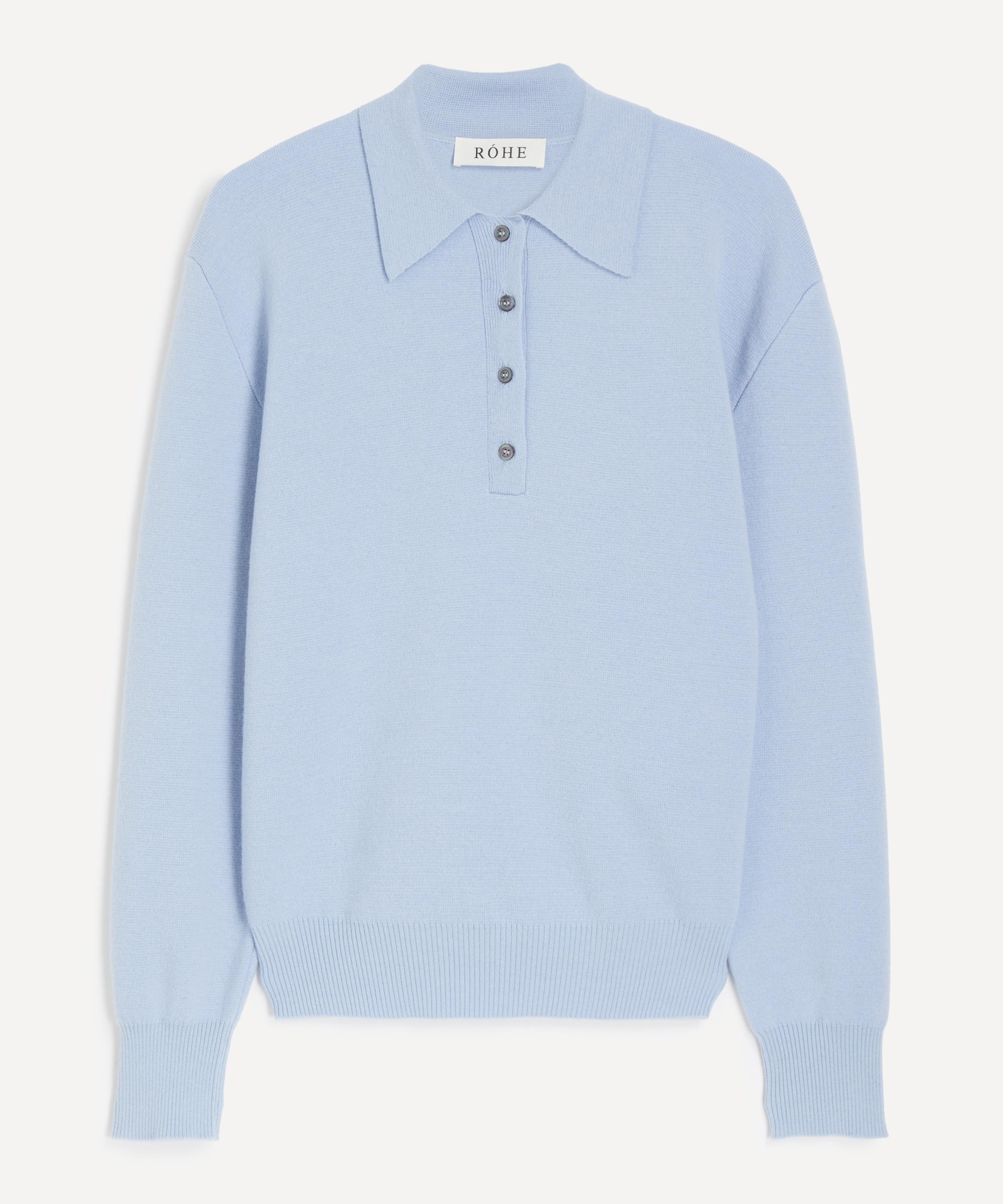 Timeless yet modern, the Baby Blue Compact Knitted Polo from Róhe showcases the brand’s signature craftsmanship and refined attention to detail.