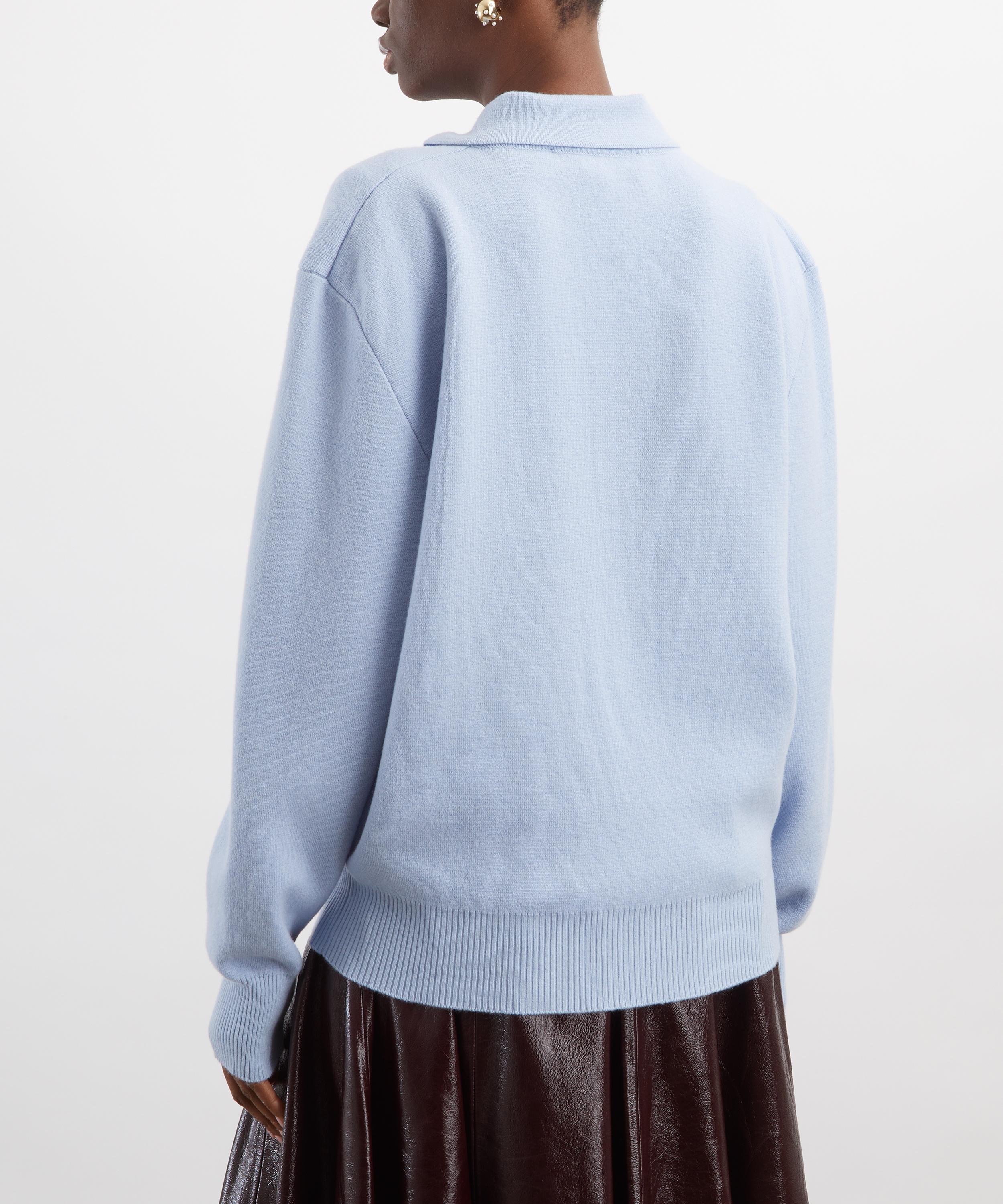 An instant staple, this classic polo is crafted in a compact knit blending fine wool and cashmere for a soft feel. Designed with a relaxed silhouette and dropped shoulders, it’s finished with a flat-knit collar and a partial button placket for a timeless look.