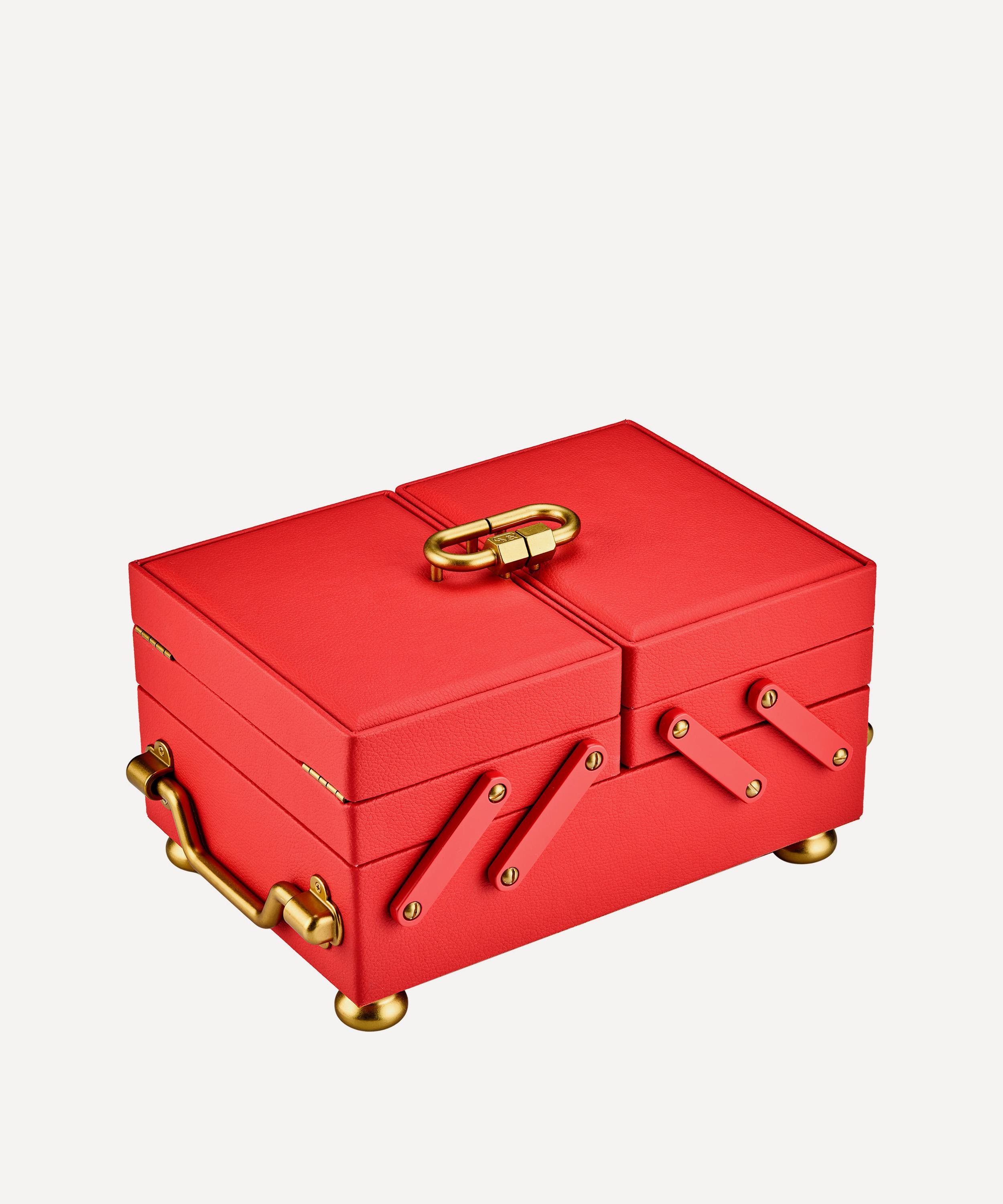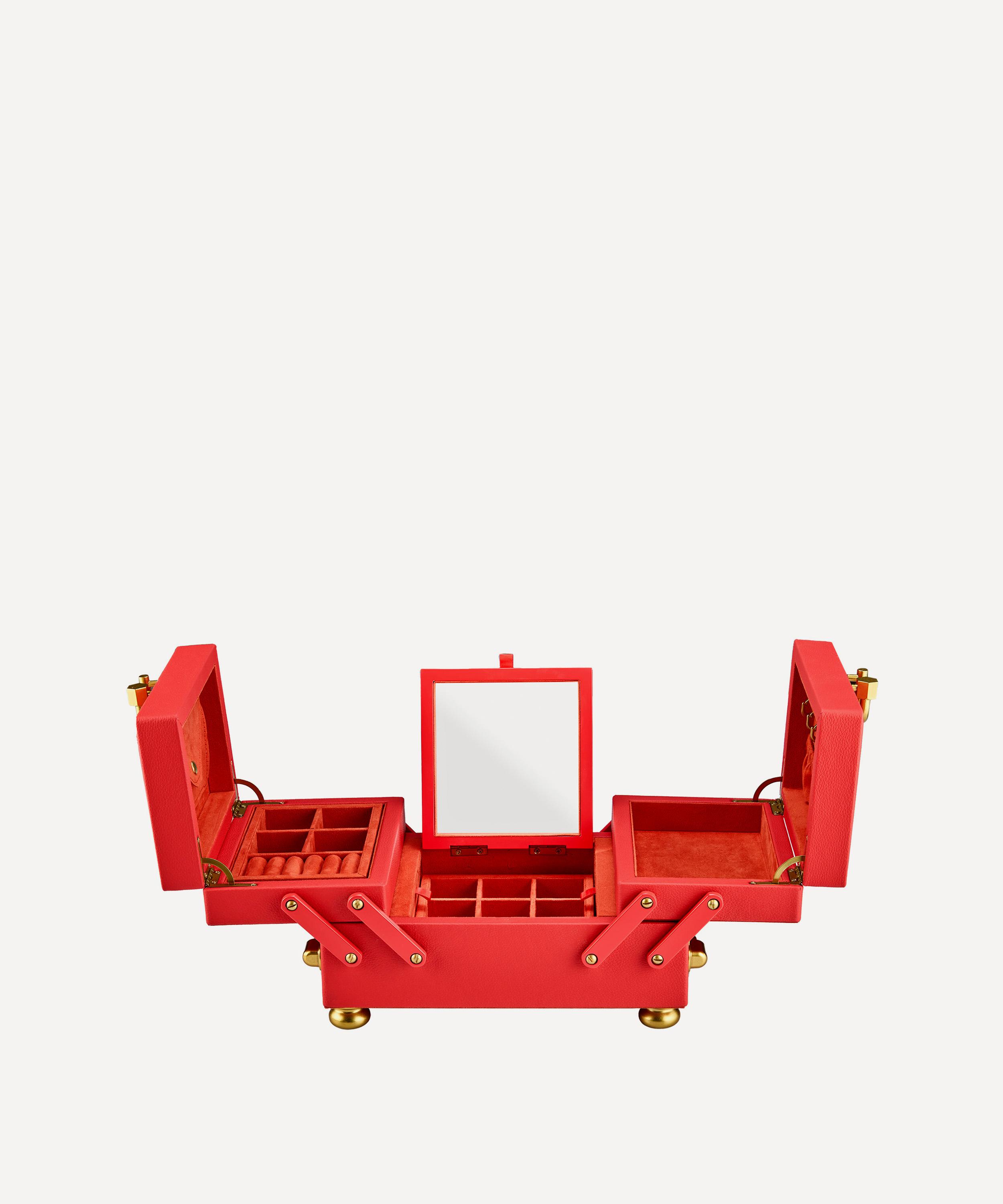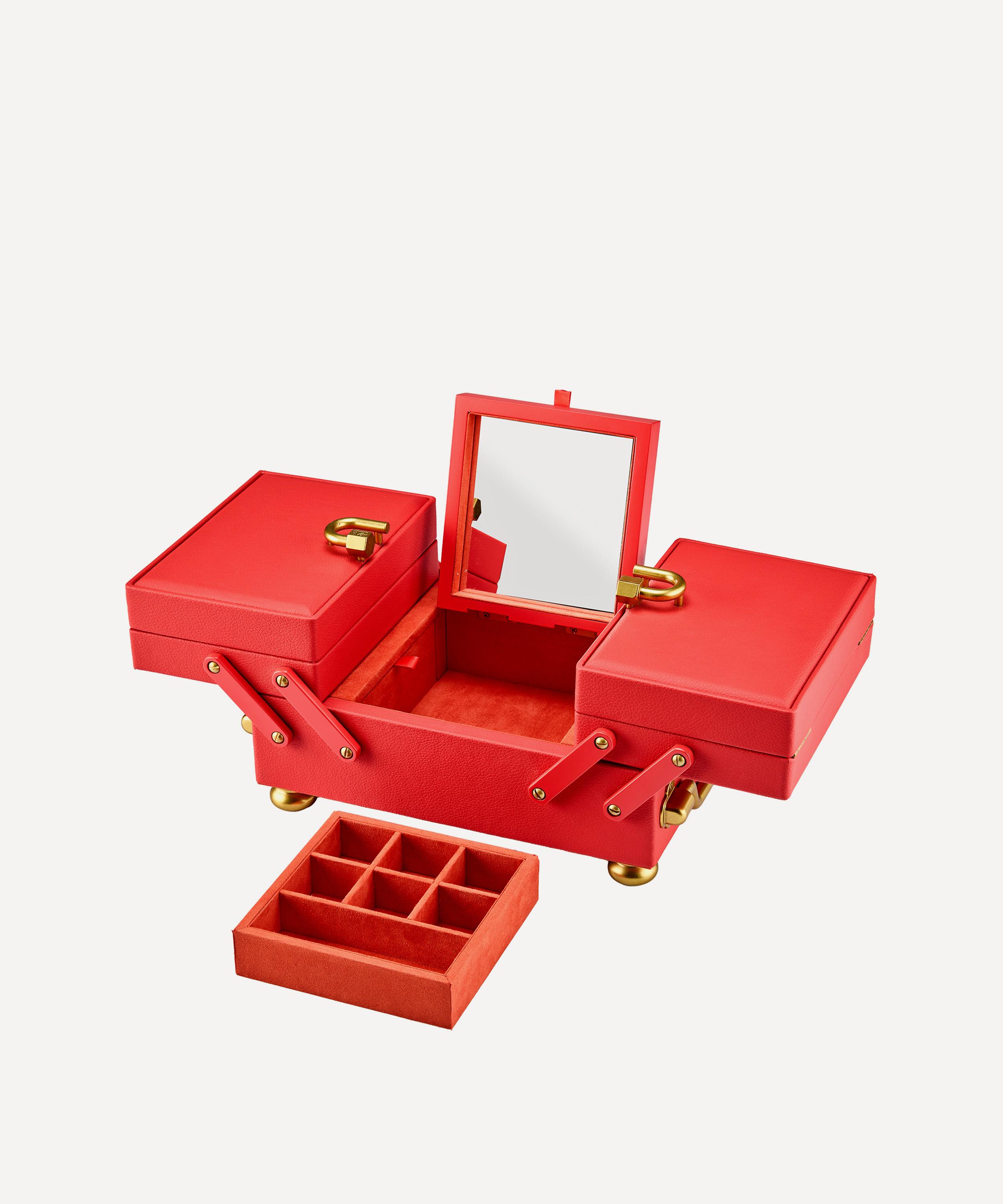 Crafted in faux leather, it’s a feat of precision engineering with carry handles on either side and two removable trays that you can fill and store either inside or outside the box. It opens and closes with a satisfying tactility due to the brand’s signature lock mechanism – inside you’ll find a wall of brass hooks that are perfect for hanging chains and necklaces, an envelope pocket for important papers, two secret compartments and a mirror. Whether used for housing letters and meaningful mementos or your favourite jewellery pieces, it holds space – both literal and symbolic – for the stories we choose to carry.