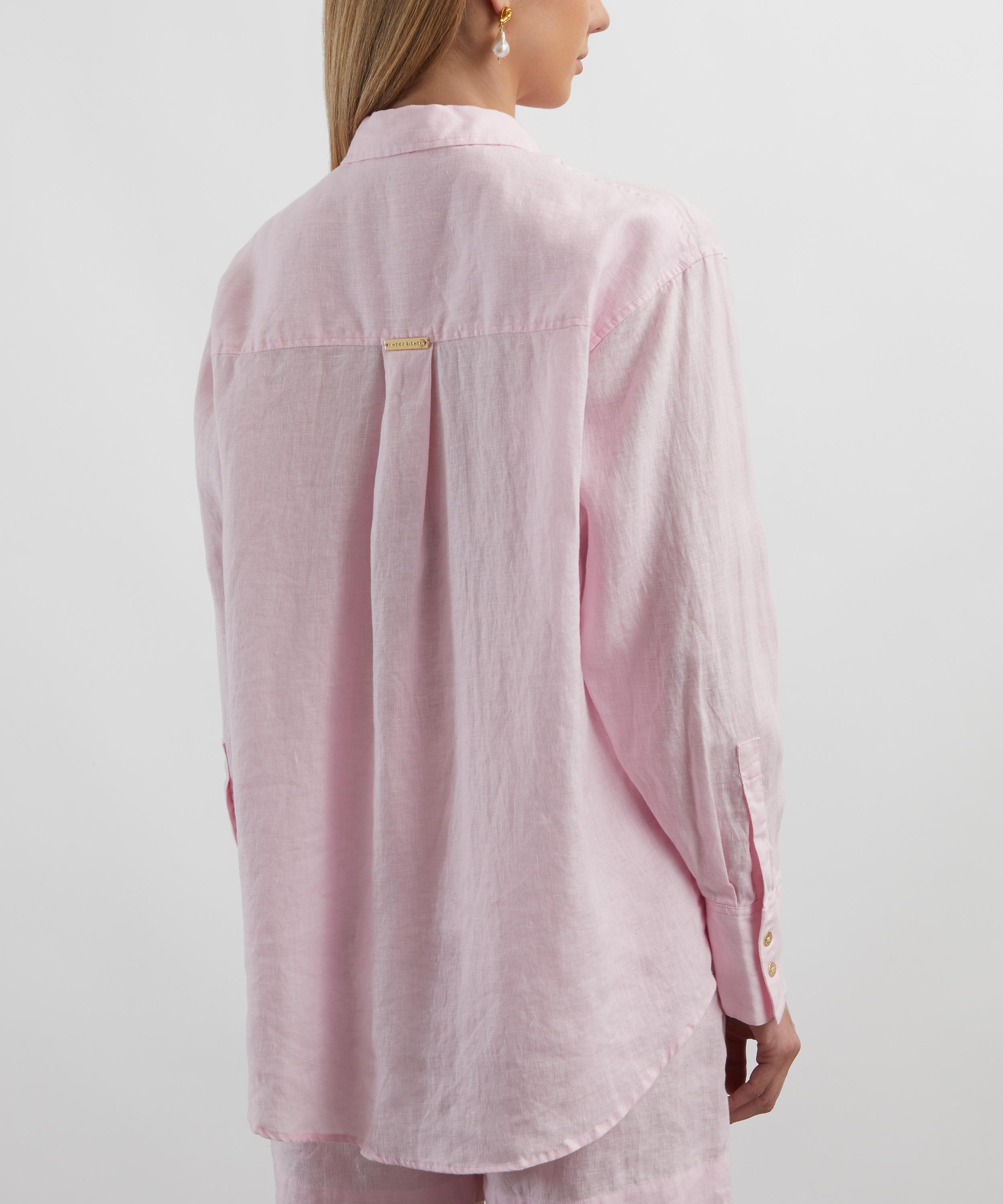 Crafted from pure linen, the Baie de Cassis Shirt offers an oversized fit with a classic collar, long sleeves, and a front button closure. Gold hardware and a patch pocket lend a refined touch, making it a versatile layering piece that effortlessly transitions from beach-to-bar.