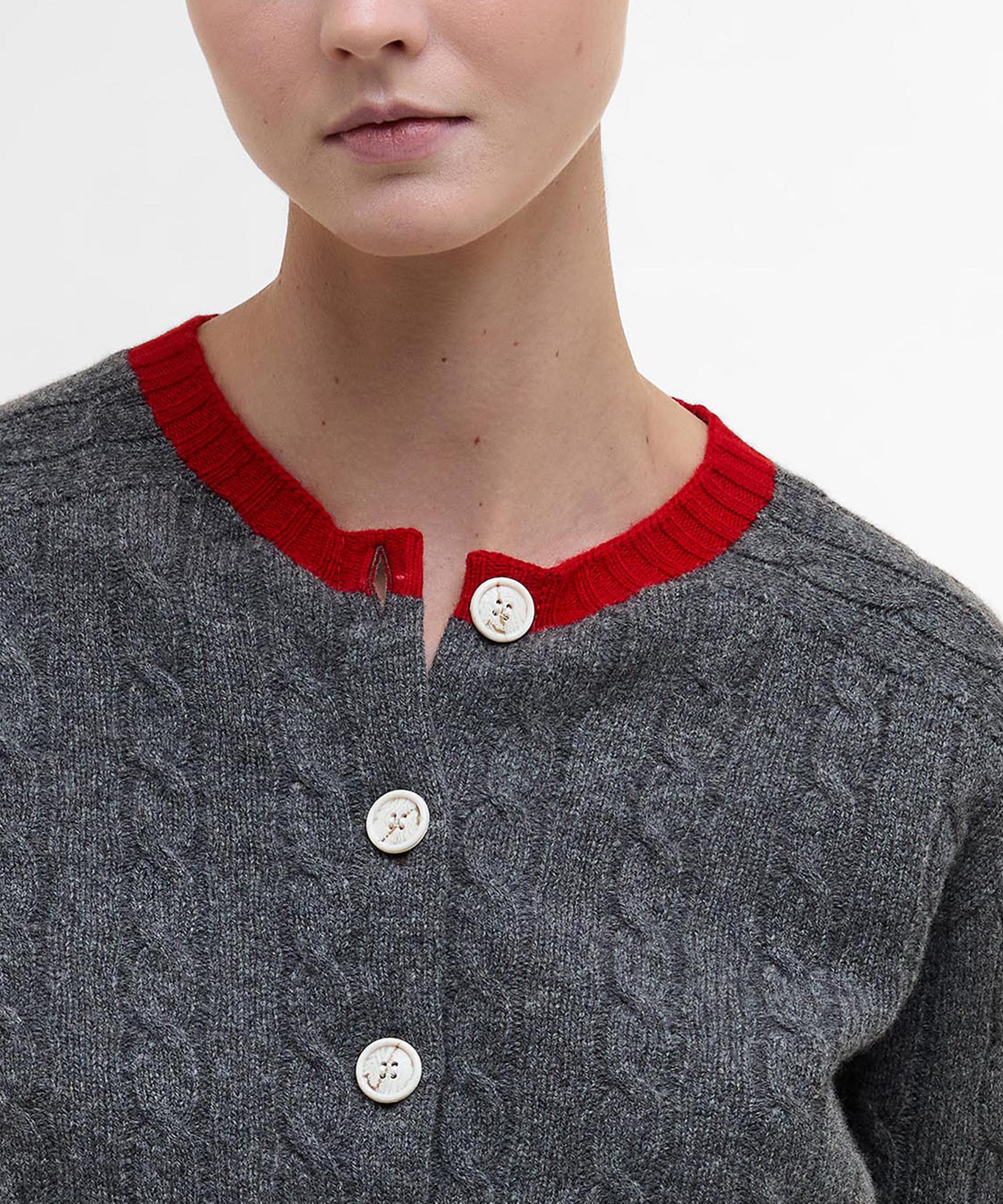 Meticulously crafted from pure lambswool by Harley of Scotland, this cable-knit cardigan showcases Barbour's commitment to premium quality and craftsmanship. Its bold profile and vintage-inspired design capture Alexa's signature style, blending heritage with contemporary flair.