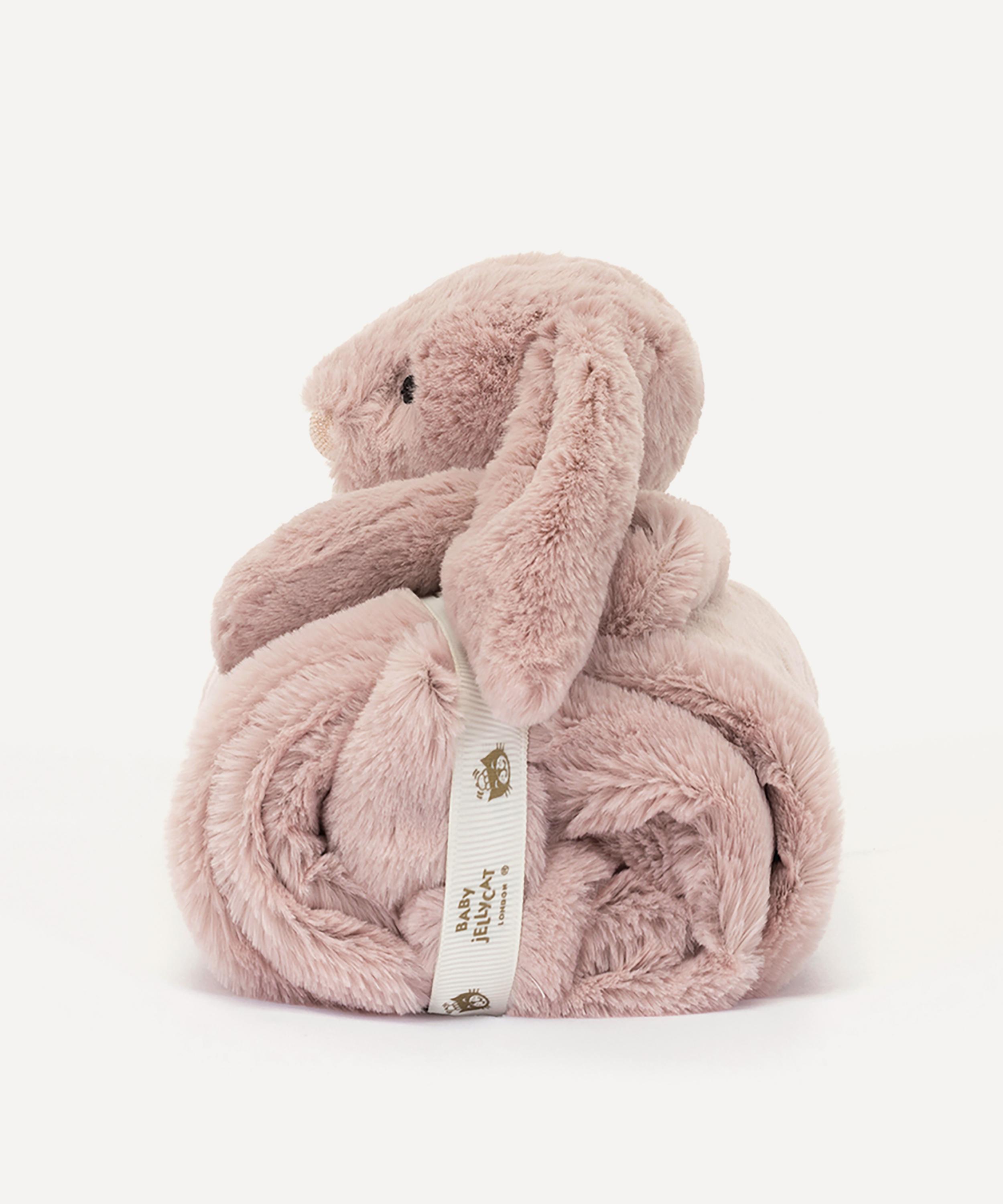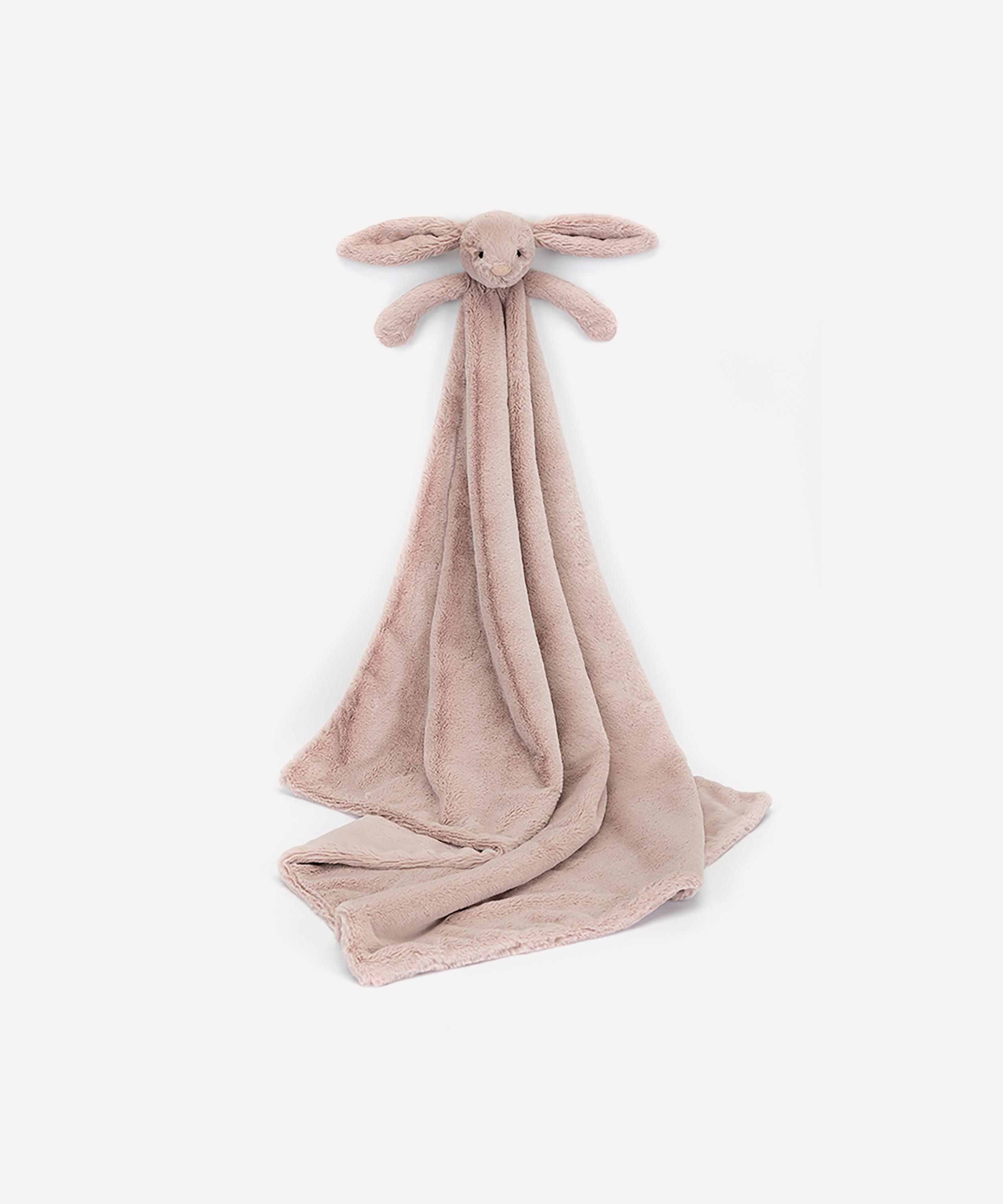 Crafted in Jellycat’s ultra-soft sweet rose-hued faux fur, the Bashful Luxe Willow Bunny Rosa Blankie is a charming companion for little ones to doze with.
