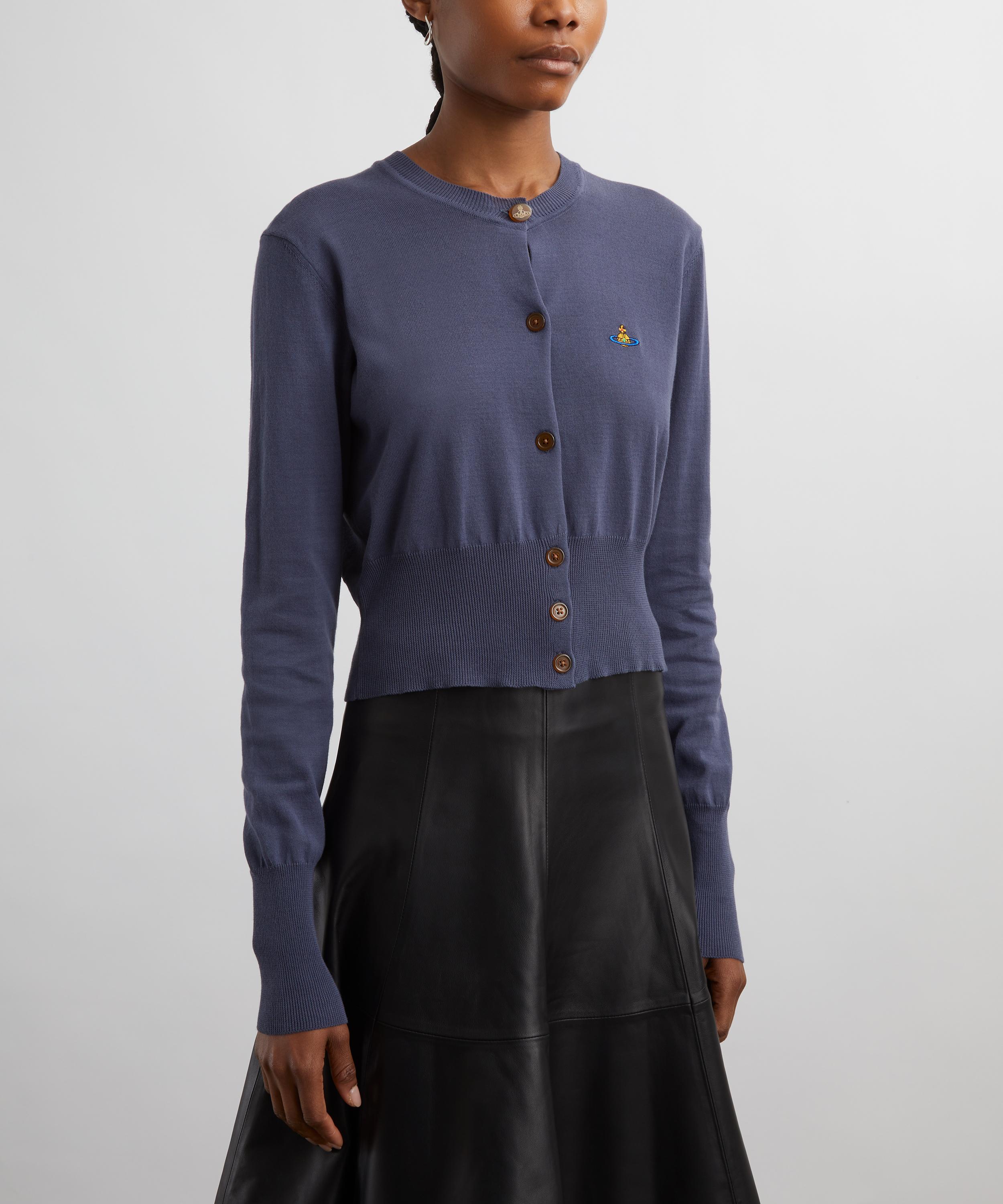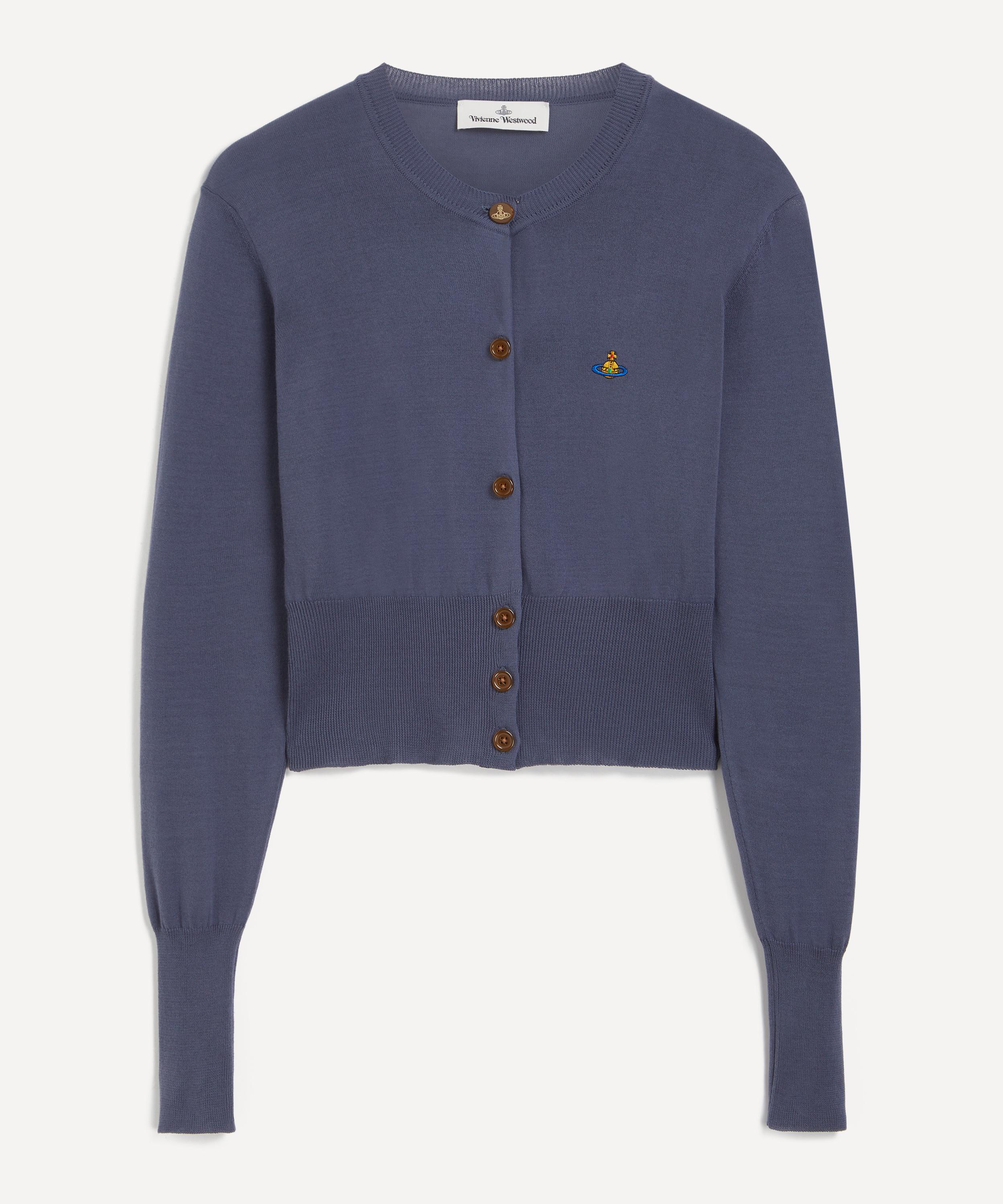 Crafted from a soft and lightweight cotton and cashmere blend, the Bea cardigan features a fitted silhouette with a round neckline, long sleeves and a straight hem. Secured with signature amber-coloured buttons, this piece is enhanced by an embroidered orb on the chest, synonymous with Vivienne Westwood’s vision of launching tradition into the future.