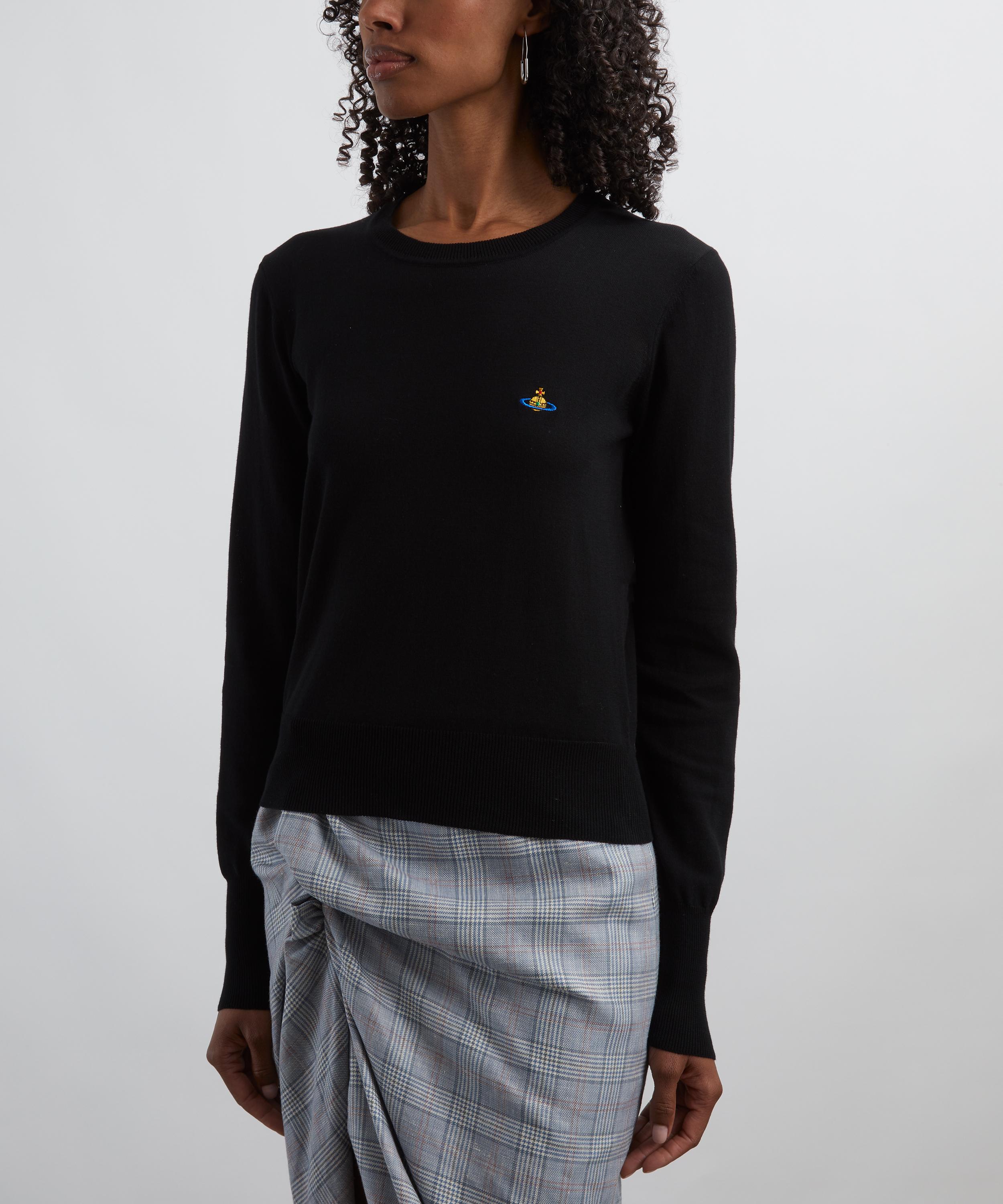 Crafted from a soft and lightweight cotton and cashmere blend, the Bea jumper features a fitted silhouette with a crew neckline, long sleeves and an embroidered orb on the chest, synonymous with Vivienne Westwood’s vision of launching tradition into the future.