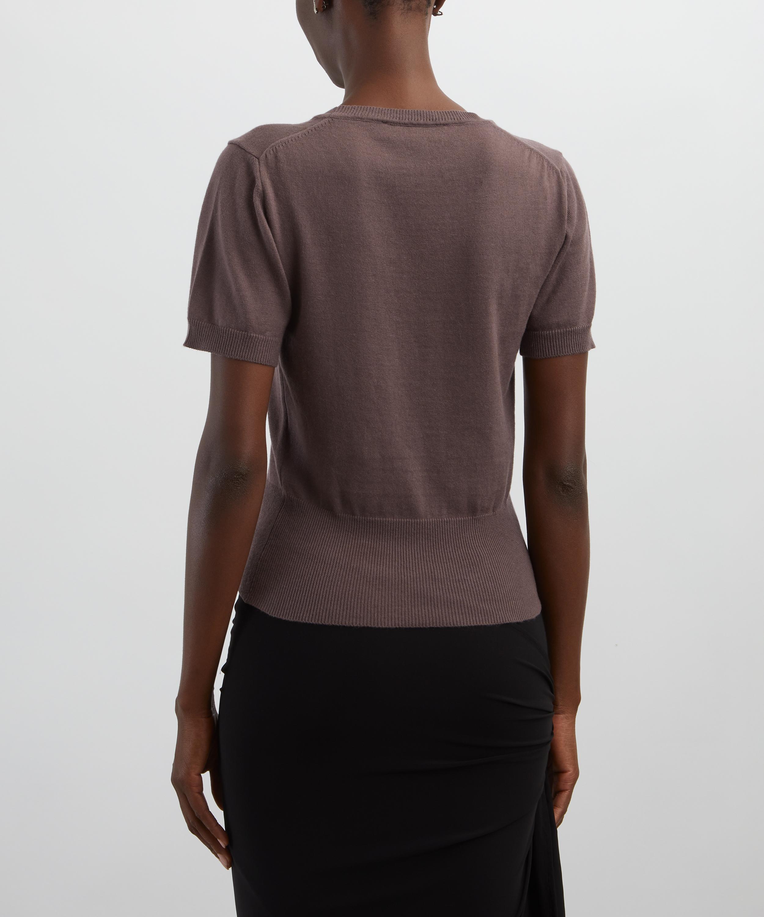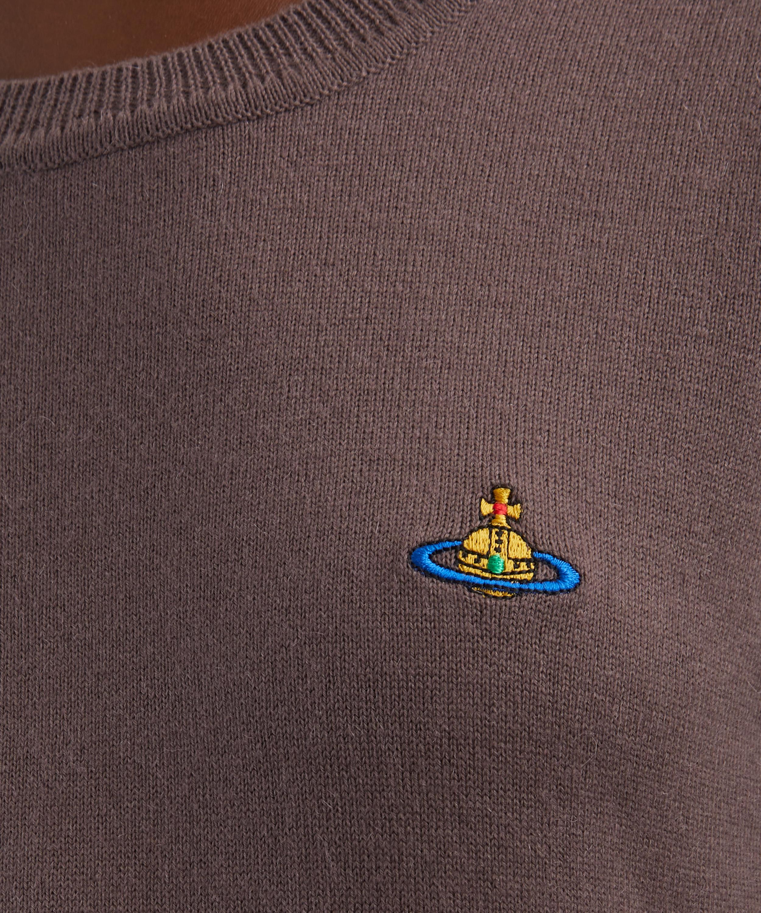 Crafted in Italy from a luxurious cotton-cashmere blend, this short-sleeve top features a round neckline, ribbed trims, and an embroidered multi-coloured orb at the chest for a signature finish.