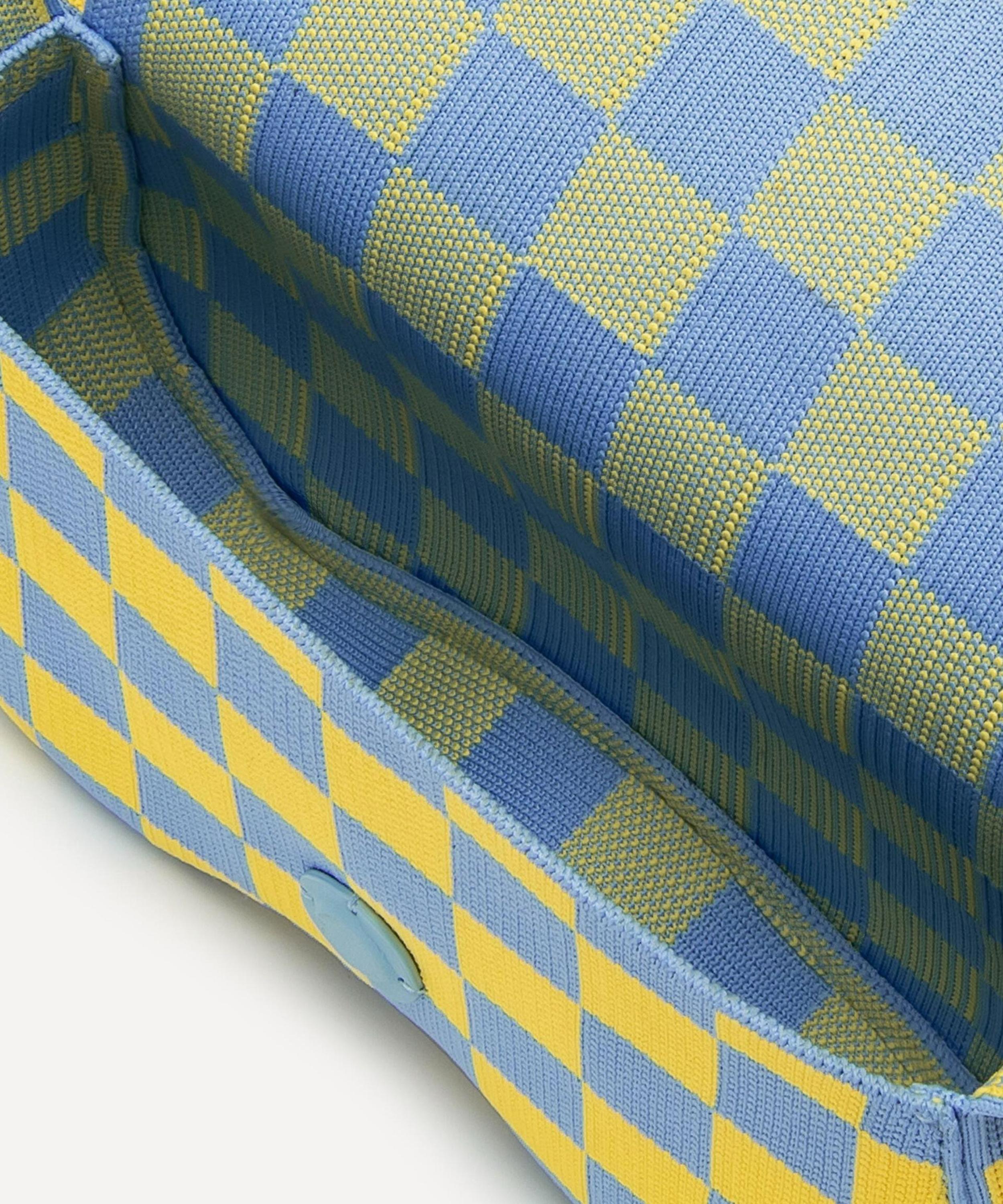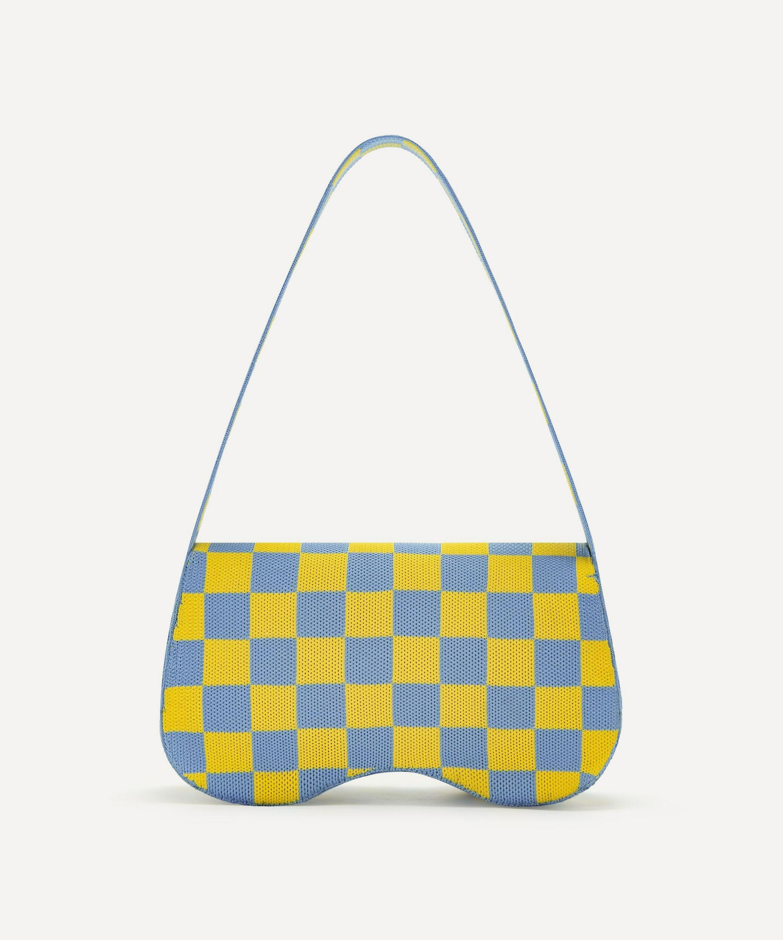 A statement silhouette reminiscent of ‘90s saddle bags, this recycled style showcases a bold knitted check pattern and a contrast logo tab to the front. Complete with a roomy main compartment and a tonal shoulder strap, it’s a stylish companion for both day and night.