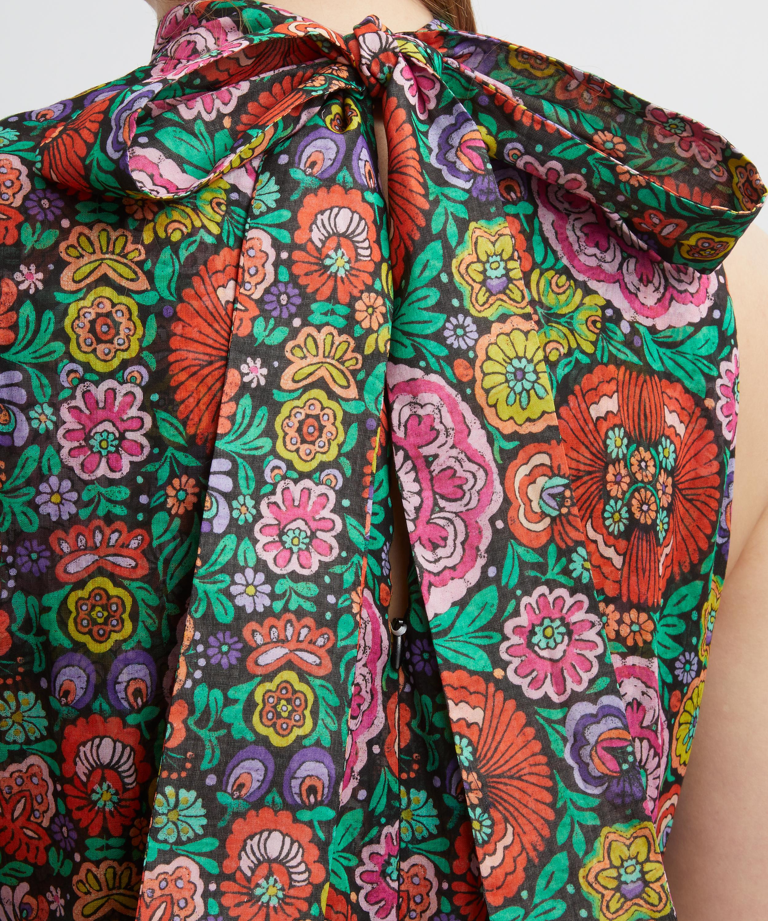 Crafted from cotton chiffon, this sleeveless maxi dress features an elegant tie-neck fastening and a waisted fit that flows into a floaty, gathered skirt, creating a truly graceful silhouette.