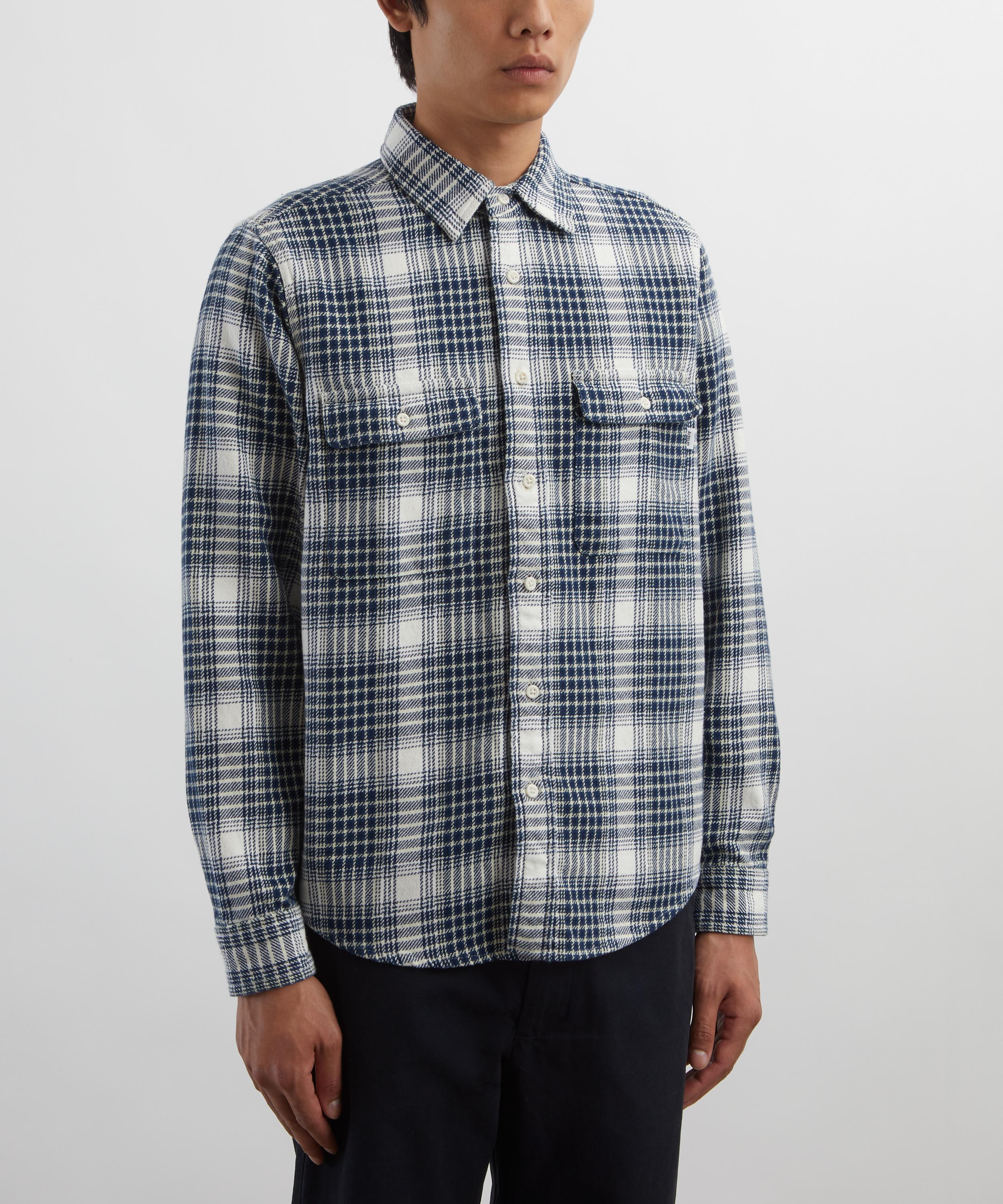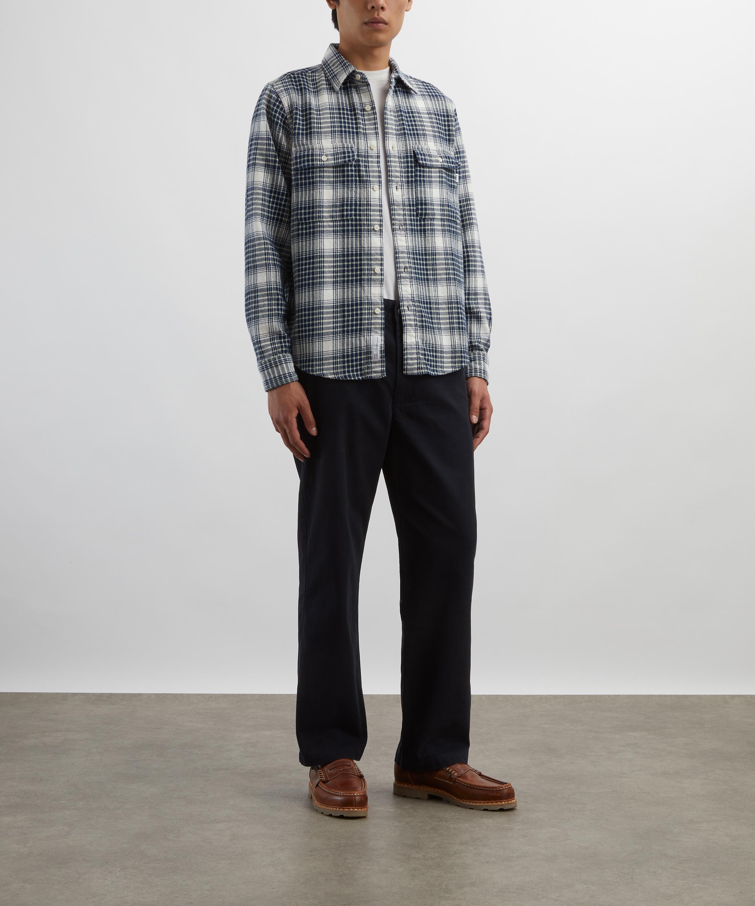 Adsum’s classic two-flap pocket workshirt in custom seasonal yarn-dyed plaid, is made from soft 275 GSM double-brushed flannel. Secured with high-shine buttons, the seamless plaid alignment across pockets, flaps, and placket enhances the shirt’s refined, premium finish.
