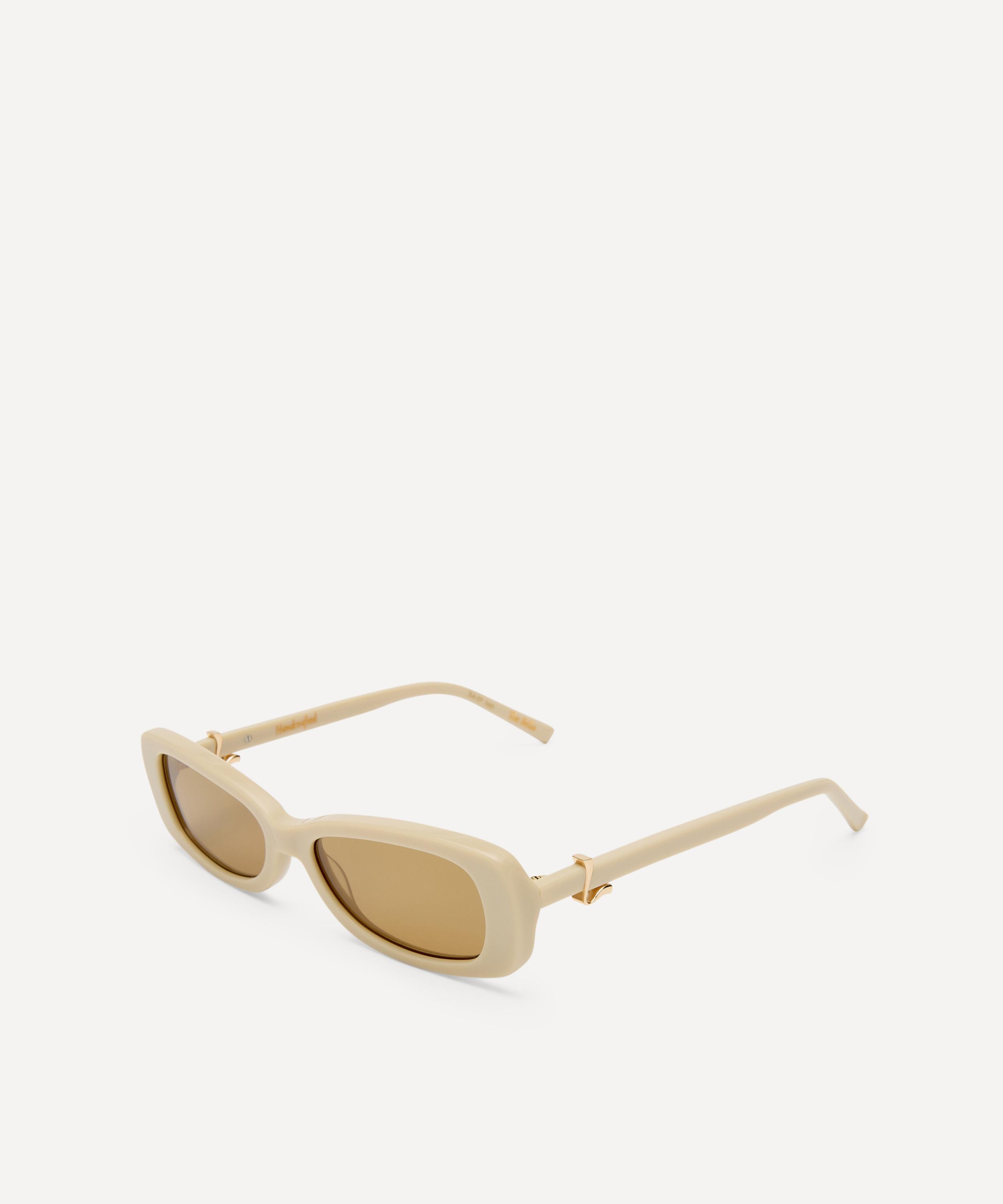 Boasting a petite rectangular silhouette with slim sides, this beige-toned pair is effortlessly wearable and chic. They’re finished with the brand’s wrapped L hardware at the temples - a sculptural organic detail that elegantly completes the style with a signature element. Complemented by khaki brown mono lenses, they’re bound to enhance your outfit with a touch of quiet luxury.