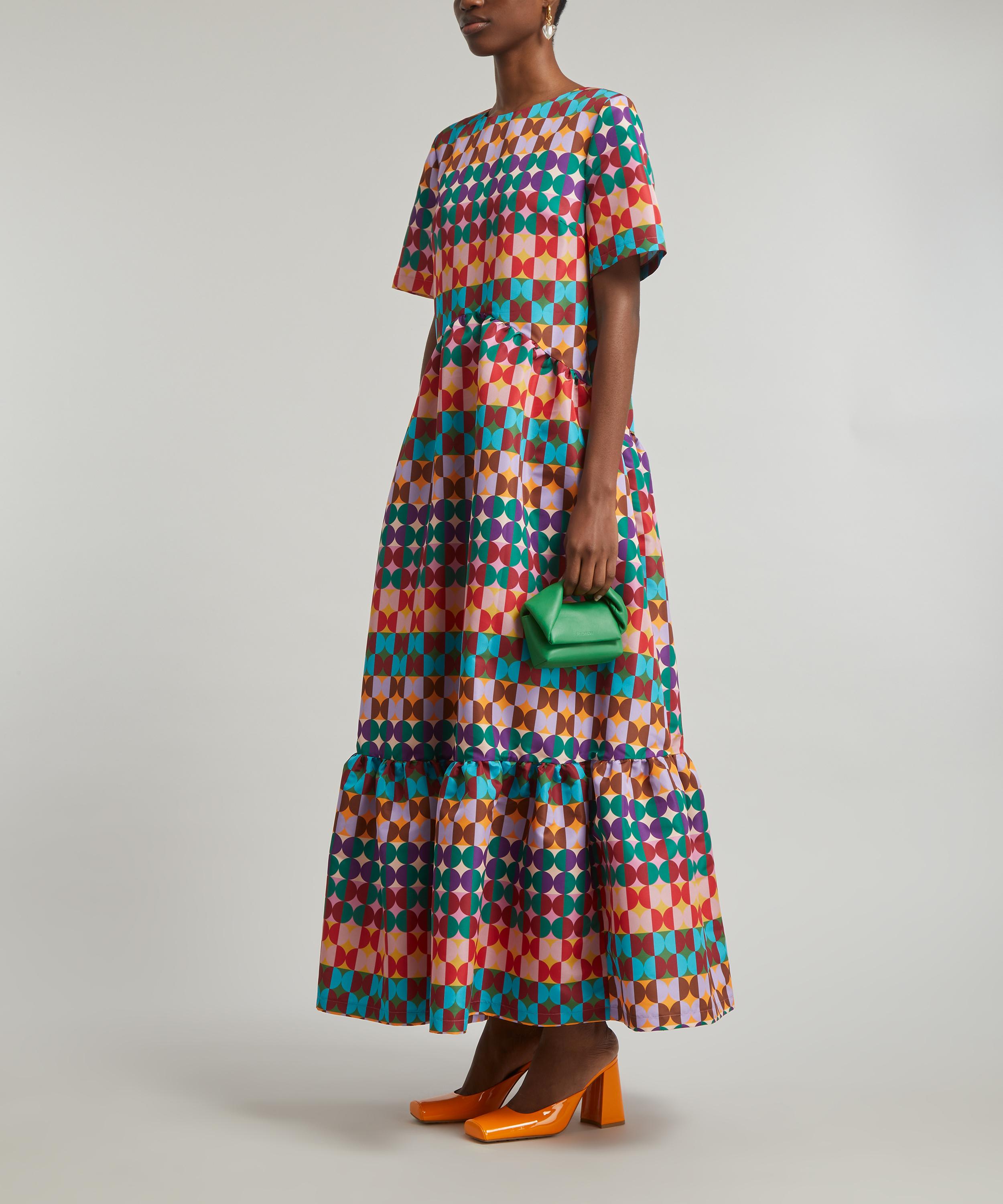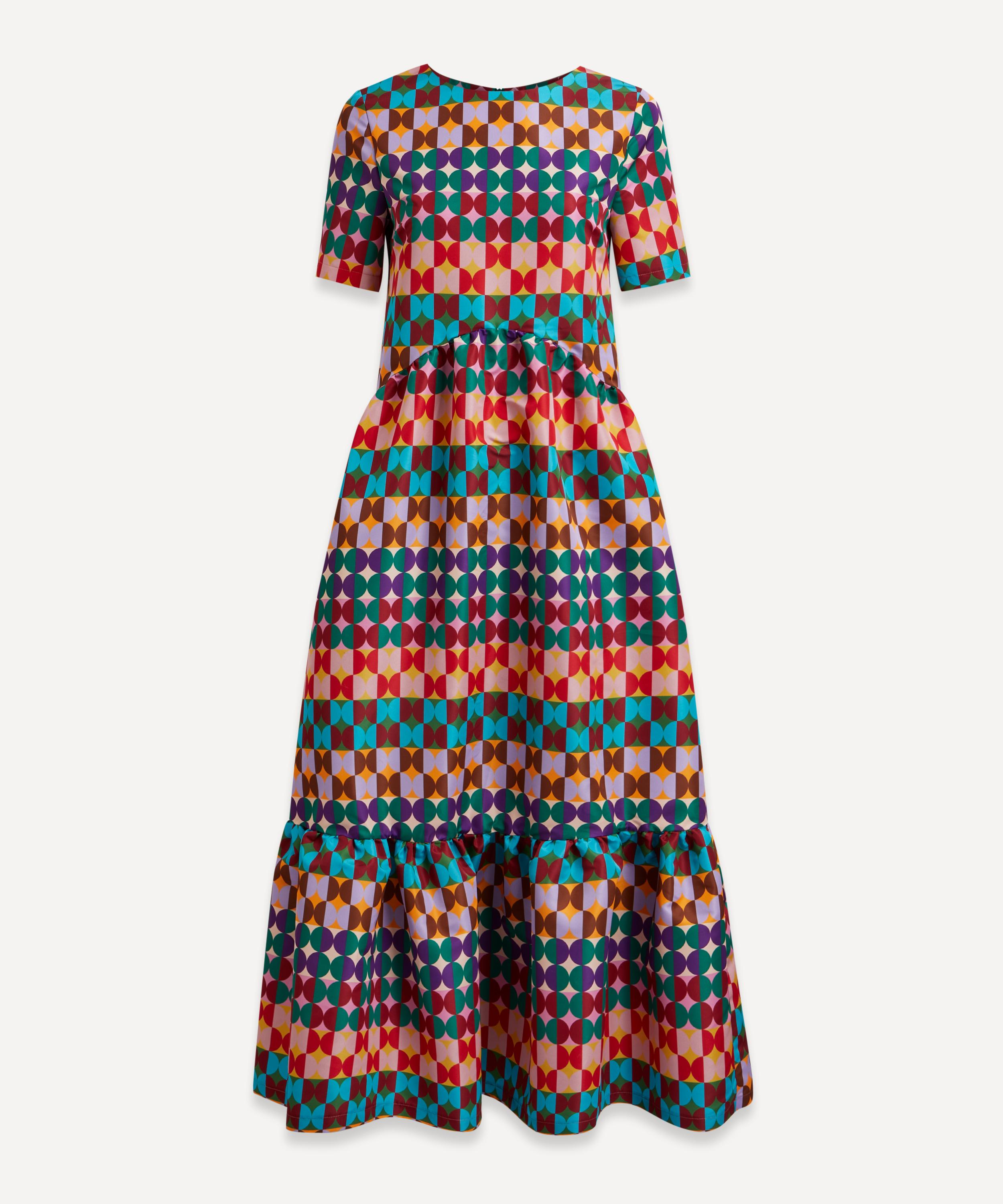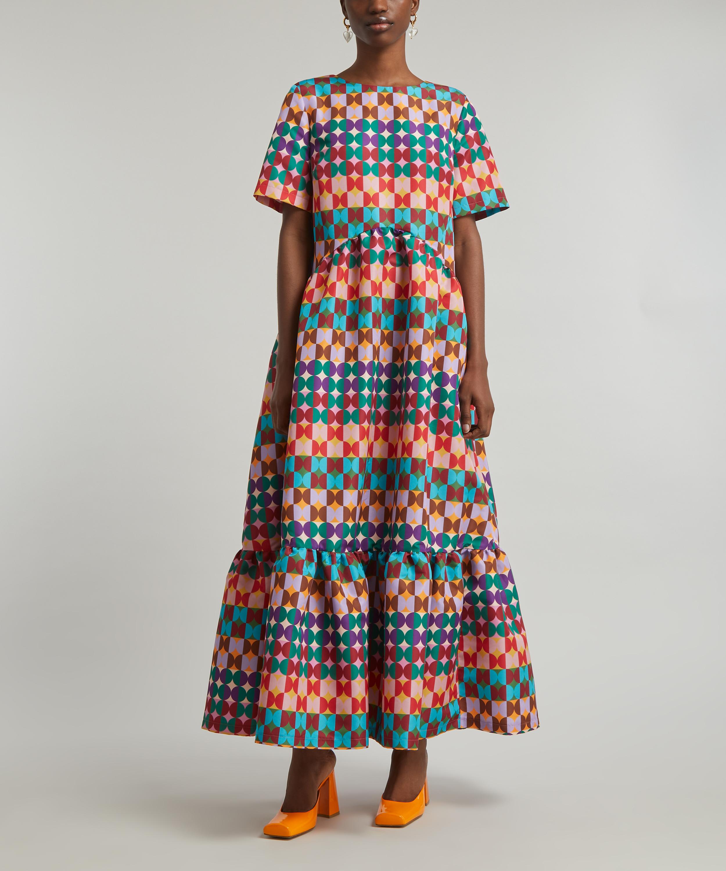 La DoubleJ's penchant for an over-blown aesthetic shines from this tiered maxi-dress, in the brand’s Mezzaluna Rainbow print. Long and loose, the Belle dress is cut from Italian faille to a relaxed fit with a crew-neckline, short-sleeves and side-pockets for a modern finish.