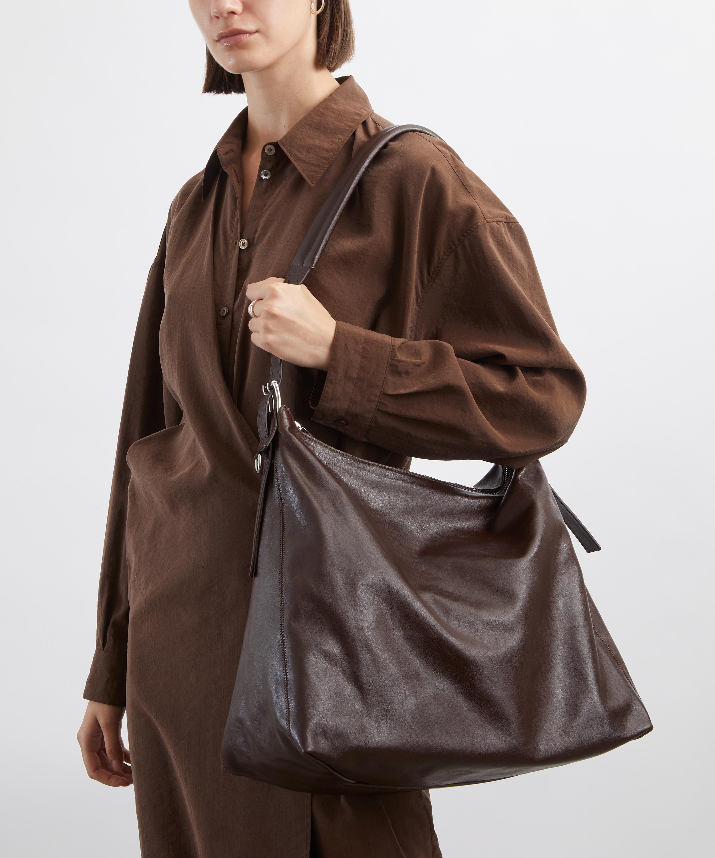 Lemaire’s minimalist design aesthetic is evident in this belted hobo bag, offering a fresh take on a classic utilitarian silhouette.