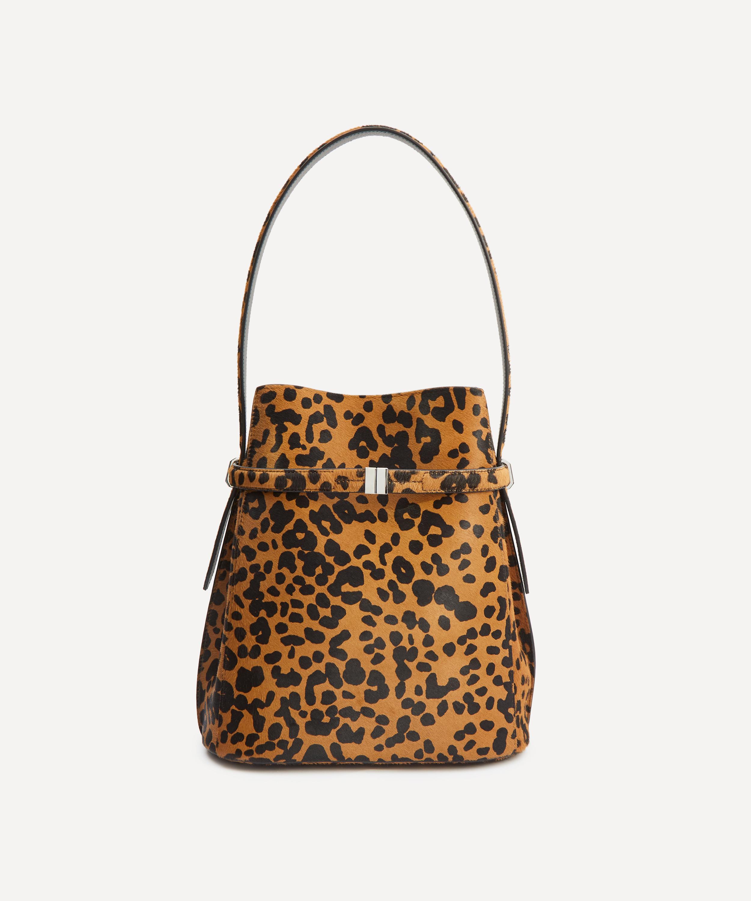 It’s crafted in Italy from pony hair and defined by a standout leopard-print pattern – capturing the brand’s artful blend of exacting craftsmanship and minimalist design. It’s fitted with a belted front and an internal lobster clasp, opening to reveal a spacious interior with a pair of practical compartments. Channel TOTEME’s modern aesthetic by styling it across the body, over the shoulder or carrying by hand.