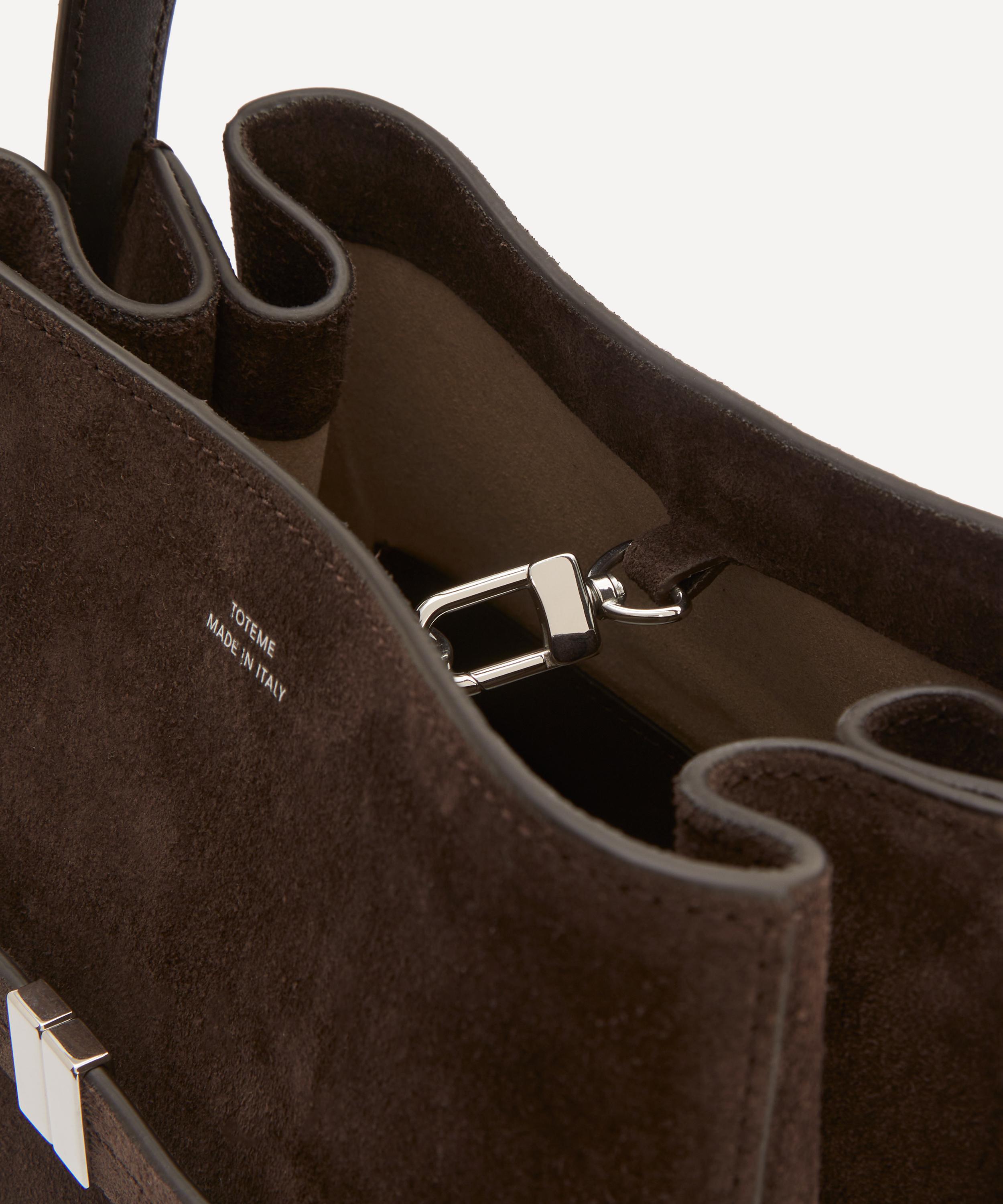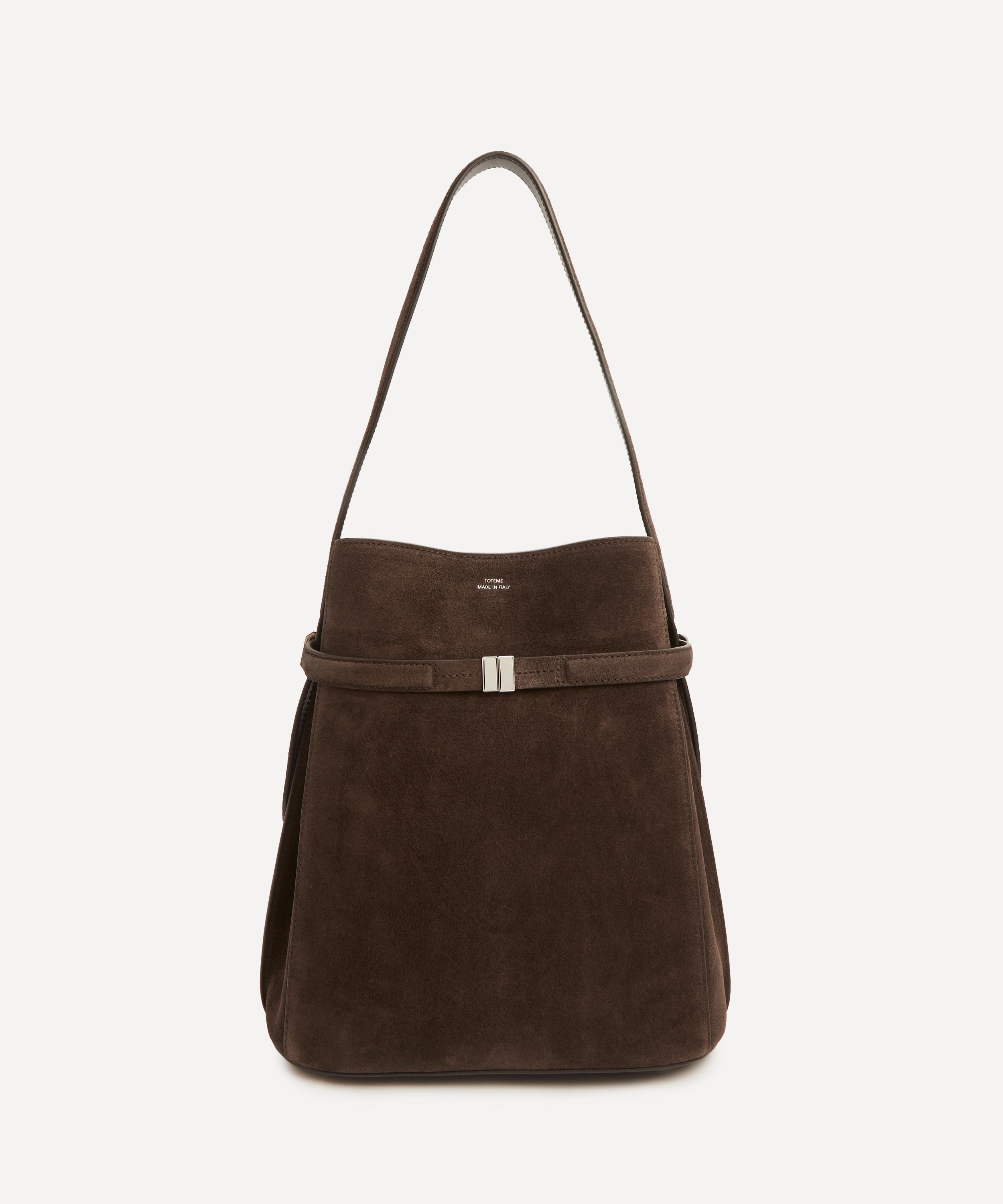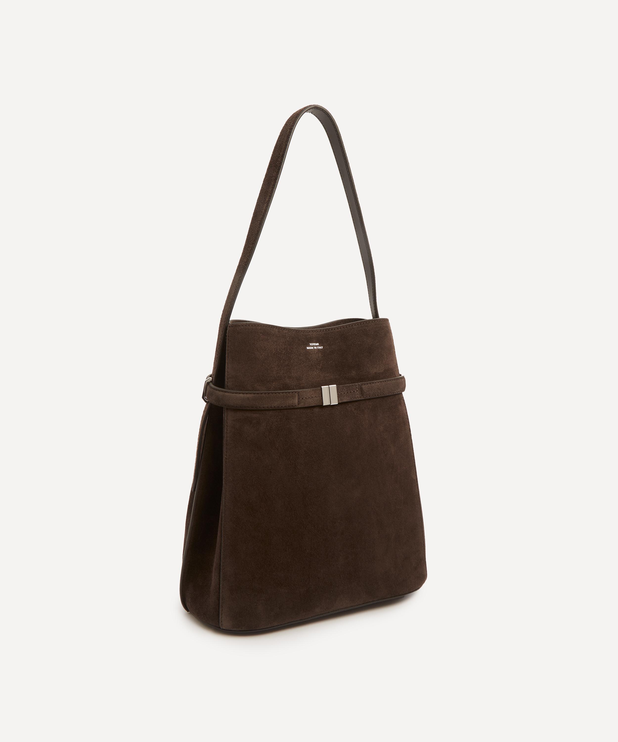 It’s crafted in Italy from buttery suede and fitted with a belted front, an internal lobster clasp and opens to reveal a spacious interior fitted with a pair of practical pockets – capturing the brand’s artful blend of exacting craftsmanship and minimalist design. Channel TOTEME’s modern aesthetic by styling it across the body, over the shoulder or carrying by hand.