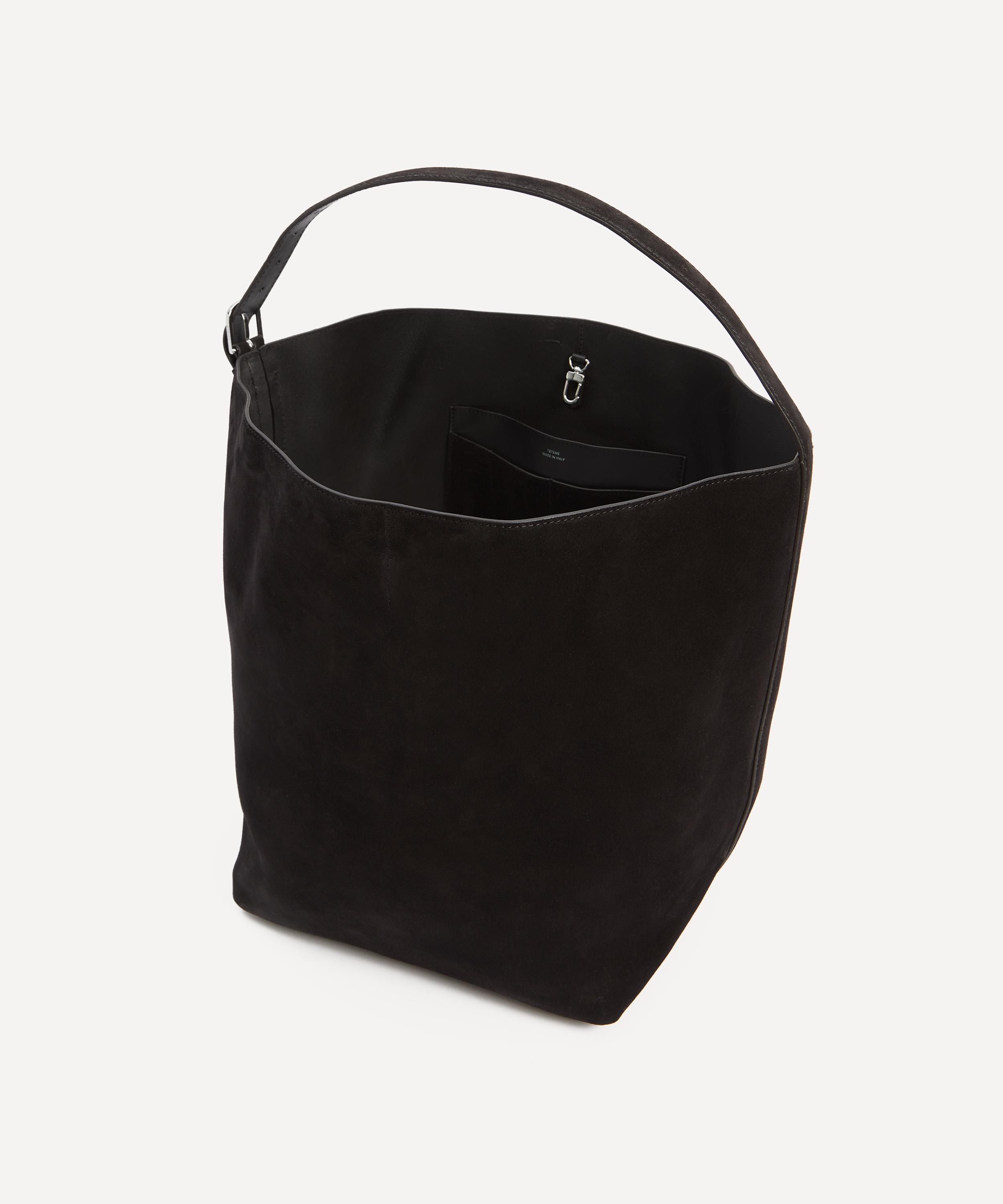 Poised to elevate any ensemble with a touch of understated elegance, the Belt Tote bag from TOTEME, perfectly translates the label’s mission to design timeless wardrobe foundations. Crafted in Italy from a luxuriously soft suede, this slouchy bag features an adjustable belt shoulder strap, two internal slip pockets and a resin-coating on the inside for a polished and practical finish.