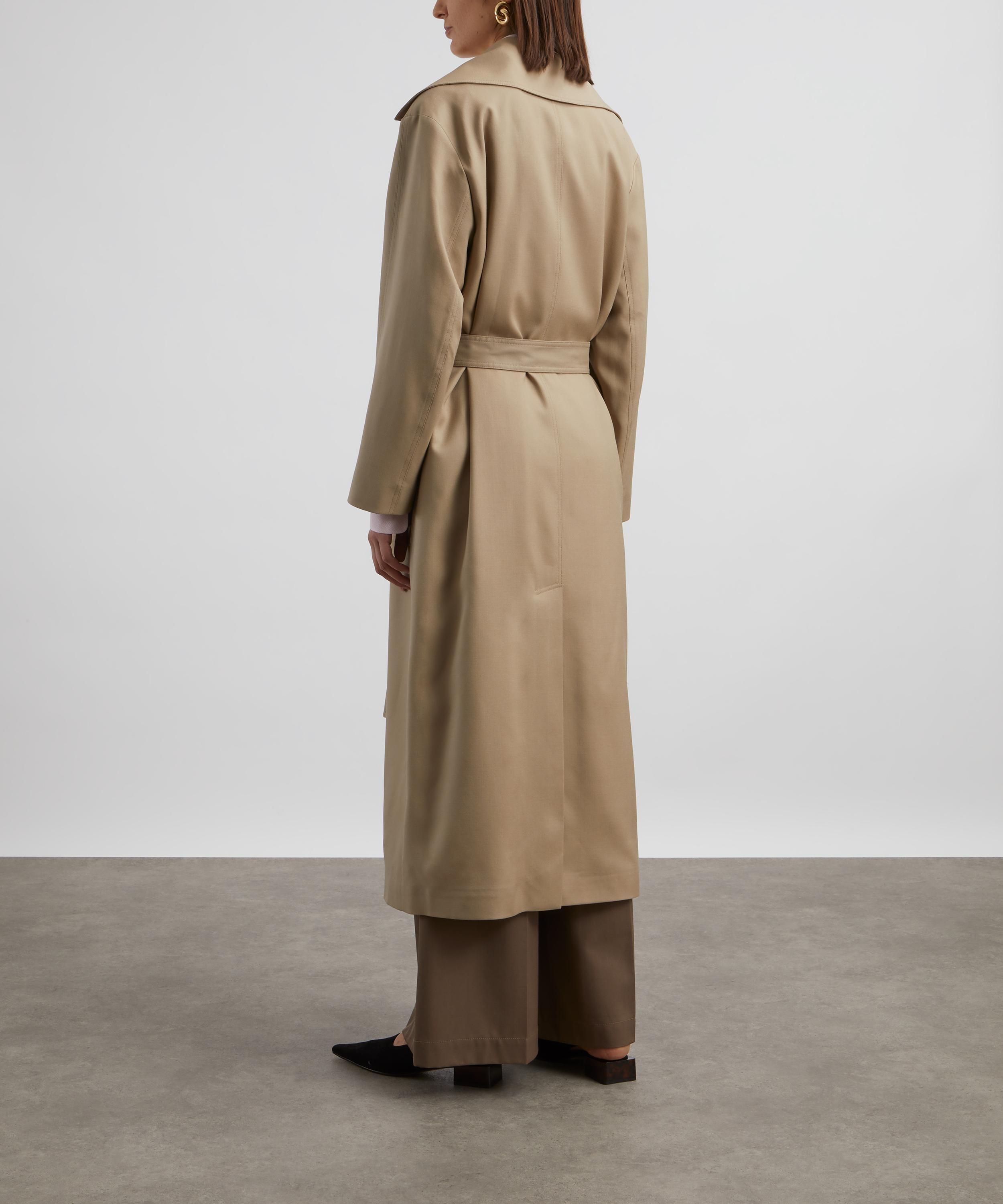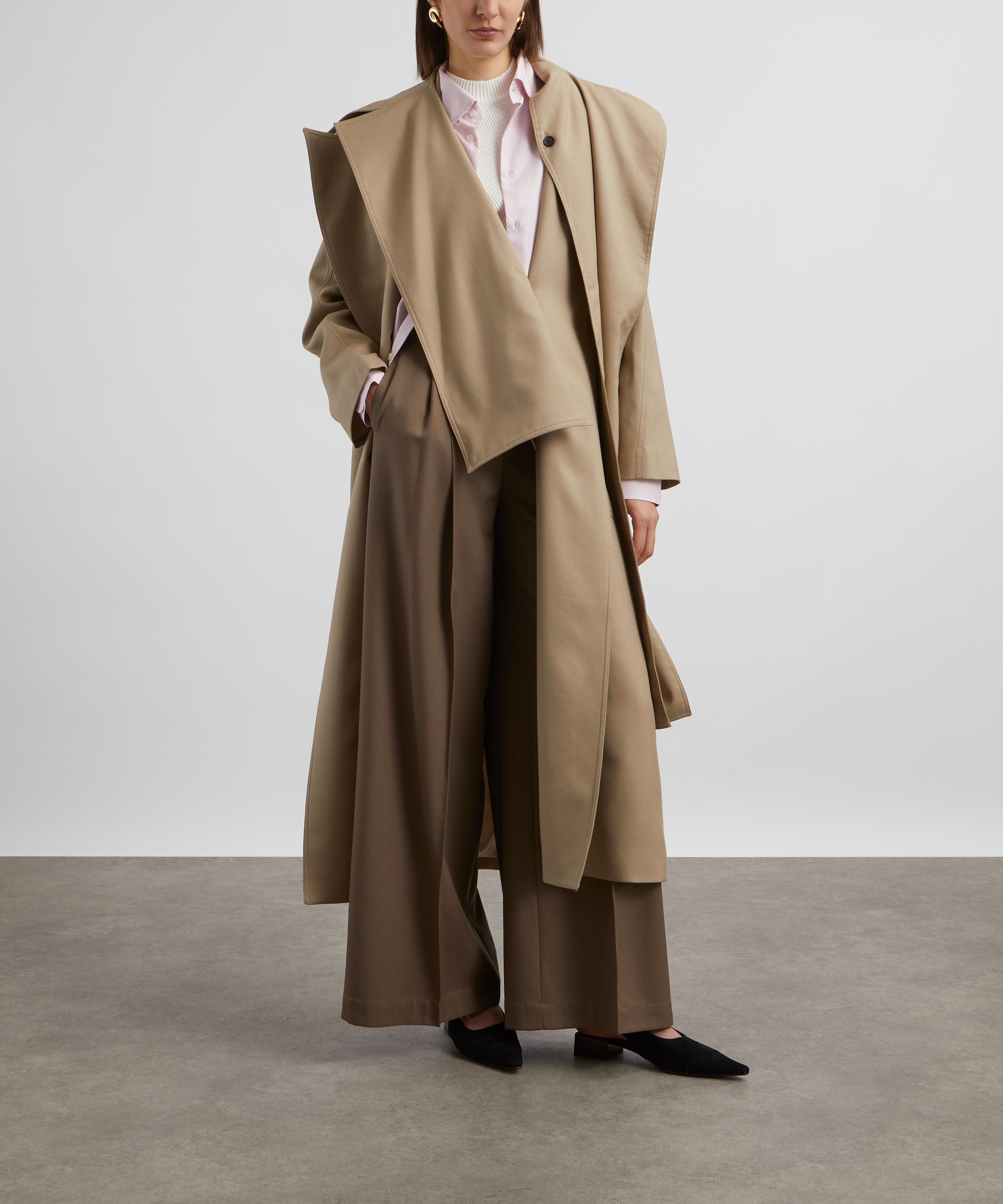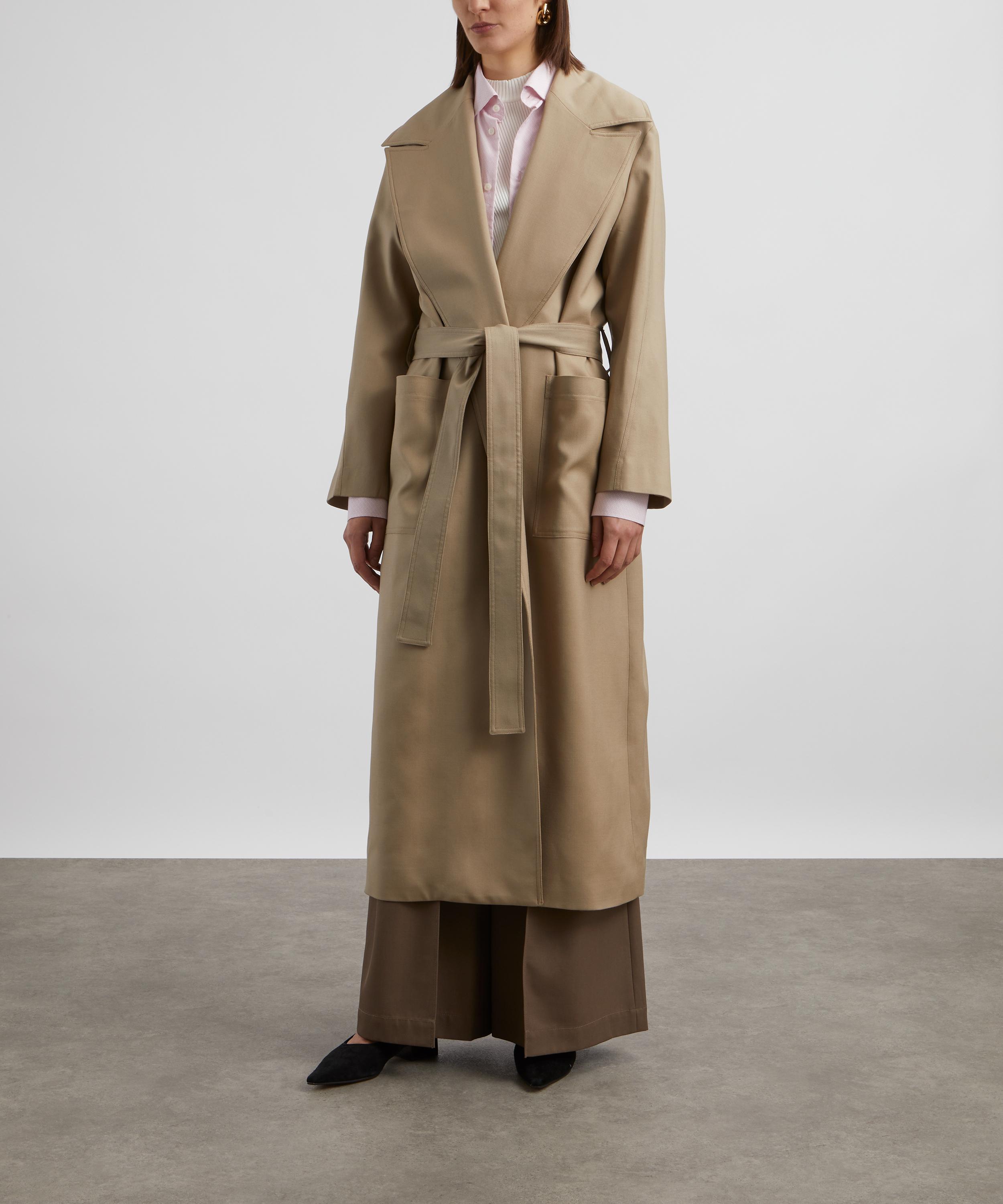Made from heavyweight textured virgin wool, this belted trench has a double collar for a sculptural finish - perfectly presenting the brand’s unique style of rewritten tailoring and elevated minimalism.
