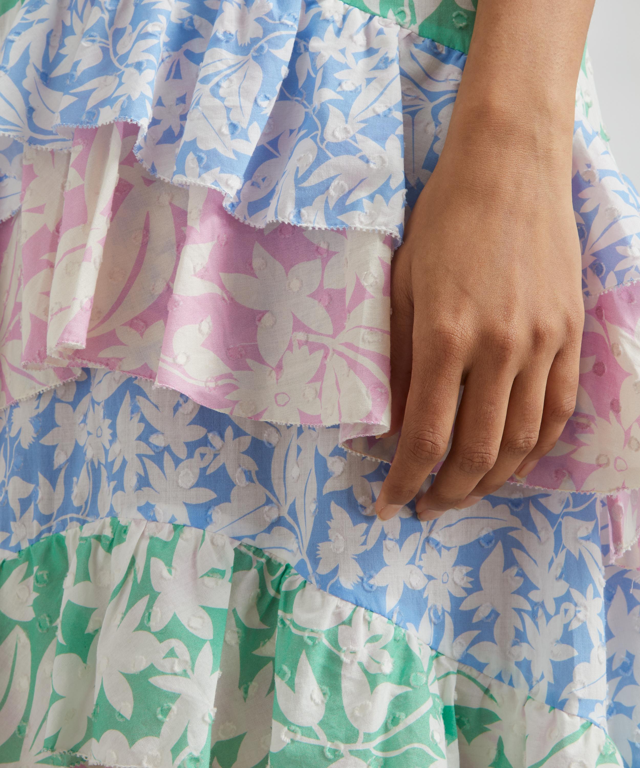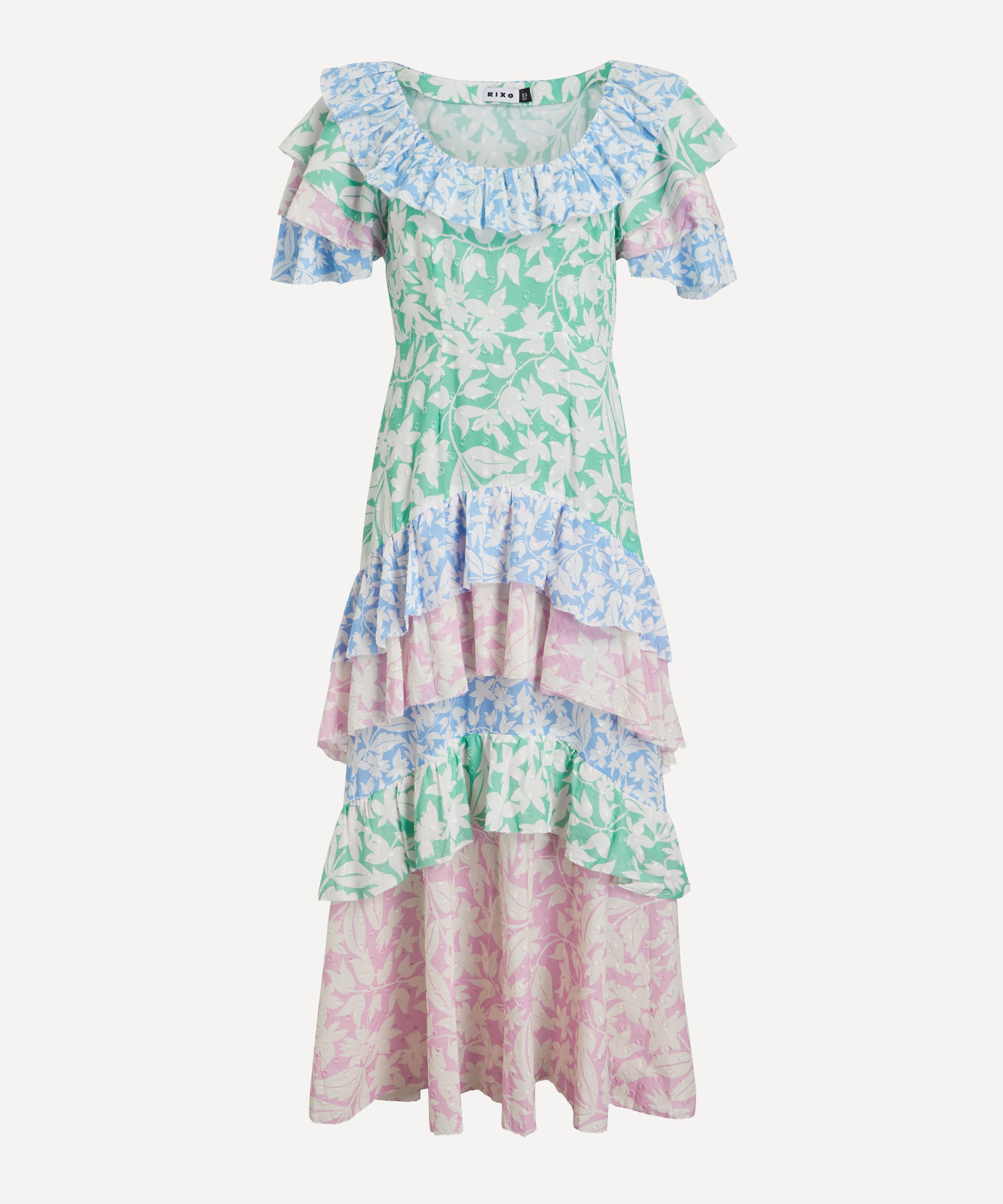 Every piece by RIXO is a bold statement rooted in timeless design principles. Crafted from textured cotton, the Benita dress is a playful addition to your frock collection with its romantic ruffles and voluminous tiered skirt. Featuring a fitted bodice, it has a modest rounded neckline and short-sleeves complete with layers of dainty, multi-coloured frills in this season’s pastel Palm Mix motif. Perfect for parties or drinks in the late evening sun, pair it with soft-yellow mules and a statement clutch for an elegant finish.