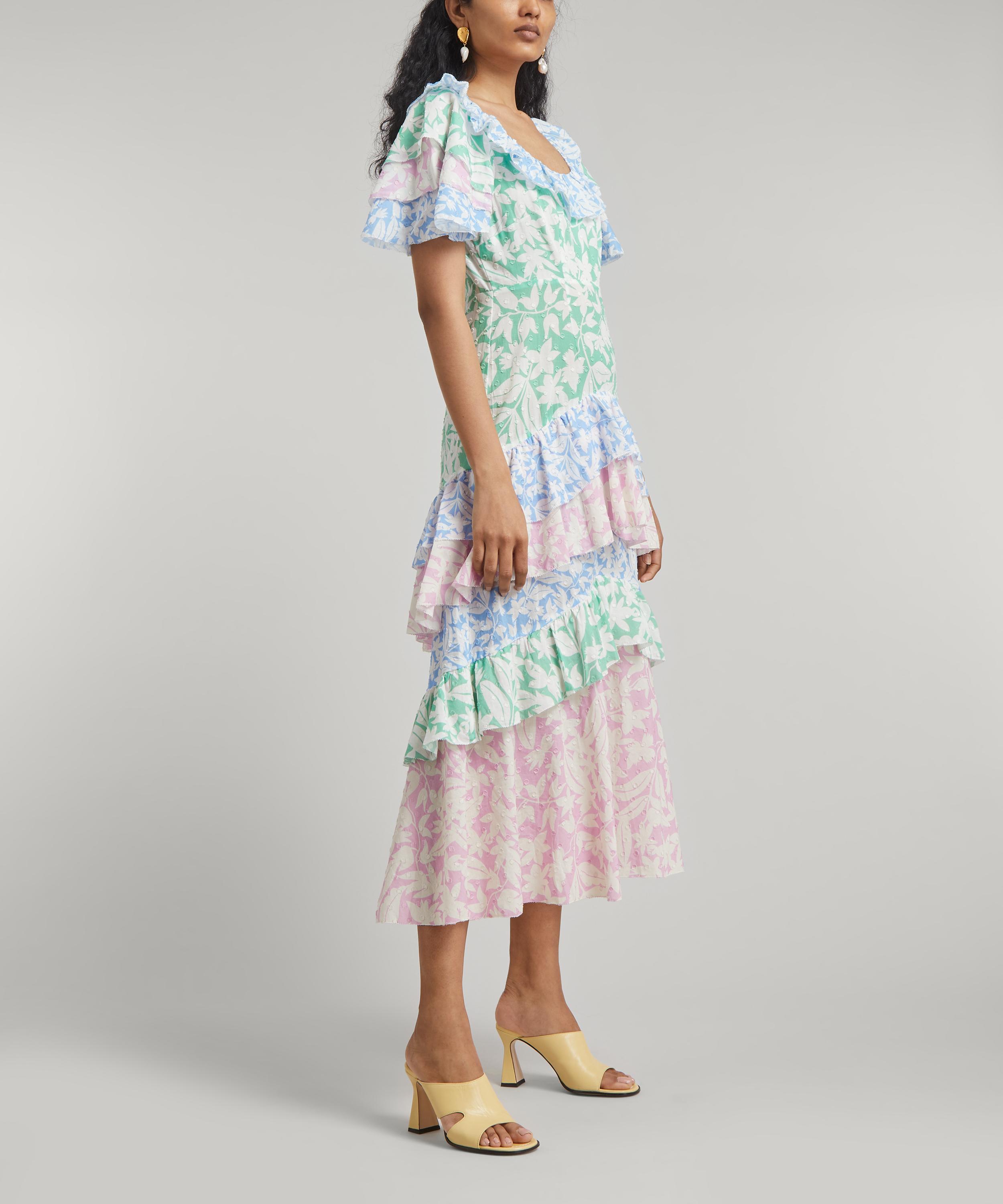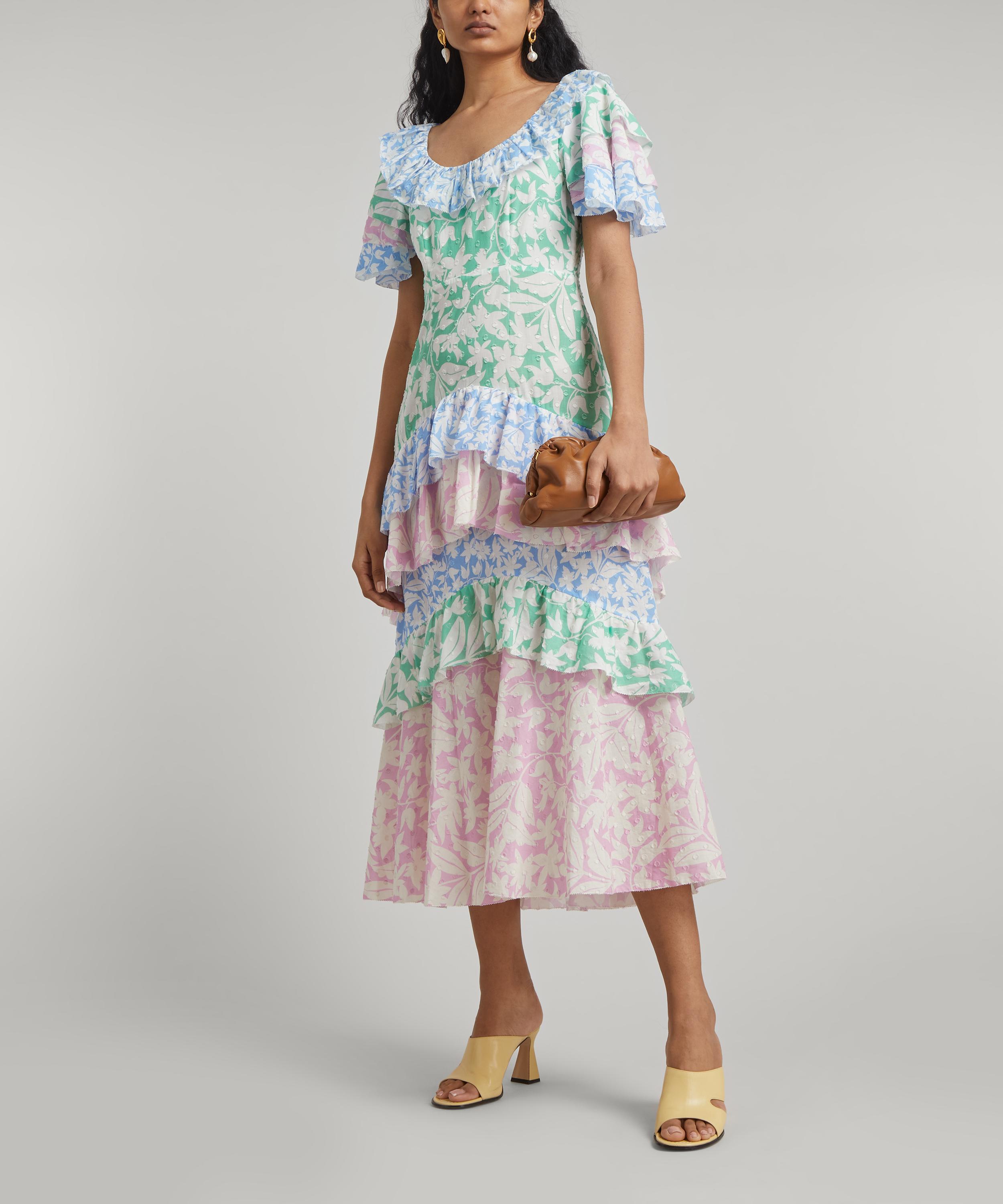 Tailored to a whimsy tiered silhouette that imbues vintage appeal, the Benita dress from Rixo embraces the brand’s contemporary take on classic styles.