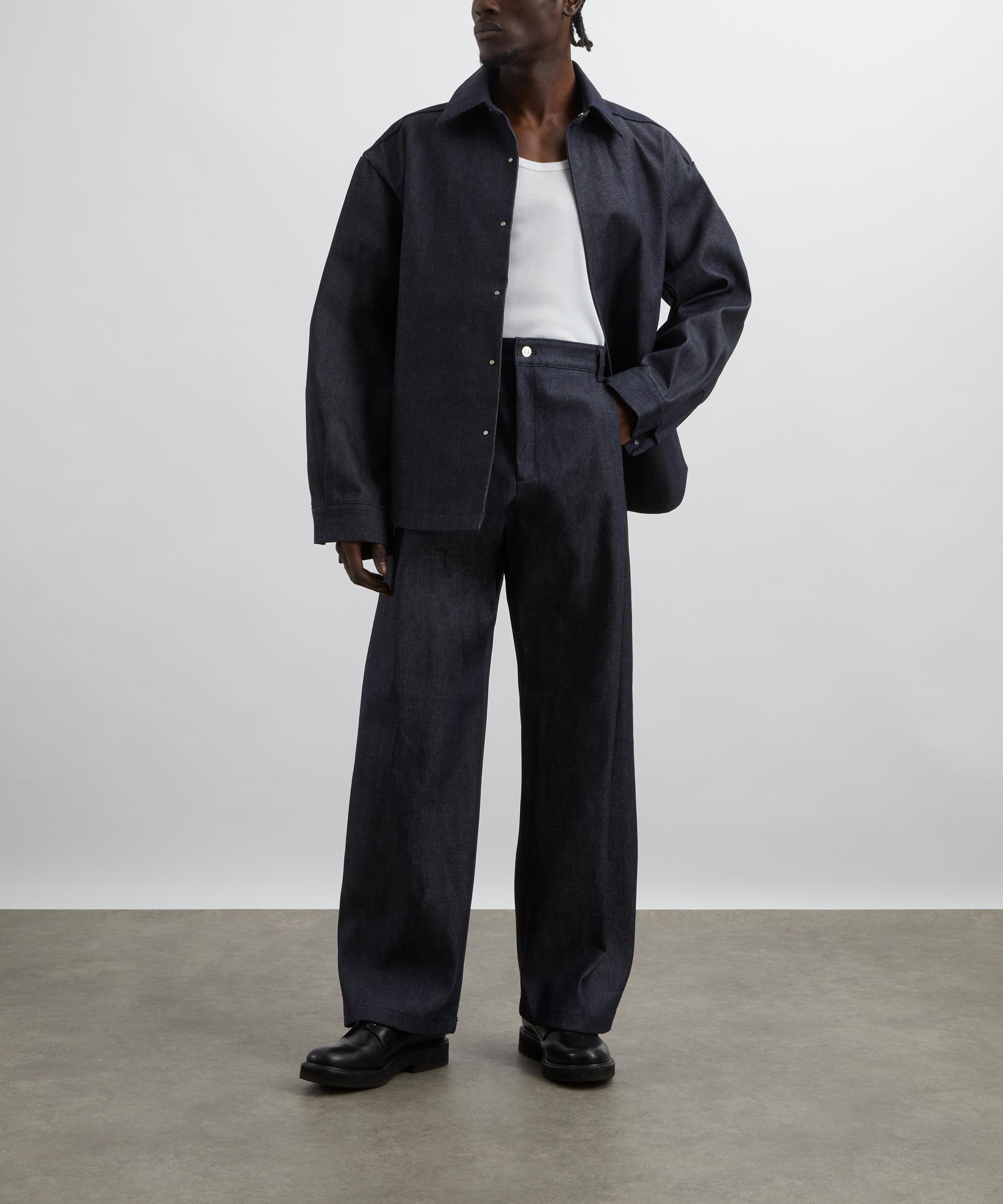 Crafted from dark denim sourced in South Korea, they’re finished with a classic button and zip fly, belt loops, and discreet side pockets. Style with a slightly cropped shirt to show off the considered cut.