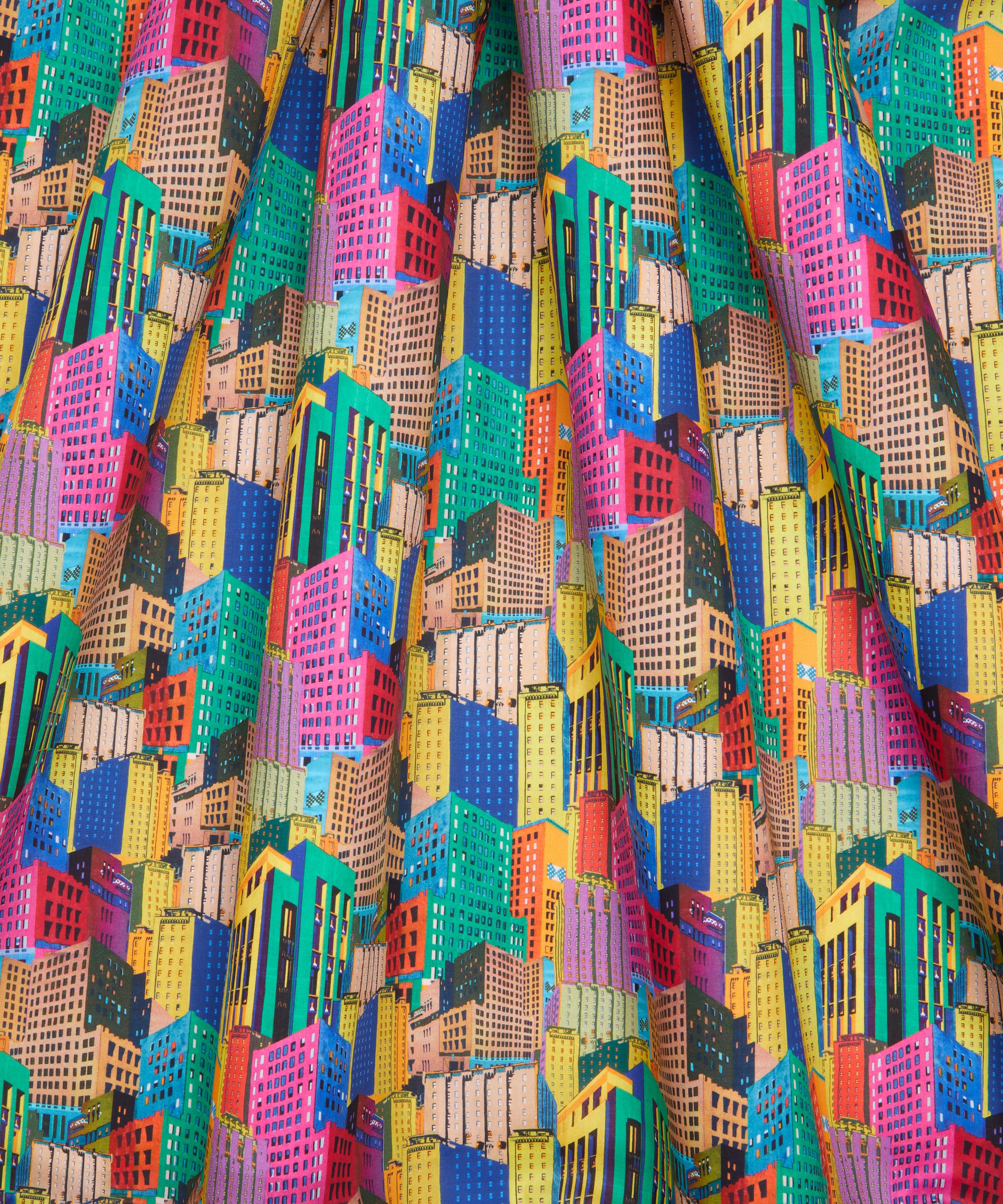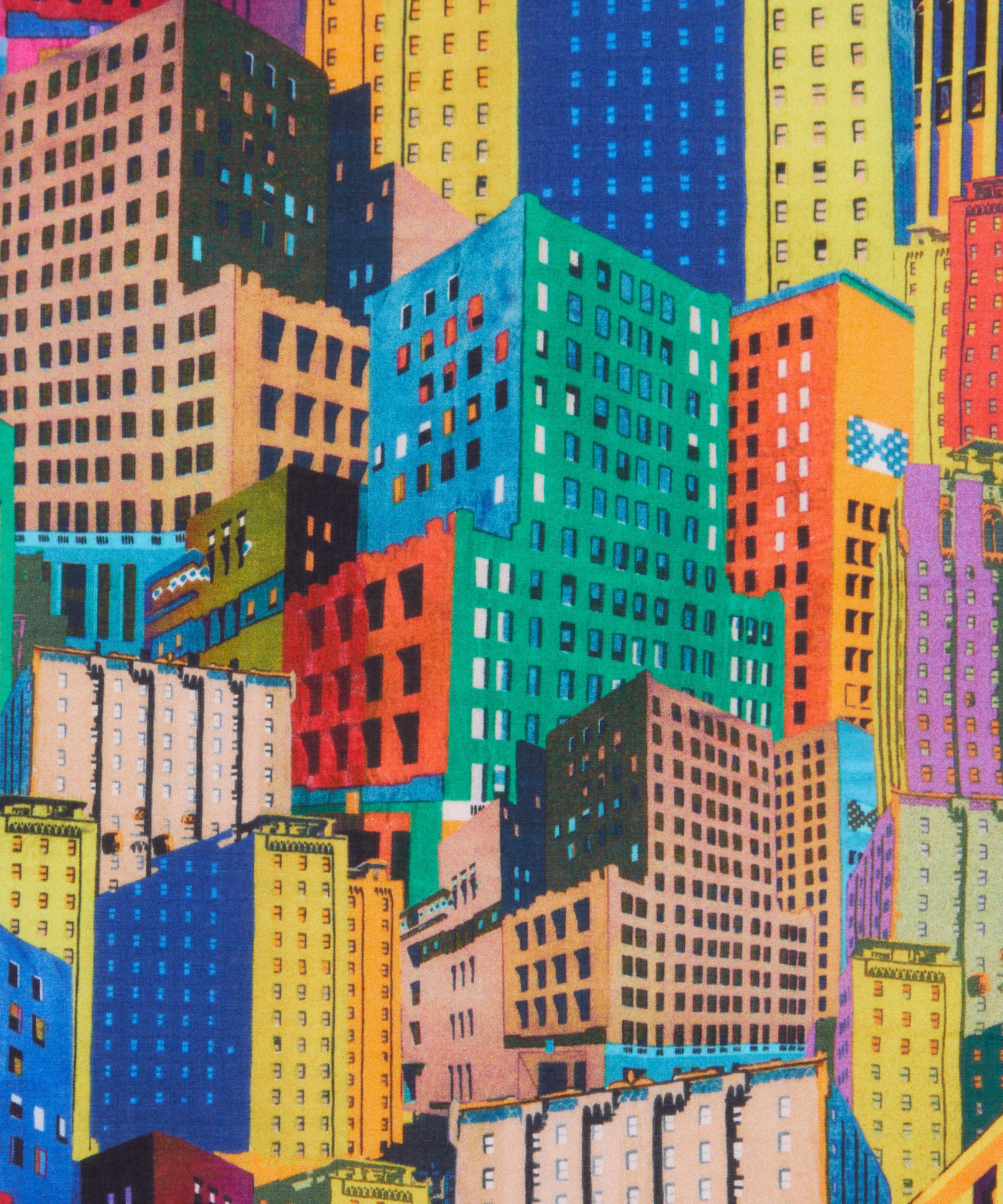 This striking architectural pattern features an imaginary urban landscape, filled with Art Deco style skyscrapers from a series of Liberty scarves designed by Bernard Nevill in 1969. Bernards Building’s is part of The Cast act of Retold, bringing into the spotlight this play’s cast of architects, writers, artists, and designers have paved the way for the artistic movements Liberty have heralded since our doors first opened - leading figures that have played an integral part in weaving new narratives into the fabric of the building.